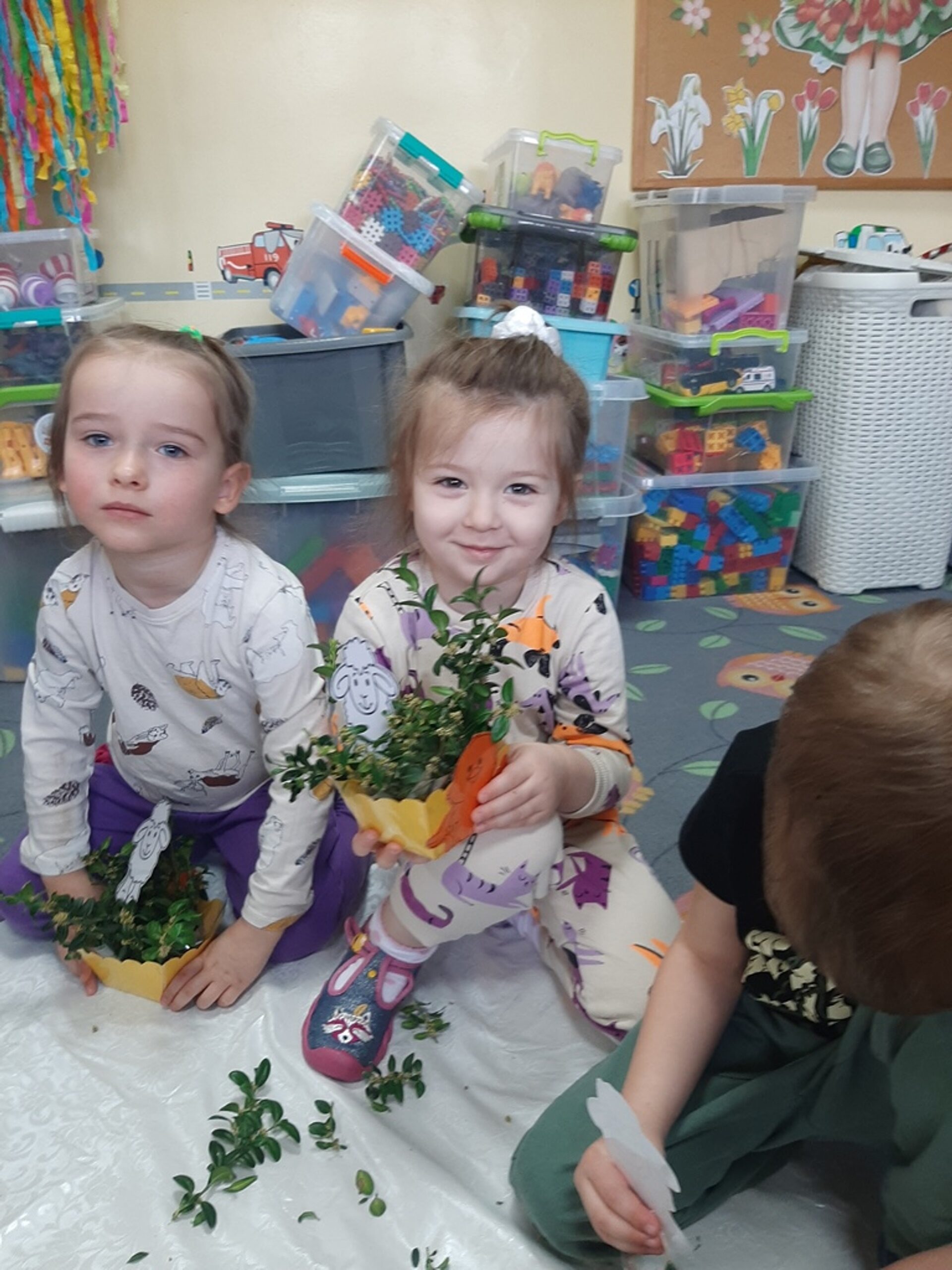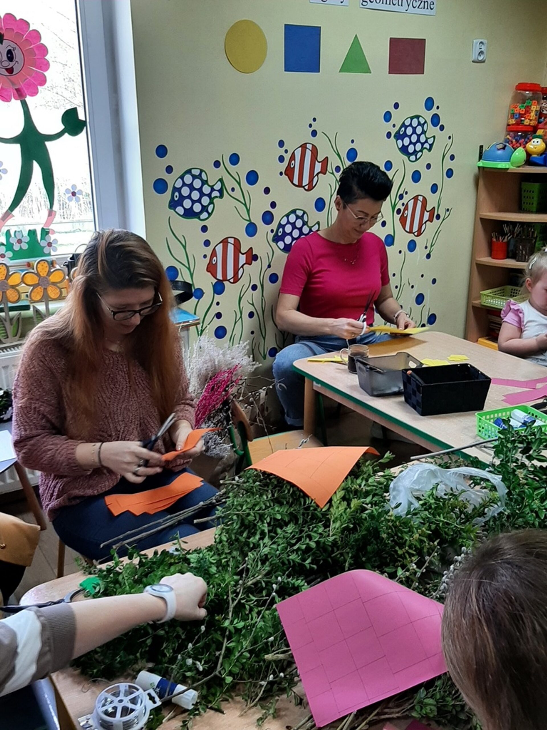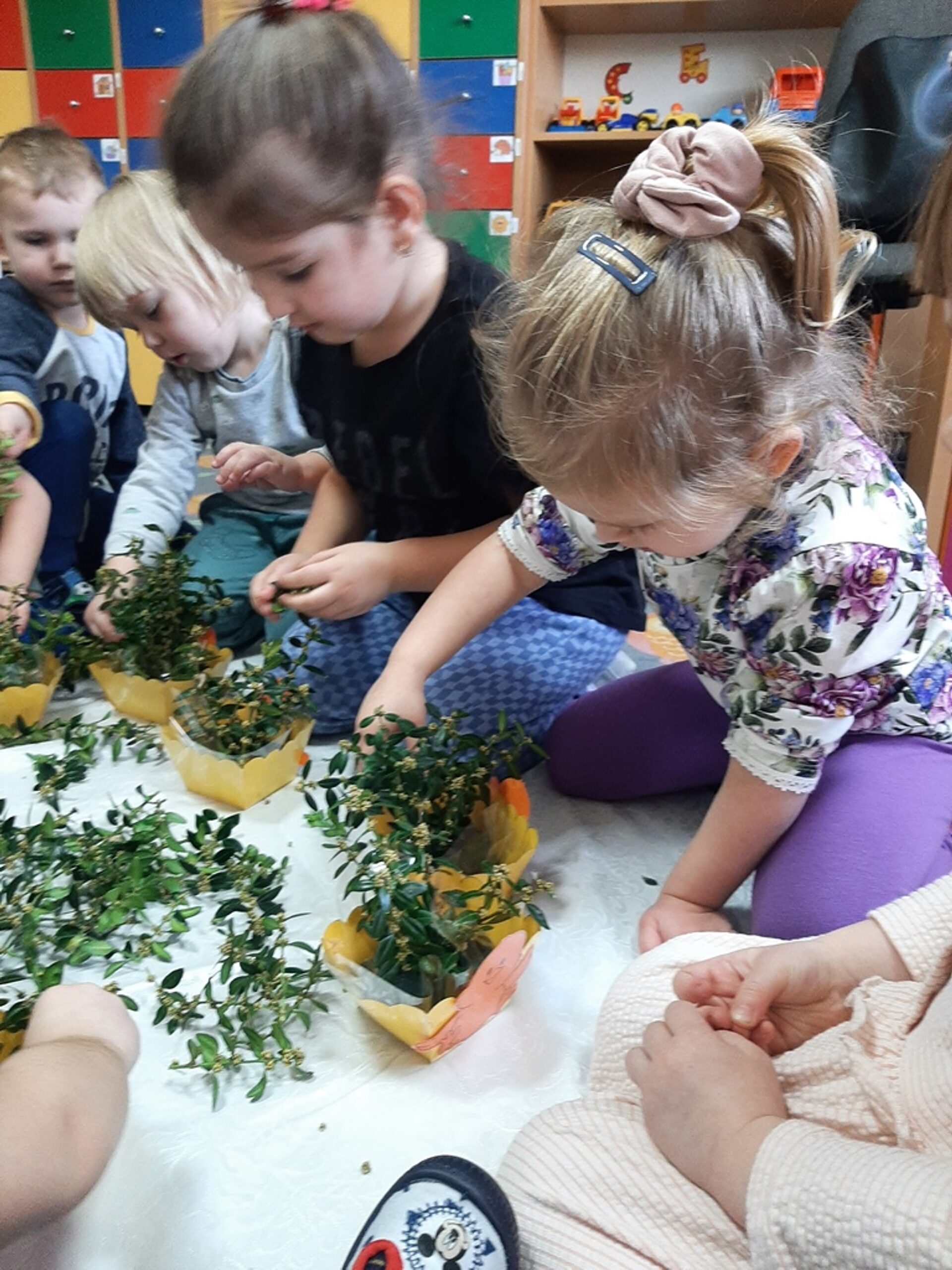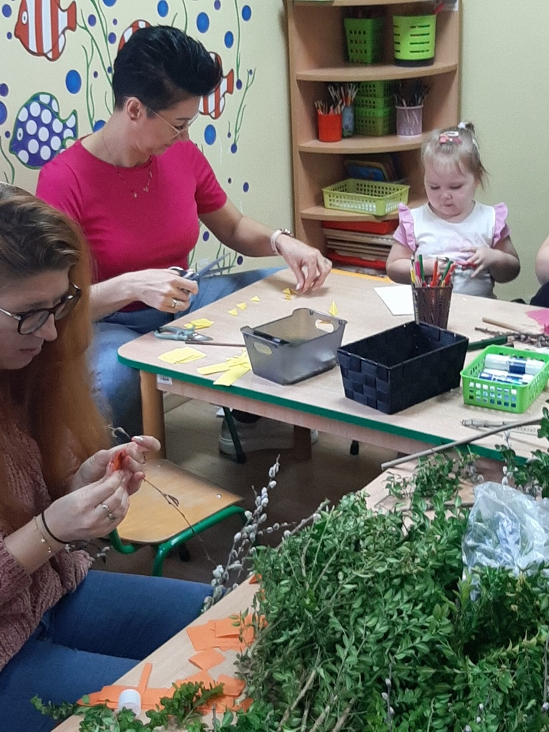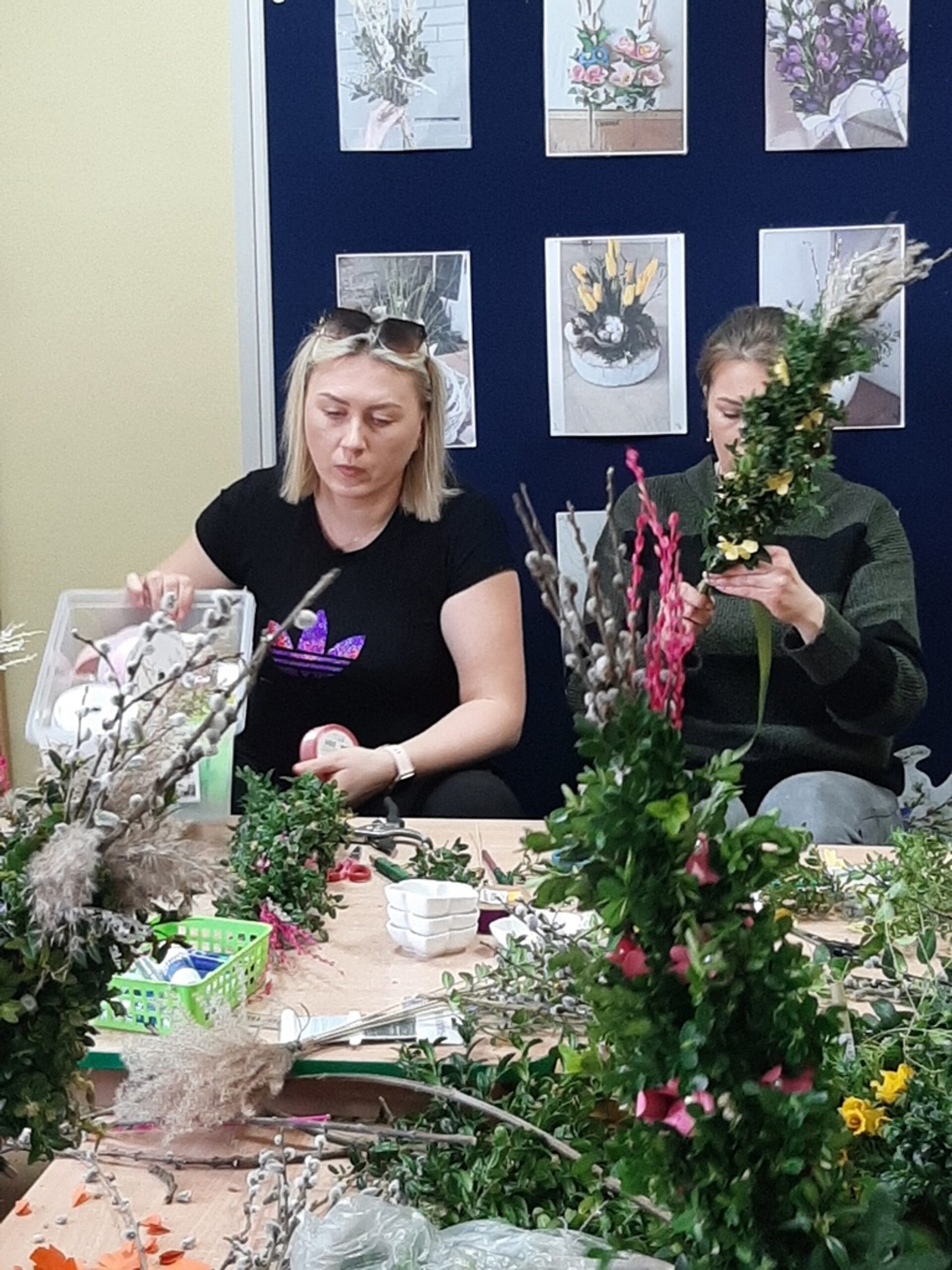 Dnia 20.03.2024r. w naszym przedszkolu – oddziale „Bratki” odbyły się wspaniałe warsztaty florystyczne. Warsztaty prowadziła pani Magdalena Kamińska. Dzieci miały okazję zapoznać się z zawodem florysty oraz sposobami uprawy roślin i kwiatów. Przedszkolaki bardzo chętnie uczestniczyły w zajęciach, wykonując przy tym powierzone im przez Panie zadania. W dalszej części warsztatów dzieci, krok po kroku same wykonały kompozycje wiosenne. Efekty pracy będą mogli podziwiać członkowie rodzin naszych podopiecznych na wielkanocnych stołach. Rodzice natomiast pod czujnym okiem pani Magdy wykonywały palmę wielkanocną z bukszpanu, bazi i kwiatów. Był to mile spędzony czas, podczas którego wszyscy dobrze się bawili.