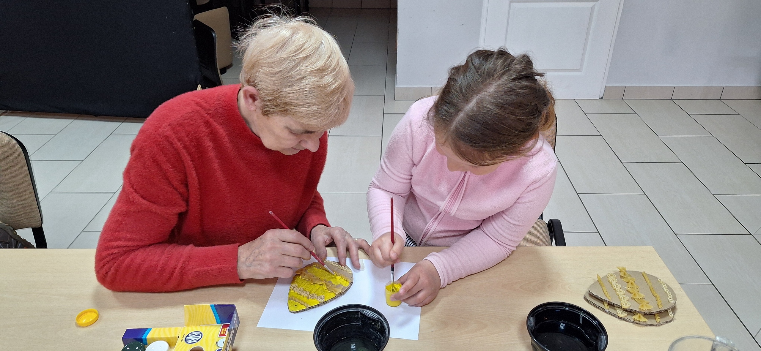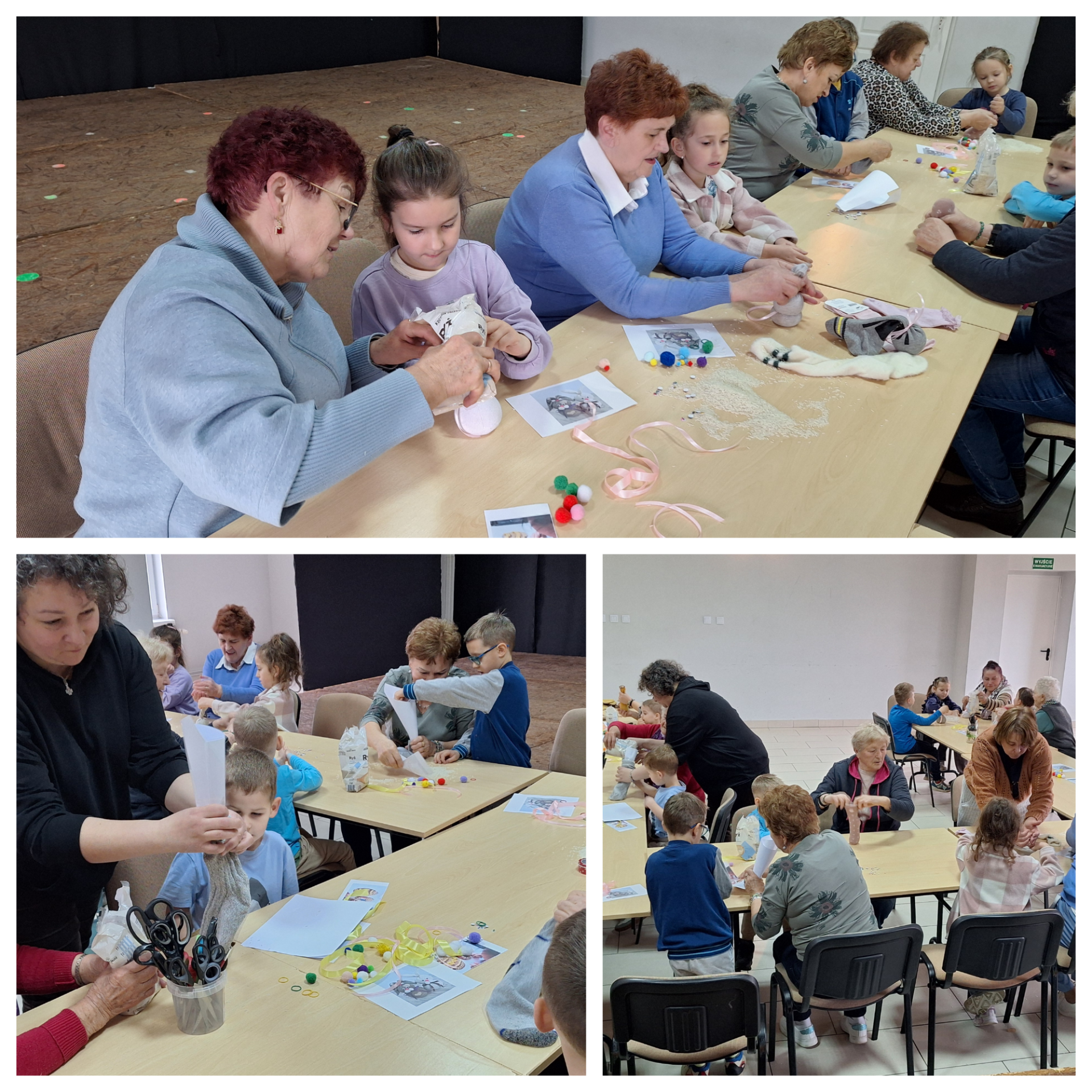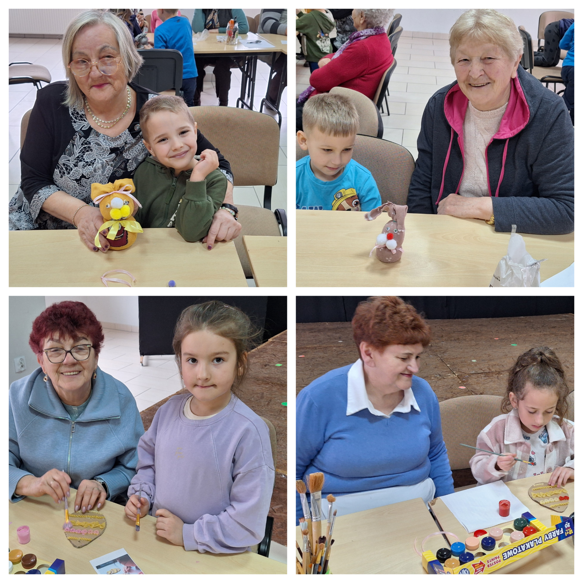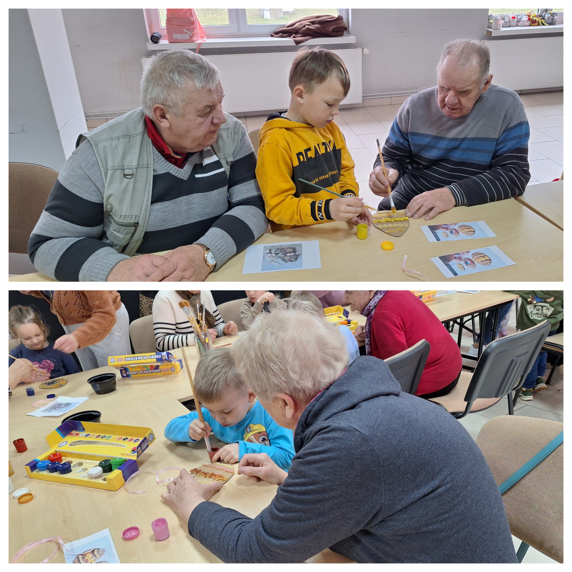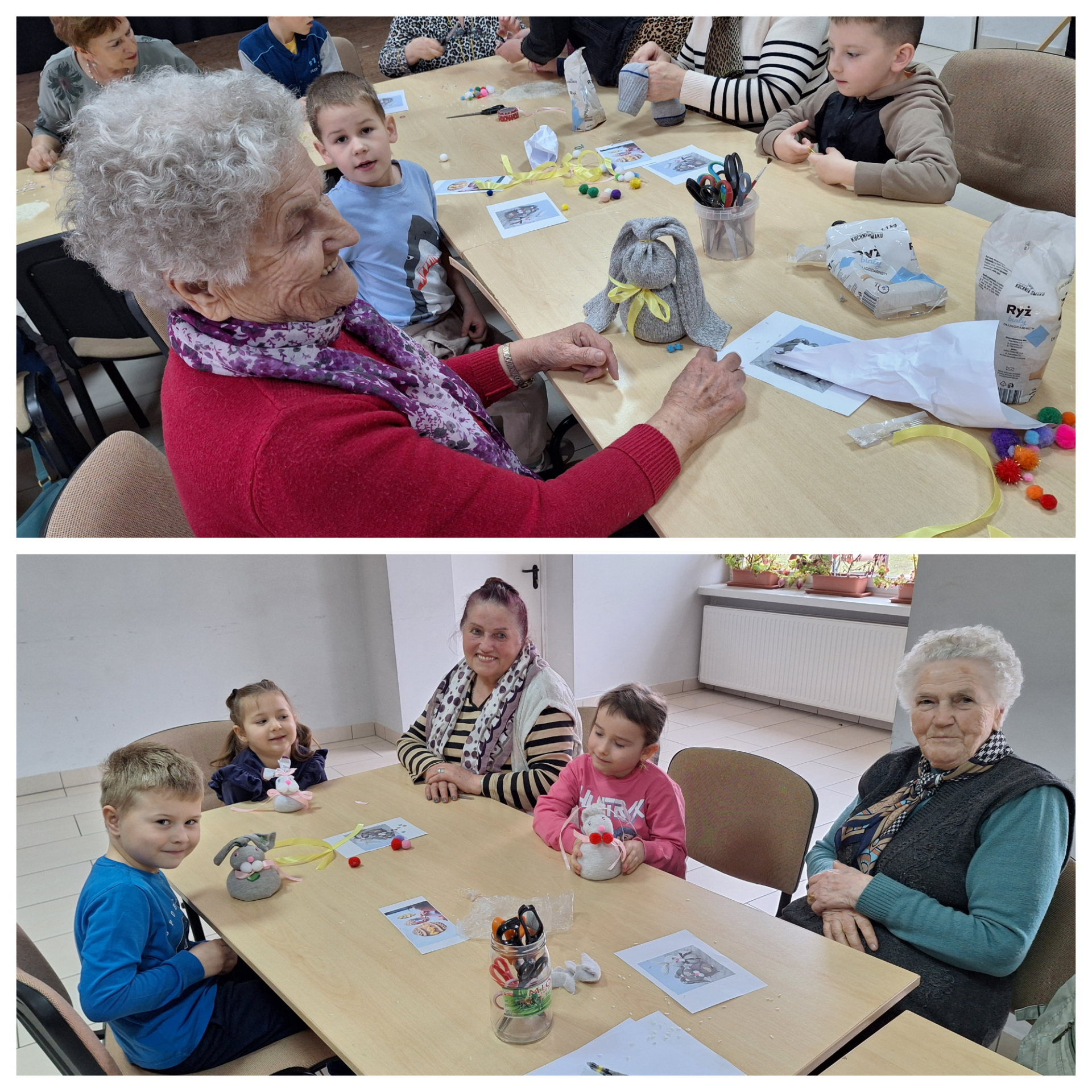 Dzieci z Oddziału Stokrotki uczestniczyły w świątecznych warsztatach z Klubem Seniora+. Dzieci wspólnie z seniorami z zaangażowaniem uczestniczyły w warsztatach plastycznych, podczas których wykonały wielkanocne zajączki ze skarpety i ryżu oraz makaronowe pisanki ozdobione farbami plakatowymi. Spotkanie przedszkolaków z seniorami odbyło się w atmosferze radości i wzajemnej życzliwości, a jego celem było kultywowanie tradycji związanych ze zbliżającymi się Świętami Wielkanocnymi. Na zakończenie dzieci złożyły seniorom serdeczne życzenia wielkanocne. Spotkanie było piękną okazją do integracji międzypokoleniowej oraz pielęgnowania tradycji wielkanocnych, a także do budowania wzajemnego szacunku i życzliwości.