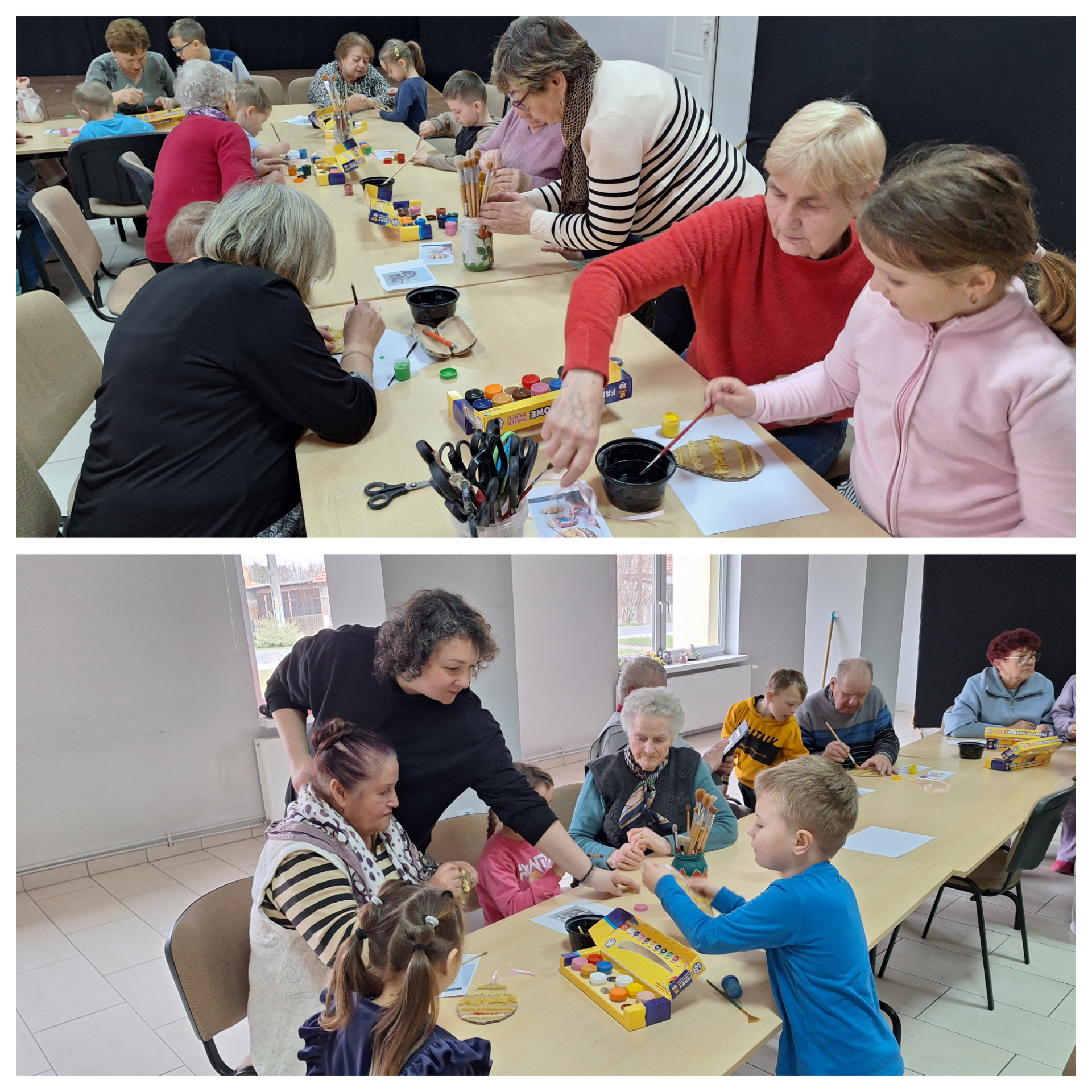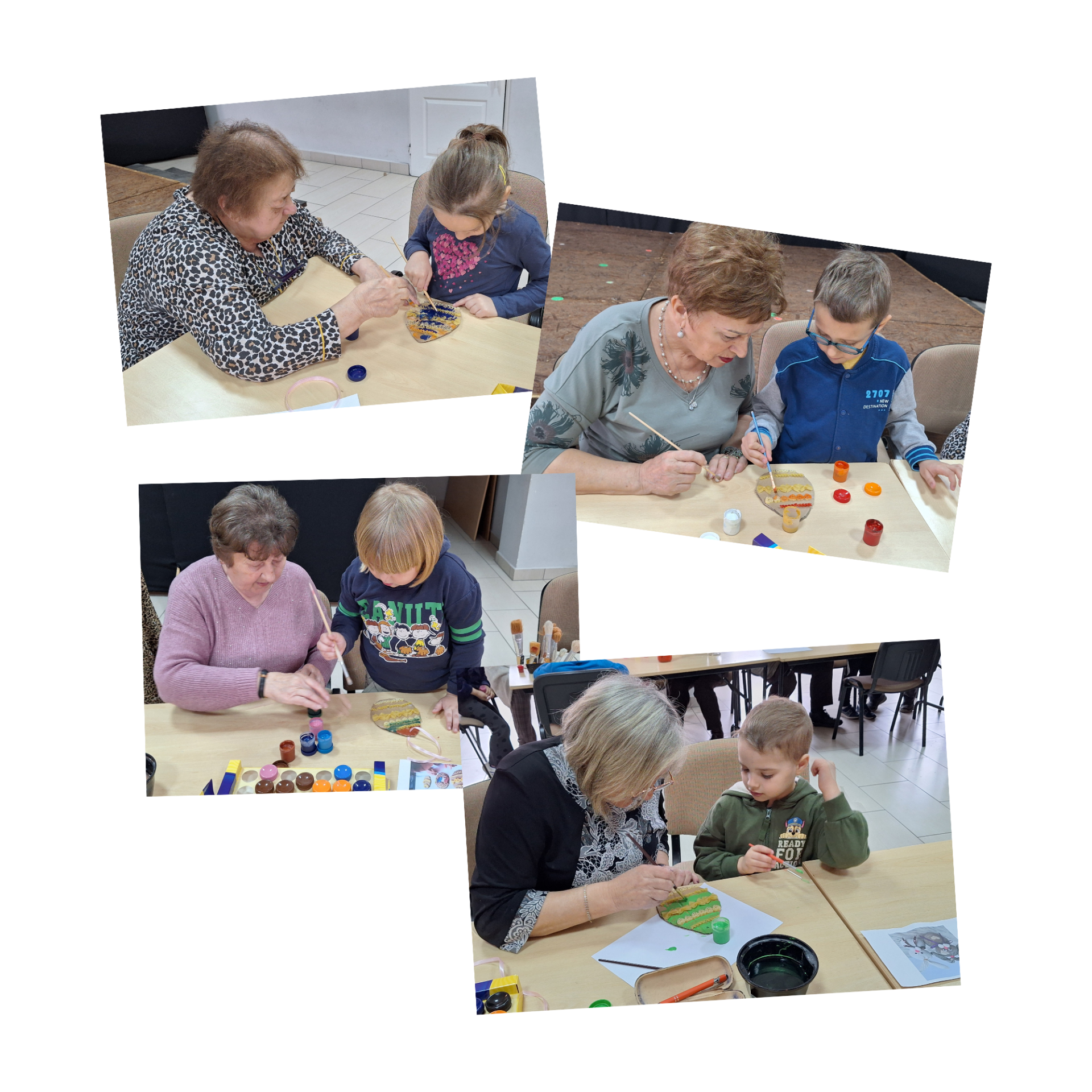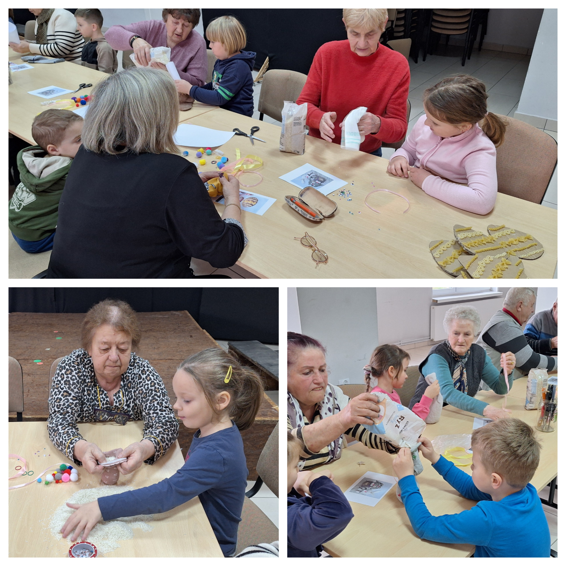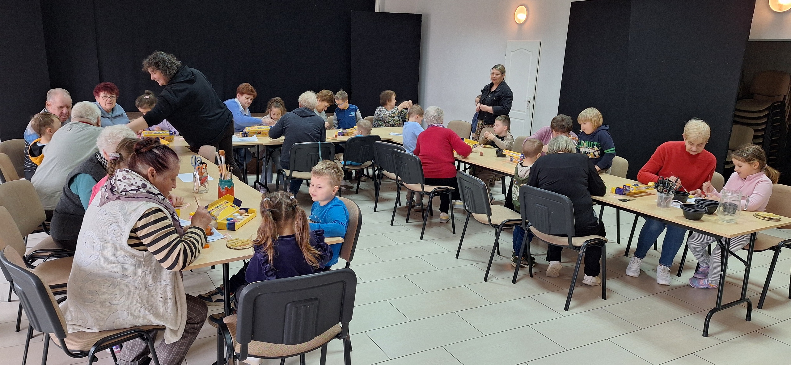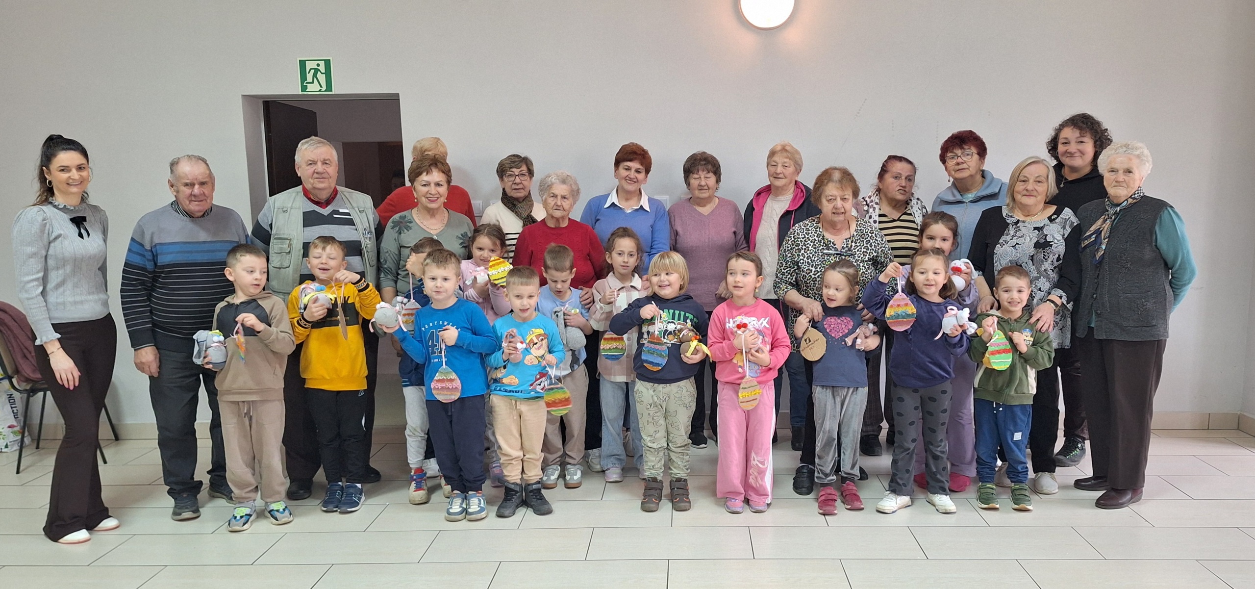 Dzieci z Oddziału Stokrotki uczestniczyły w świątecznych warsztatach z Klubem Seniora+. Dzieci wspólnie z seniorami z zaangażowaniem uczestniczyły w warsztatach plastycznych, podczas których wykonały wielkanocne zajączki ze skarpety i ryżu oraz makaronowe pisanki ozdobione farbami plakatowymi. Spotkanie przedszkolaków z seniorami odbyło się w atmosferze radości i wzajemnej życzliwości, a jego celem było kultywowanie tradycji związanych ze zbliżającymi się Świętami Wielkanocnymi. Na zakończenie dzieci złożyły seniorom serdeczne życzenia wielkanocne. Spotkanie było piękną okazją do integracji międzypokoleniowej oraz pielęgnowania tradycji wielkanocnych, a także do budowania wzajemnego szacunku i życzliwości.