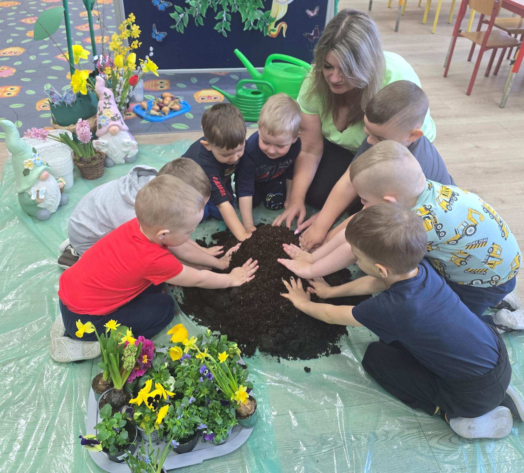 W swojej sali oraz przed budynkiem przedszkola dzieci z Oddziału Krasnoludki stworzyły wiosenny „Kącik przyrody”. Poprzez codzienną obserwację przedszkolaki będą mogły przekonać się, jaki jest cykl rozwoju roślin oraz jak ważna jest ich codzienna pielęgnacja. Dzieci postanowiły wspólnie dbać o nasionka i rośliny oraz systematycznie je podlewać. Celem tego działania było kształtowanie nawyków dbania o rośliny, zapoznanie z potrzebami i wymaganiami roślin.