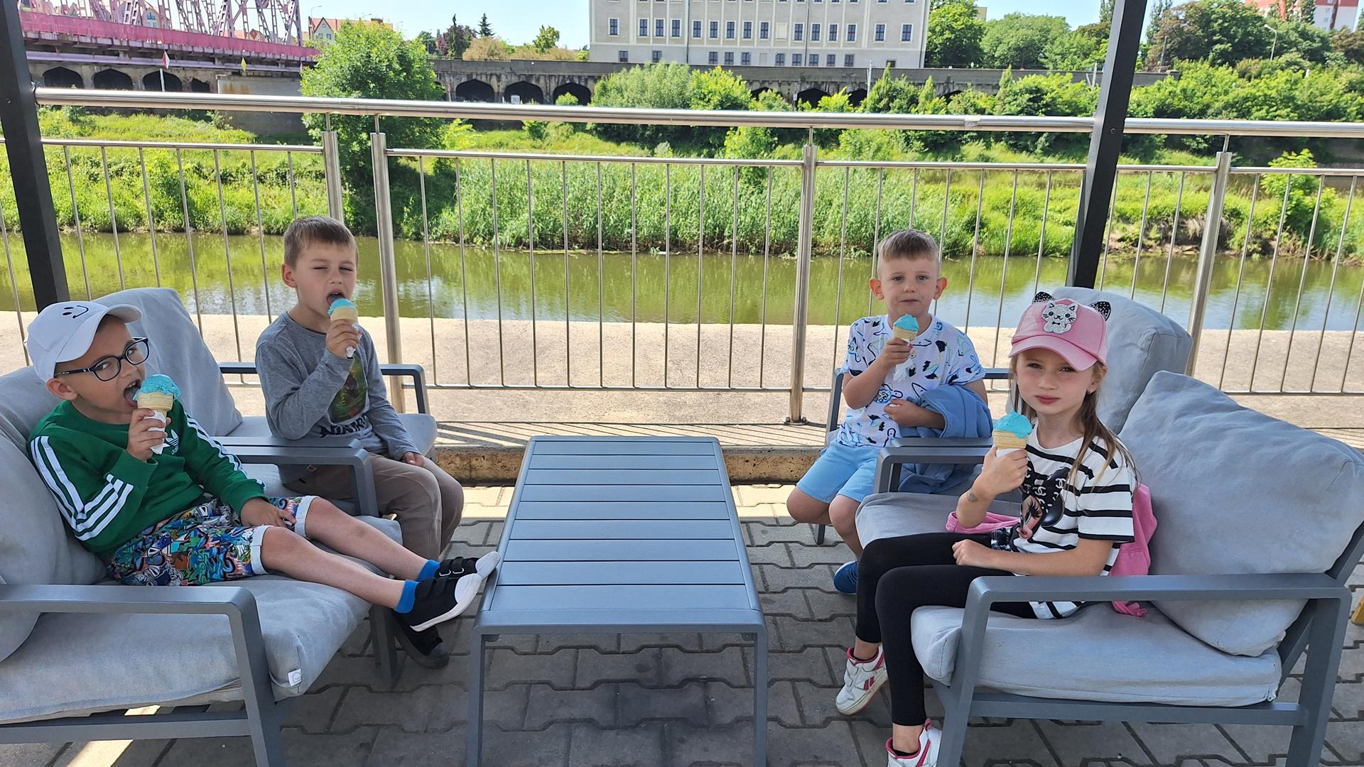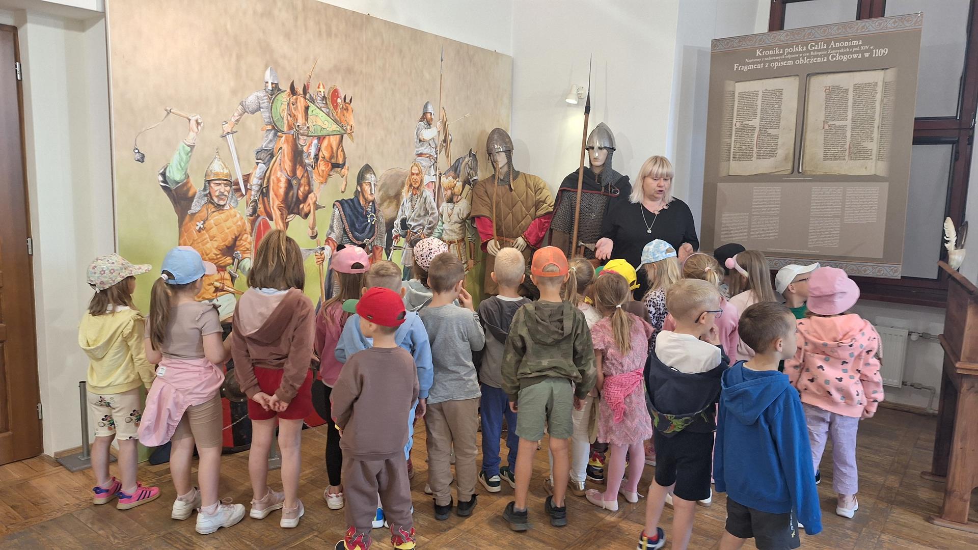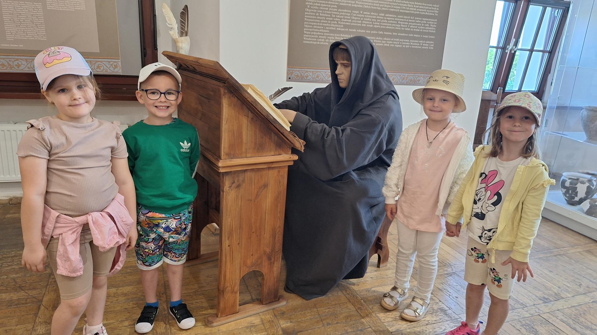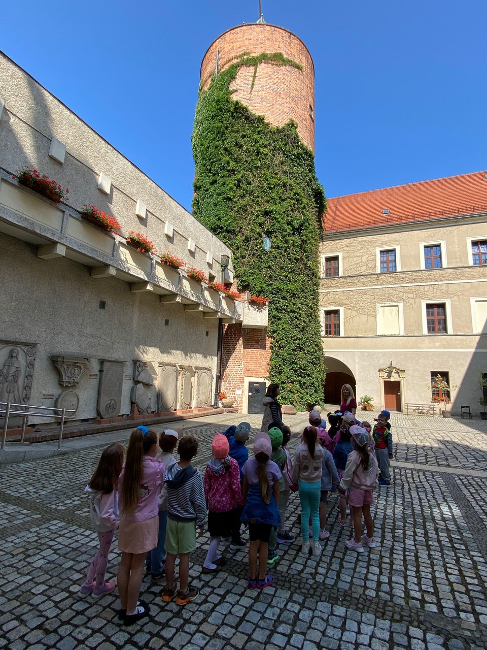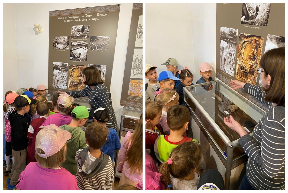 Dzieci z oddziałów Motylków i Biedronek miały okazję po raz kolejny w tym roku szkolnym uczestniczyć w wycieczce. Tym razem odwiedziły Muzeum Archeologiczno -Historyczne w Głogowie, gdzie dowiedziały się o tym kto pracuje w muzeum, skąd się biorą eksponaty i dlaczego są takie cenne. Wzięły też udział w zajęciach muzealnych ,,Legendy Głogowskie” i ,,Rycerz ci opowie” oraz pod czujnym okiem pani przewodnik przyjrzały się eksponatom zgromadzonym w wybranych salach muzealnych. Po sporej dawce historii naszego regionu dzieci przeszły Mostem Tolerancji do pobliskiej Mariny, gdzie obserwując nurt rzeki Odry – zajadały przepyszne lody. To był bardzo udany dzień, który na długo pozostawi wiele miłych wrażeń.