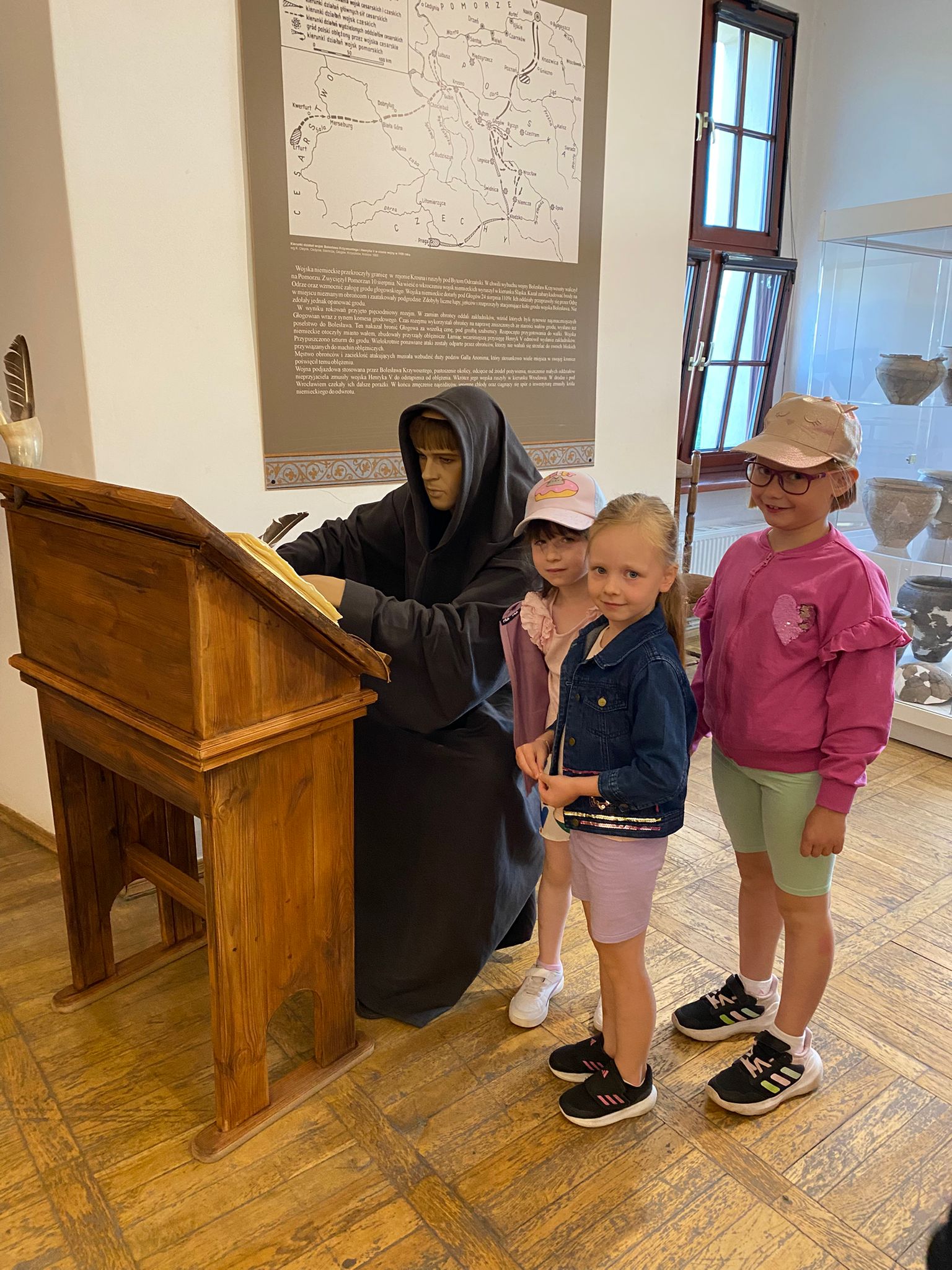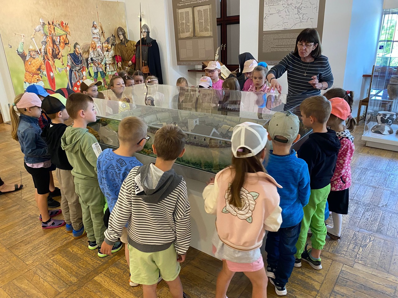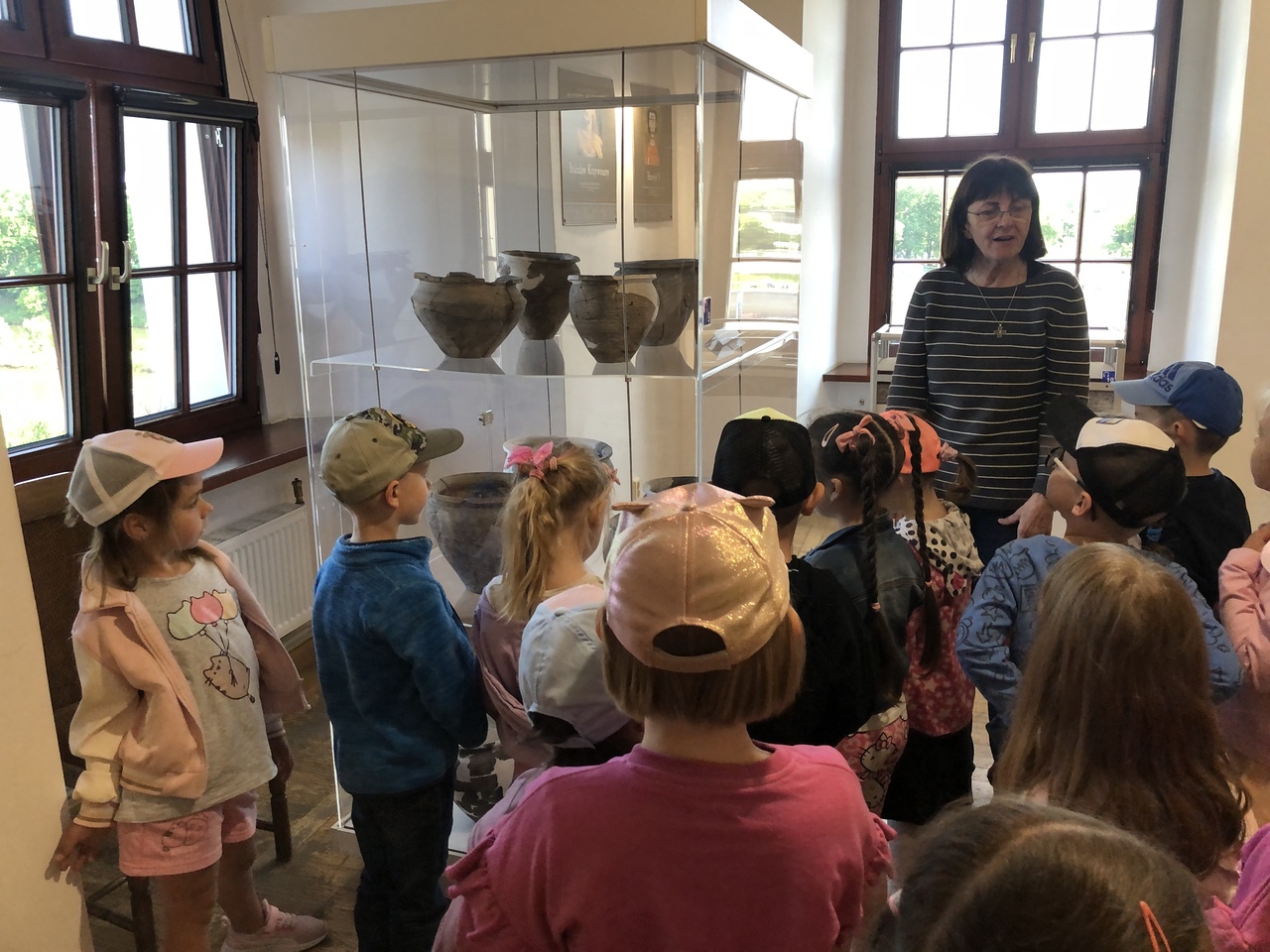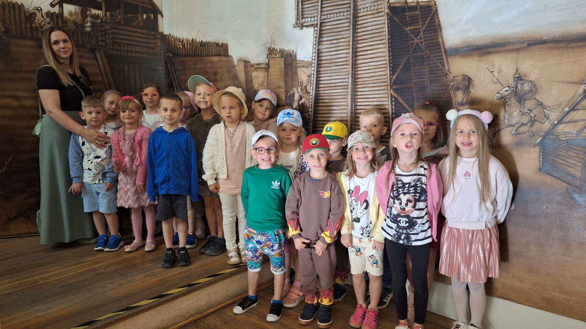 Dzieci z oddziałów Motylków i Biedronek miały okazję po raz kolejny w tym roku szkolnym uczestniczyć w wycieczce. Tym razem odwiedziły Muzeum Archeologiczno -Historyczne w Głogowie, gdzie dowiedziały się o tym kto pracuje w muzeum, skąd się biorą eksponaty i dlaczego są takie cenne. Wzięły też udział w zajęciach muzealnych ,,Legendy Głogowskie” i ,,Rycerz ci opowie” oraz pod czujnym okiem pani przewodnik przyjrzały się eksponatom zgromadzonym w wybranych salach muzealnych. Po sporej dawce historii naszego regionu dzieci przeszły Mostem Tolerancji do pobliskiej Mariny, gdzie obserwując nurt rzeki Odry – zajadały przepyszne lody. To był bardzo udany dzień, który na długo pozostawi wiele miłych wrażeń.