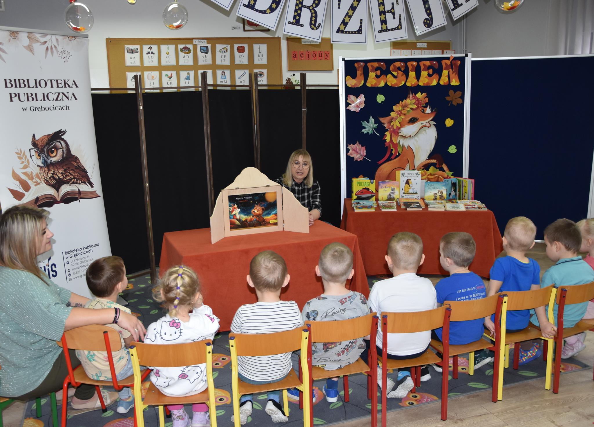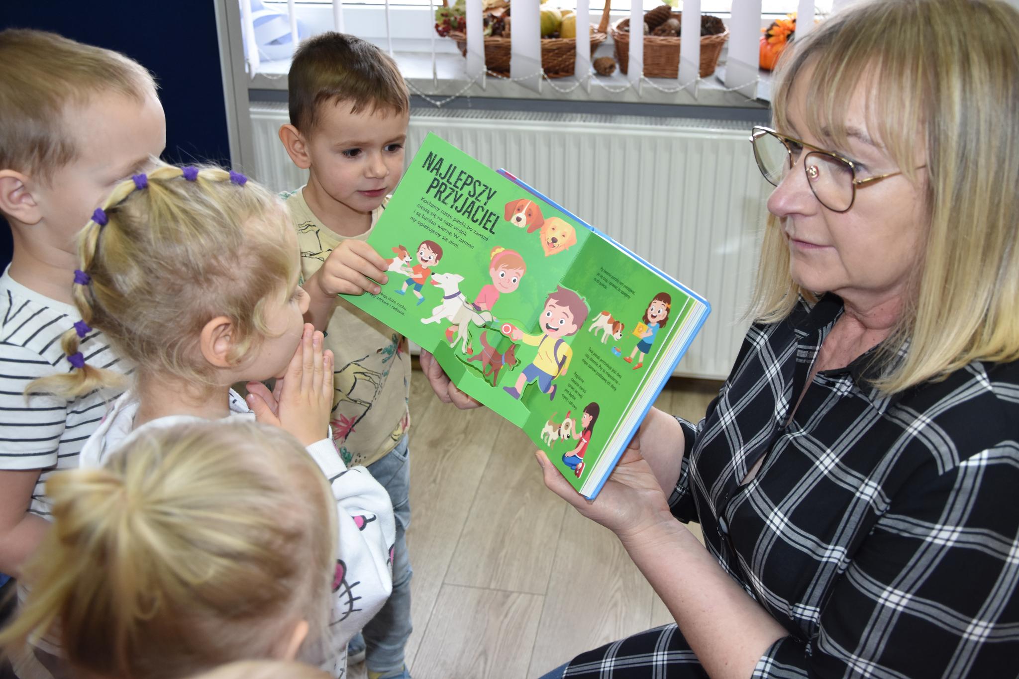 W naszym przedszkolu odbyło się wyjątkowe spotkanie czytelnicze prowadzone przez Panią Barbarę Tasarz, podczas którego dzieci wyruszyły w magiczną podróż tropem przyjaźni i dobrych emocji. Celem spotkania było rozwijanie zainteresowań czytelniczych, budowanie wrażliwości emocjonalnej oraz kształtowanie postaw przyjacielskich poprzez literaturę, zabawę i wspólne działania. Krasnoludki spotkanie rozpoczęły przedstawieniem teatrzyku Kamishibai pt. „Wyprawa po Kryształową Przyjaźń”, która przeniosła najmłodszych w baśniowy świat wartości, współpracy i serdeczności. Dzieci wraz z pacynką Misiem odkrywały, jak ważne są życzliwość, dobre słowa i wspólne działanie.