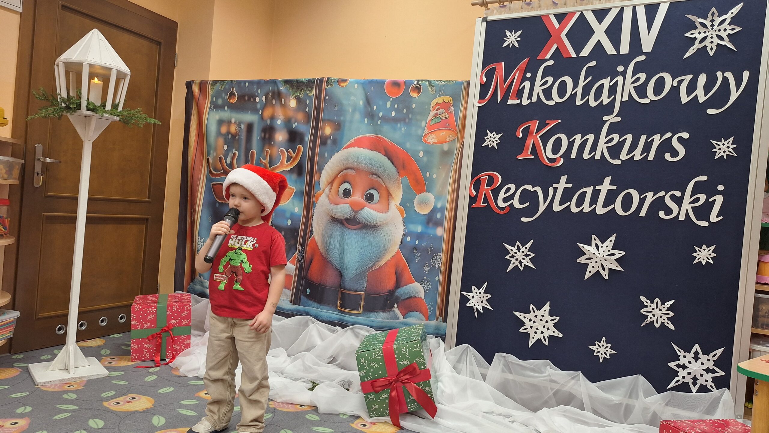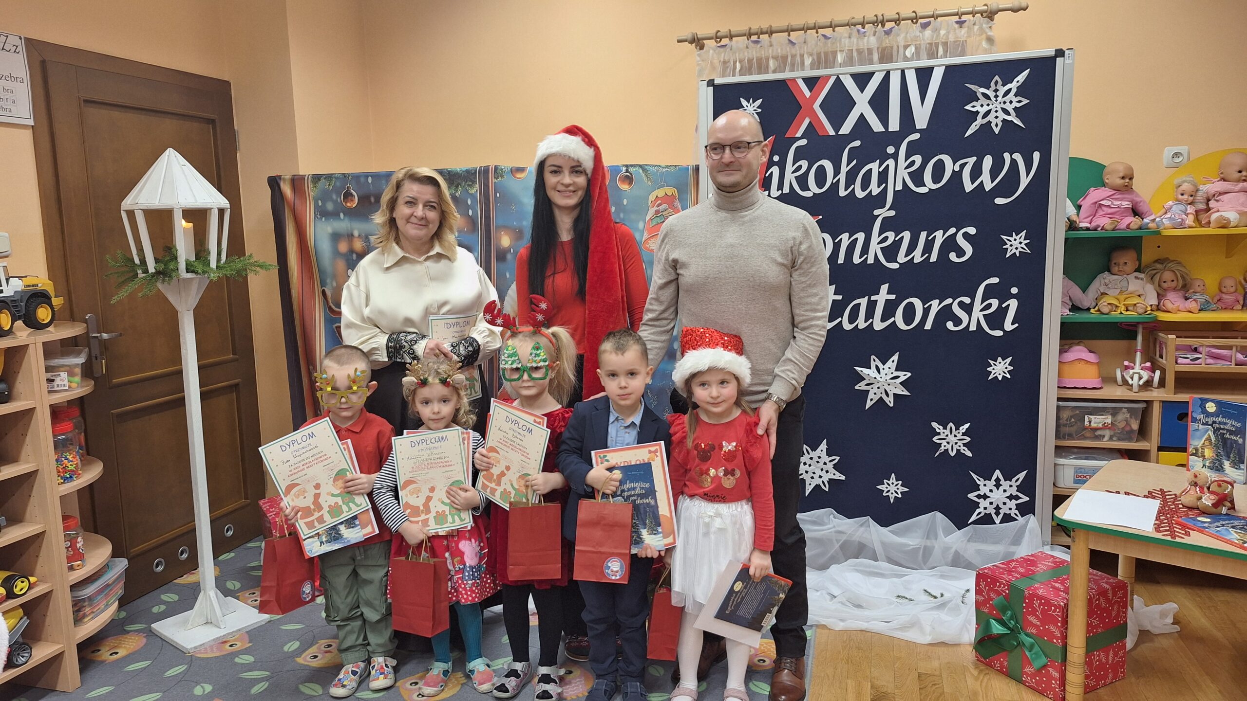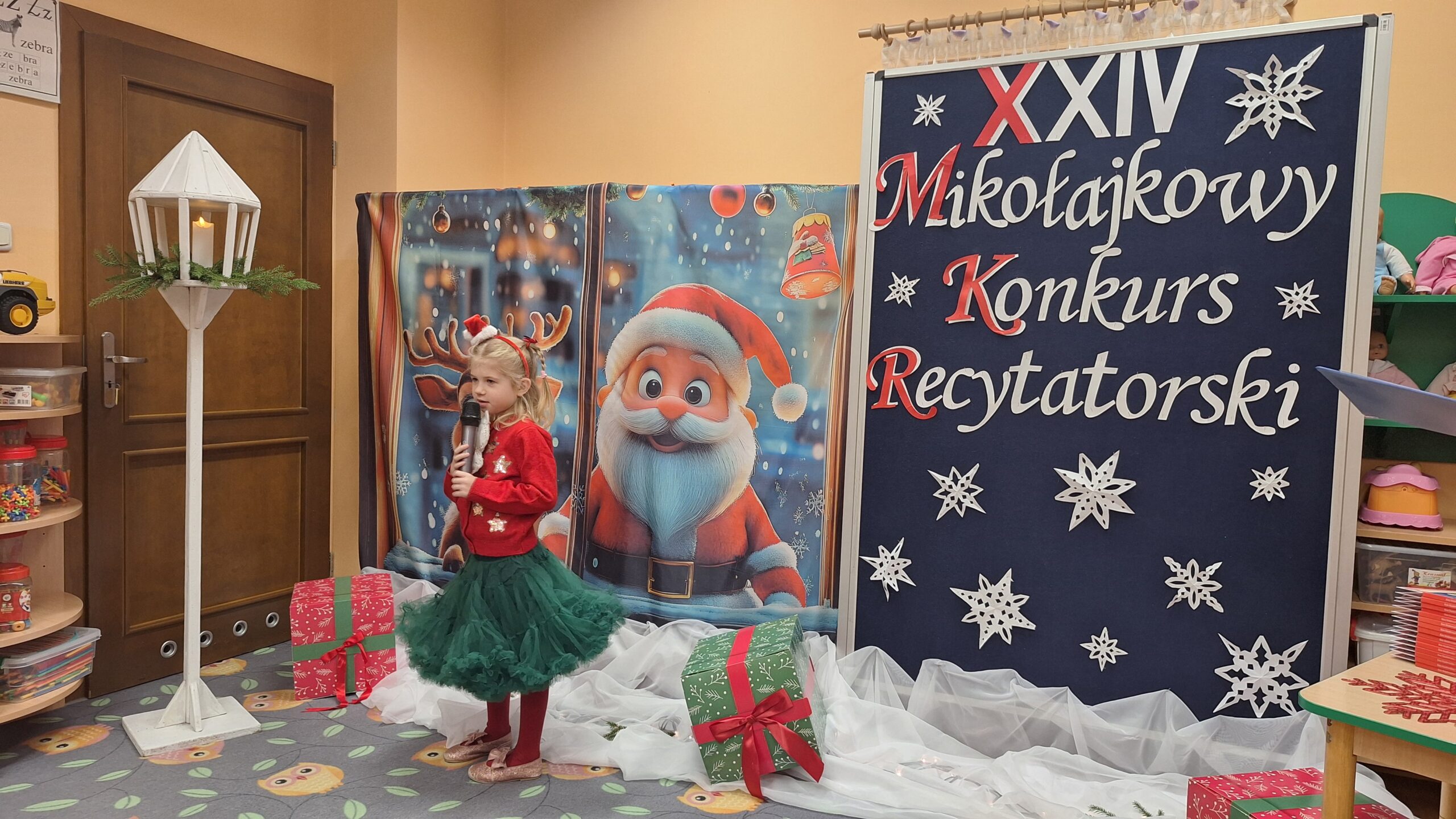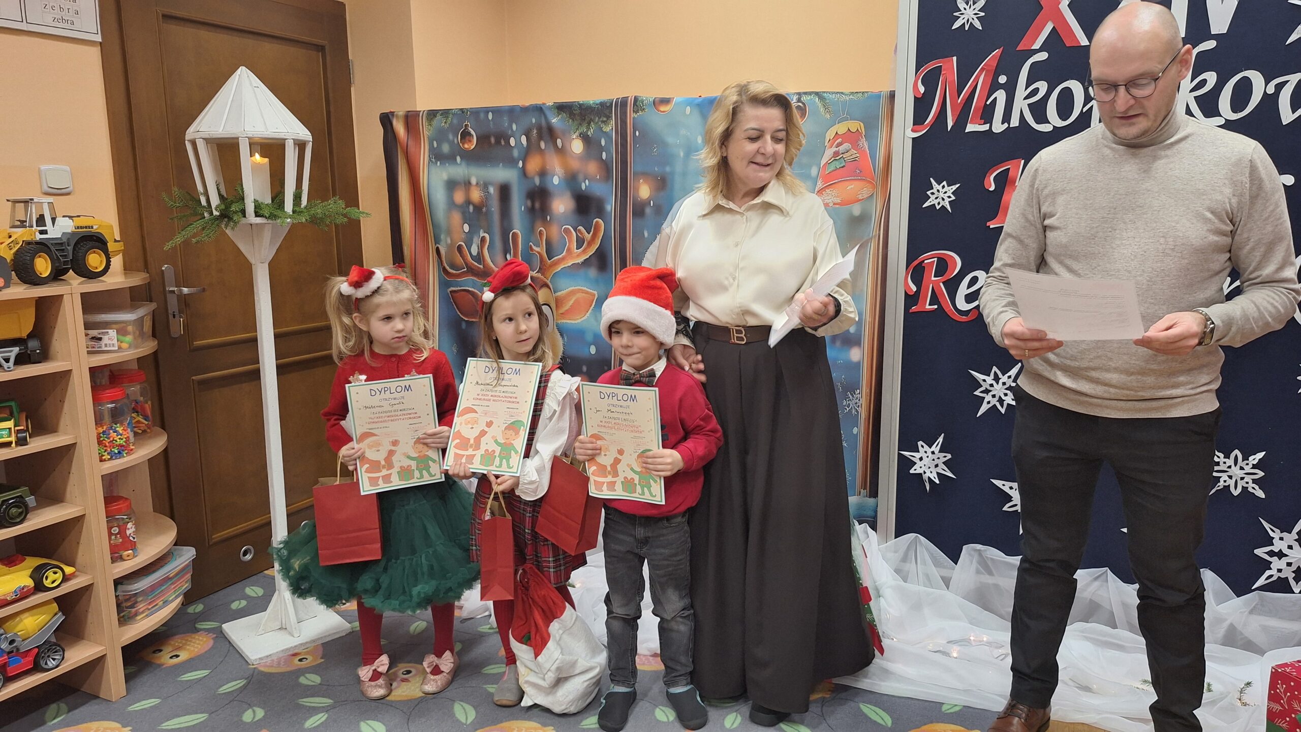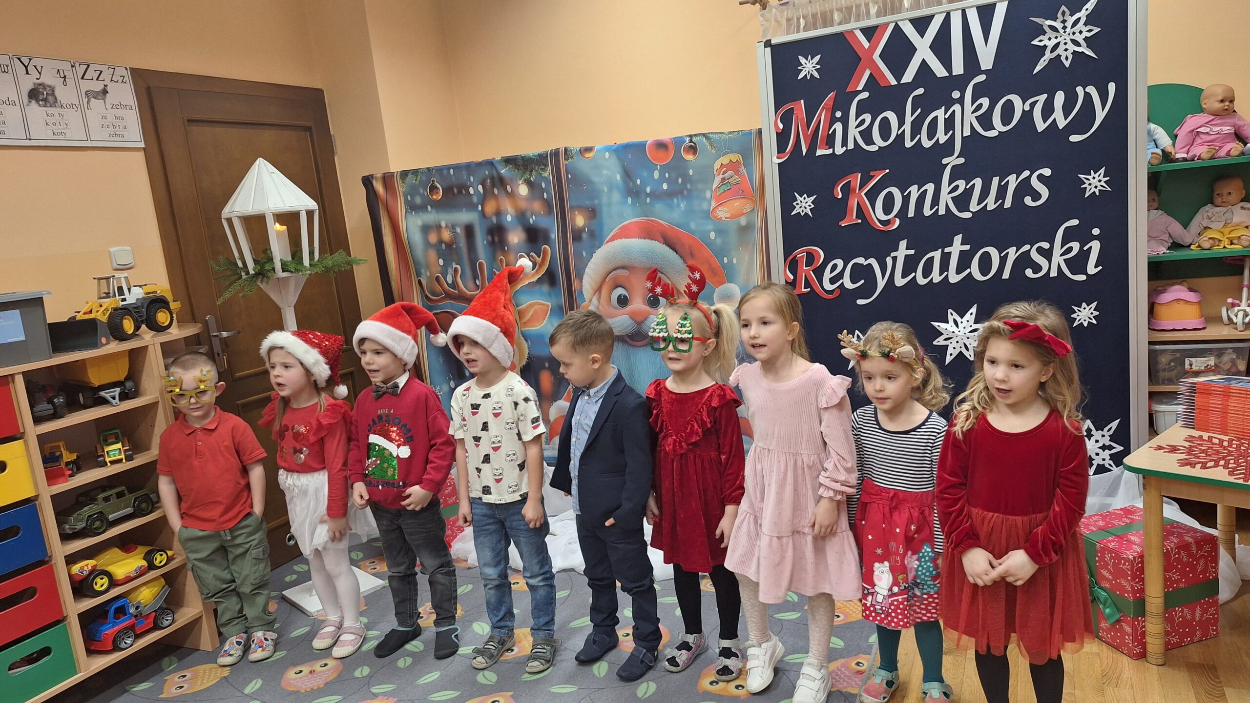 Nasze przedszkole już po raz XXIV zaprosiło przedszkolaków do udziału w Mikołajkowym Konkursie Recytatorskim. Konkurs miał na celu pobudzanie aktywności twórczej w dziedzinie poezji, rozwijanie kultury żywego słowa, uwrażliwienie na piękno poezji polskiej oraz rozwijanie zainteresowań i zdolności recytatorskich. Konkurs skierowany był do dzieci uczęszczających do Przedszkola Publicznego im. Jana Brzechwy w Grębocicach. Warunkiem udziału w konkursie było zaprezentowanie przez każdego uczestnika jednego utworu o tematyce związanej z Mikołajem.