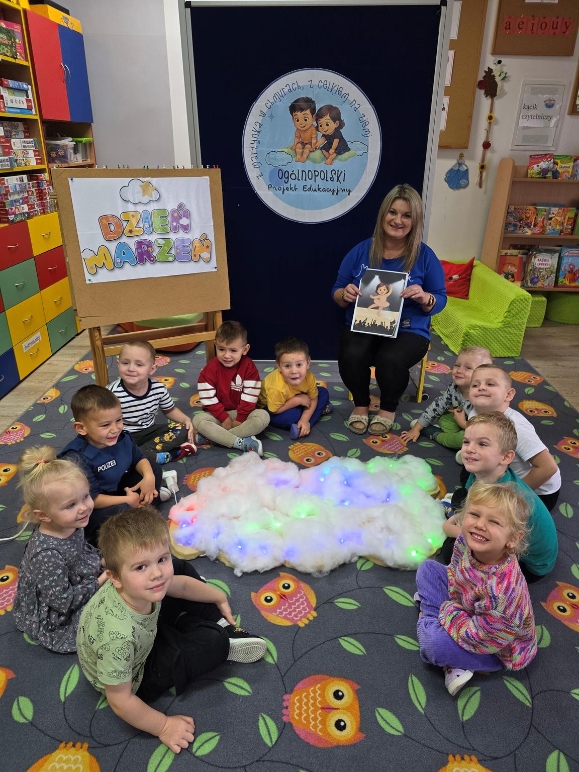 Podczas zajęć przedszkolaki rozwijały wyobraźnię, uczyły się rozpoznawać i nazywać emocje oraz wierzyć w swoje możliwości i marzenia. W ramach projektu wykonywały ciekawe zadania, takie jak: Słoik Marzeń, Baloniku leć daleko, Pocztówka z Kosmosu, Pudełka Radości, Misiowe Emocje, Kapelusz Marzeń, Zdrowo- Tęczowo czy Zoo Wyobraźni, które wspierały kreatywność, rozwój emocjonalny i społeczny dzieci, dostarczając im wiele radości i inspiracji.