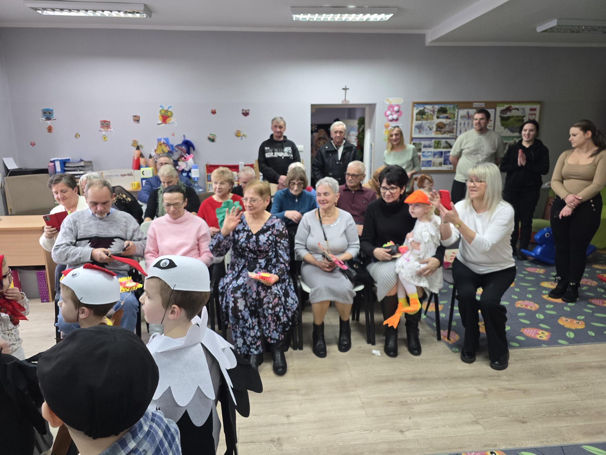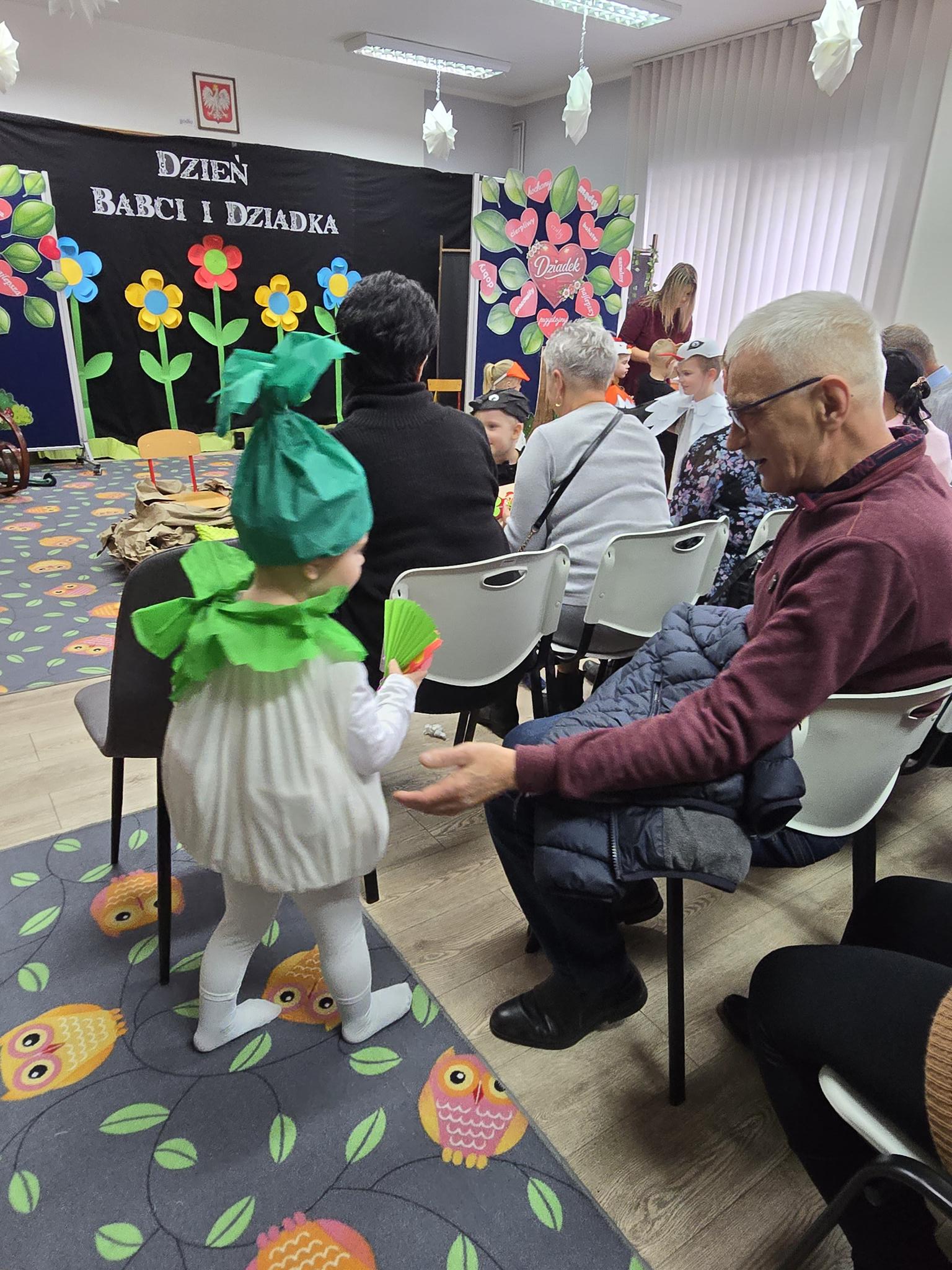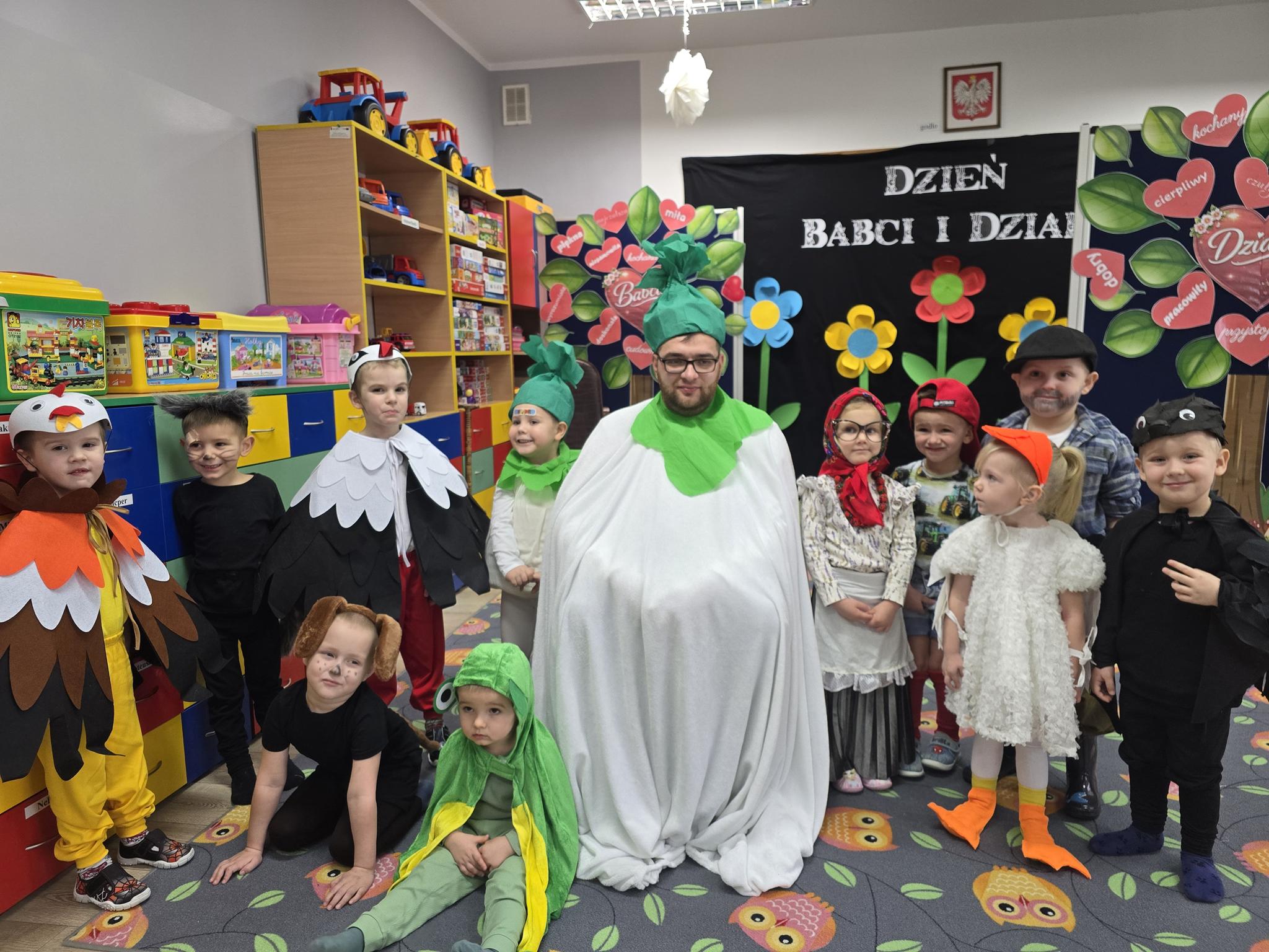 Z okazji Dnia Babci i Dziadka w oddziale „Krasnoludki” odbyło się wyjątkowe spotkanie pełne radości i wzruszeń. Dzieci z ogromnym zaangażowaniem zaprezentowały krótką inscenizację znanego i lubianego wiersza „Rzepka” autorstwa Juliana Tuwima. Przedstawienie było piękną opowieścią o współpracy, wzajemnej pomocy i sile bycia razem – wartościach, które Babcie i Dziadkowie przekazują swoim wnukom każdego dnia. Mali aktorzy przenieśli gości do świata dziecięcej wyobraźni, uśmiechu i radości, a występ nagrodzony został gromkimi brawami i ciepłymi uśmiechami.