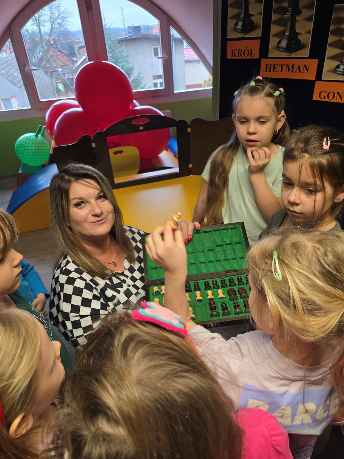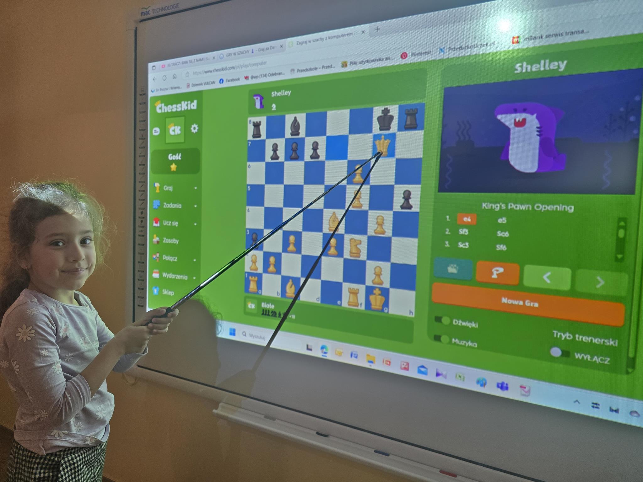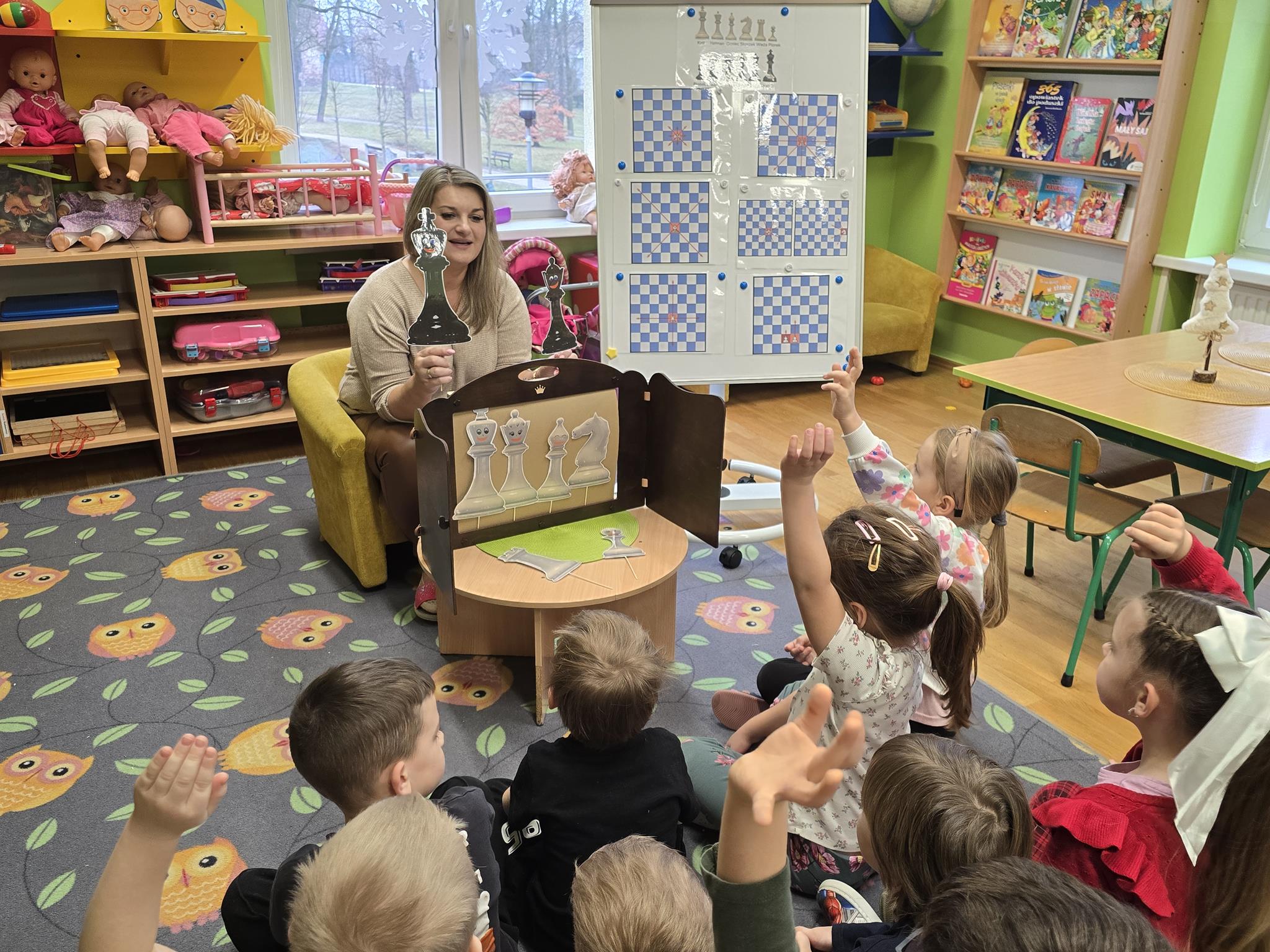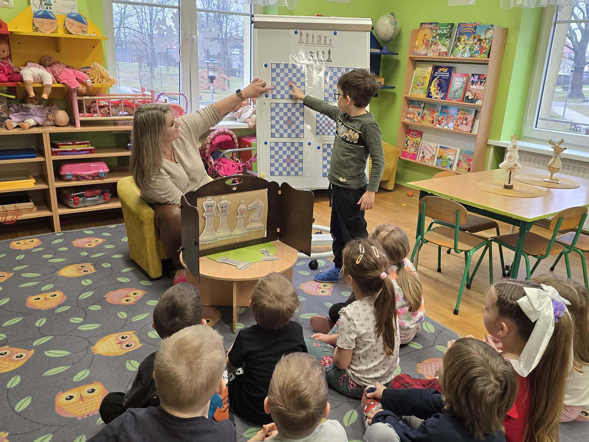 W naszym przedszkolu stawiamy na wszechstronny rozwój dzieci, dlatego z radością wprowadziliśmy zajęcia z gry w szachy. Z uwagi na to, że młodzi szachiści muszą przestrzegać pewnych reguł i zasad, uczą się tym samym zdyscyplinowania i systematyczności. Ćwiczą swoją pamięć, wyobraźnie przestrzenną, rozwijają zdolności koncentracji. W szachach nie zawsze dziecko wygrywa, dlatego uczy się trudnej sztuki przegrywania, tolerancji oraz wytrwałości w dążeniu do celu. Zasady gry w szachy można poznać w krótkim czasie, a korzyści, jakie wynikają z treningu gry w szachy są długotrwałe. Nasze zajęcia szachowe są dostosowane do wieku i umiejętności każdego dziecka poprzez zabawę, dzięki czemu nawet najmłodsi mogą czerpać radość z tej królewskiej gry.