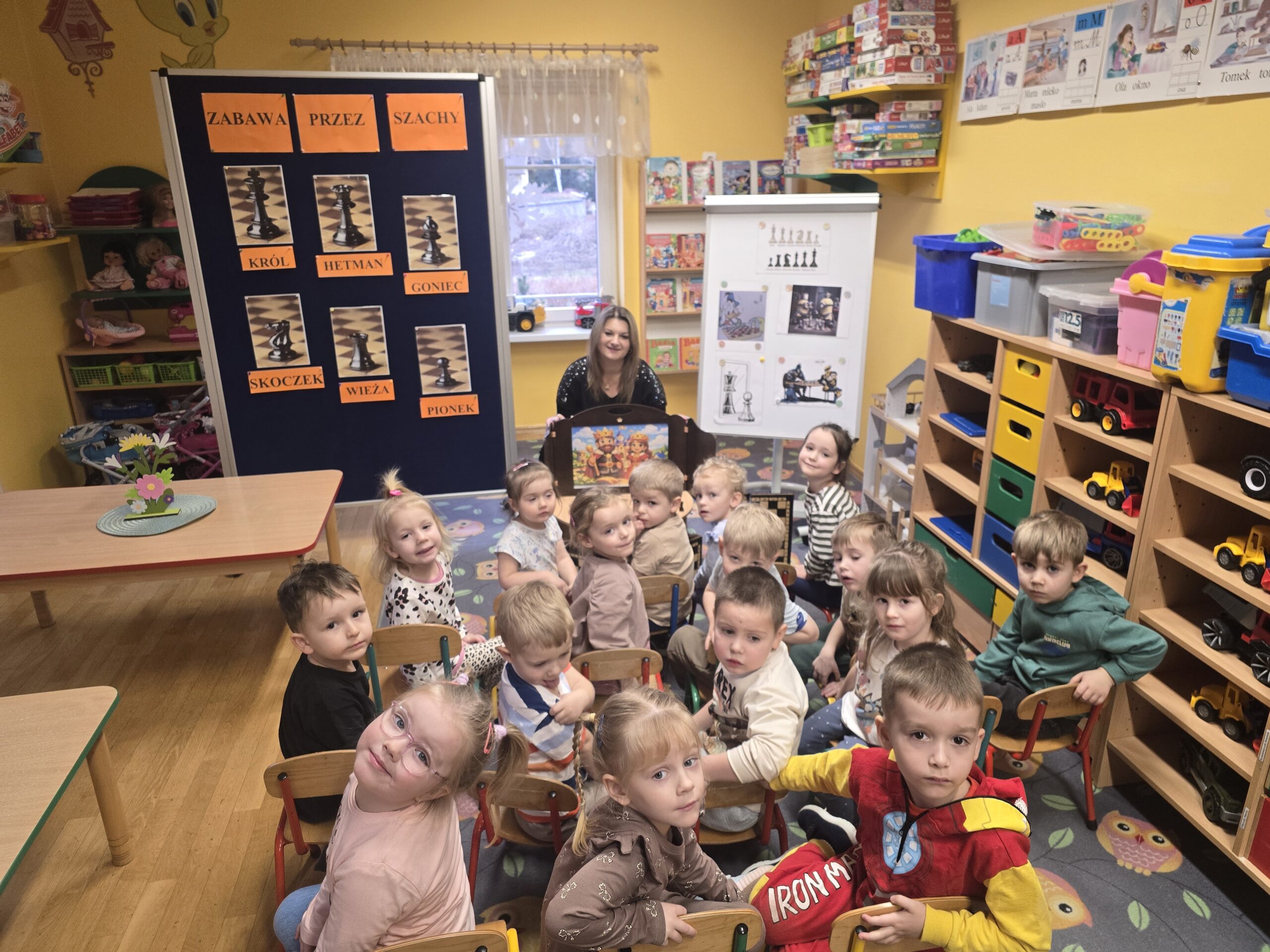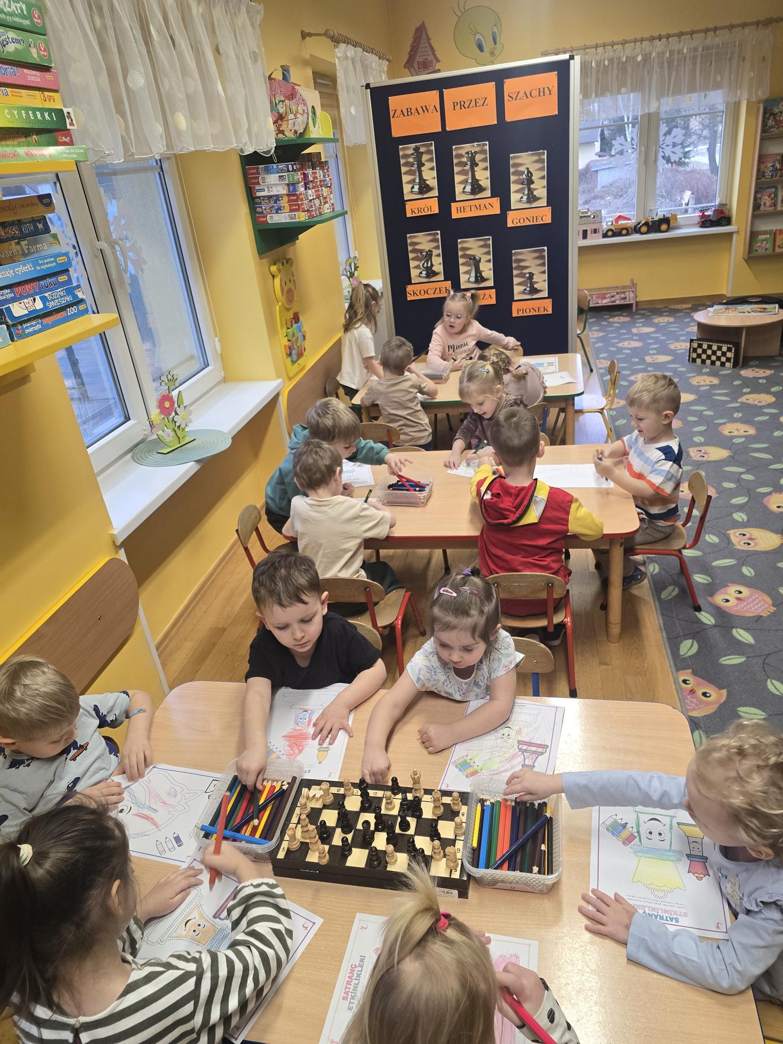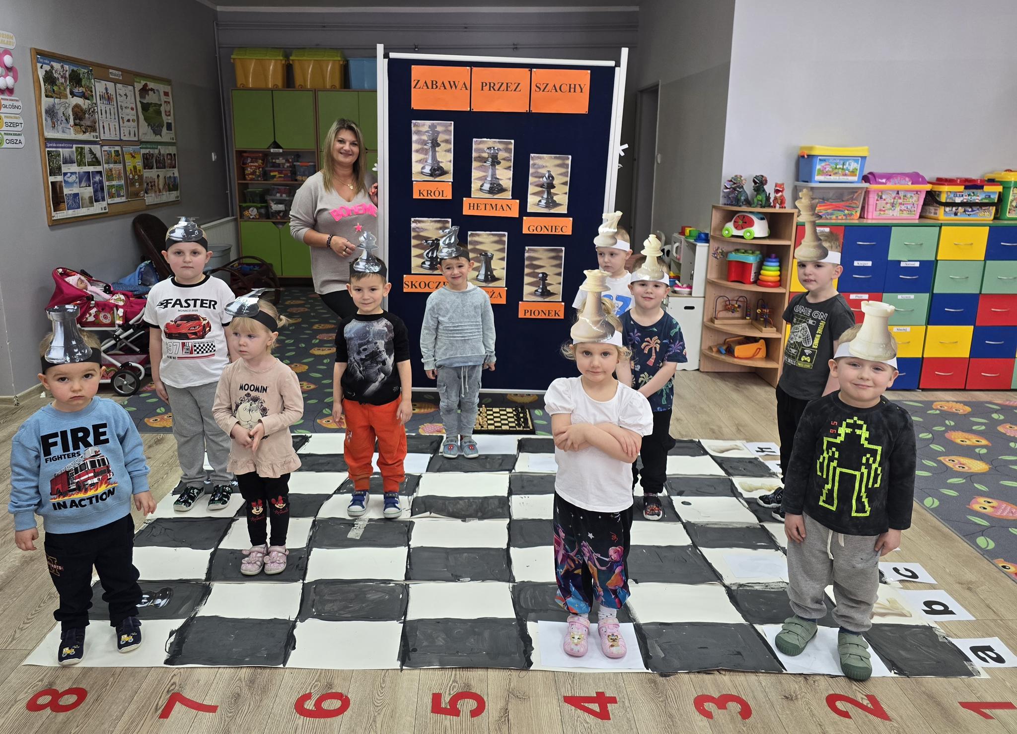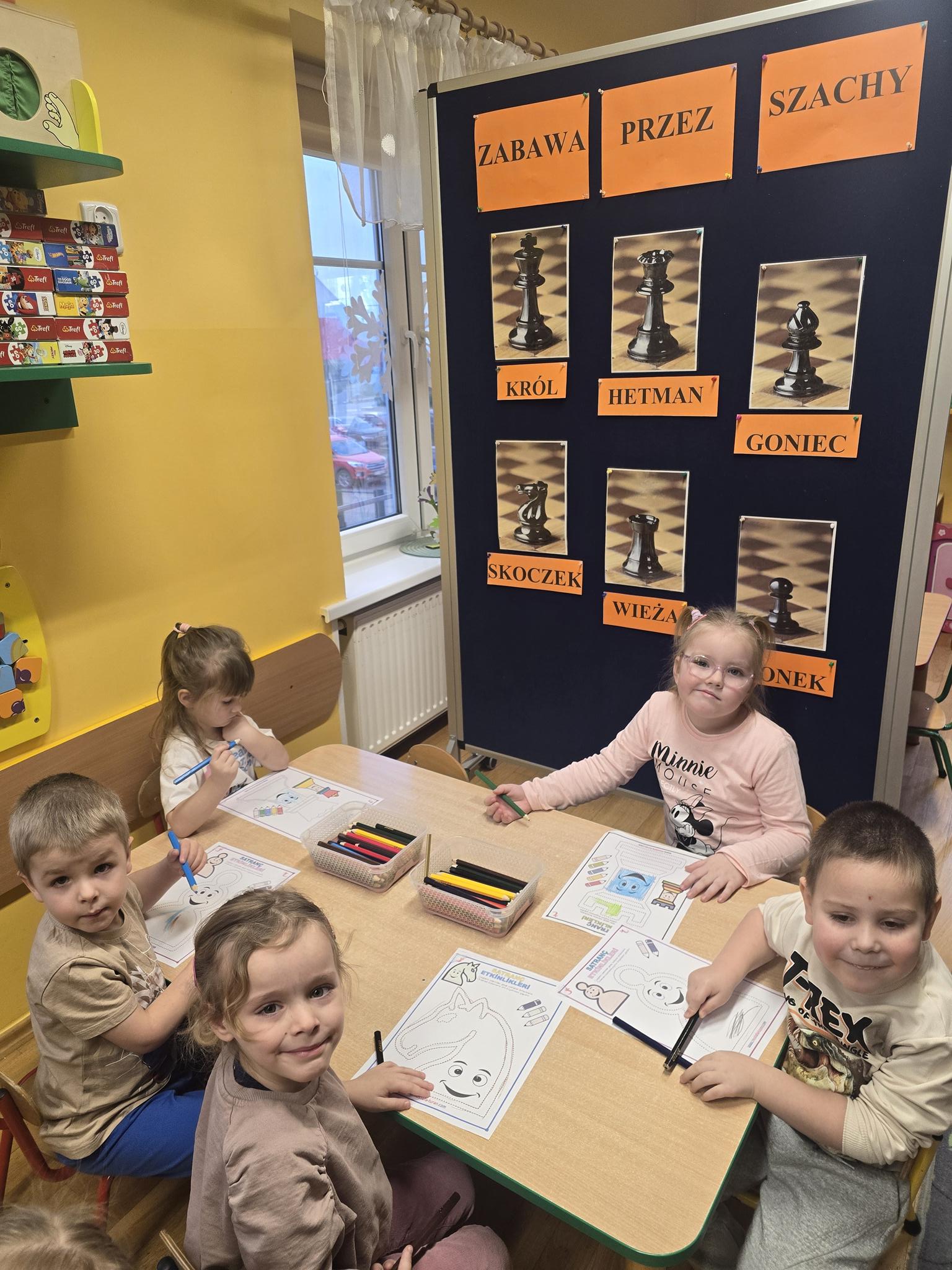 W naszym przedszkolu dzieci wyruszyły w niezwykłą przygodę do magicznej Krainy Szacholandii! Podczas zajęć przedszkolaki poznawały tajemnice szachownicy, odkrywały nazwy figur oraz uczyły się ich wyjątkowych ruchów poprzez zabawę, opowiadania i aktywności ruchowe.