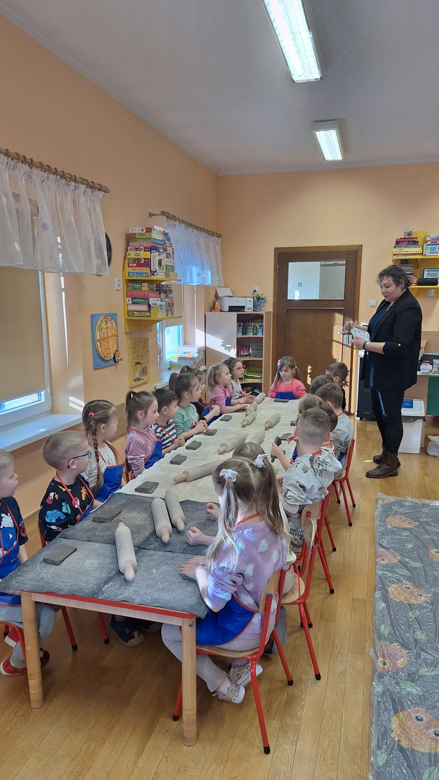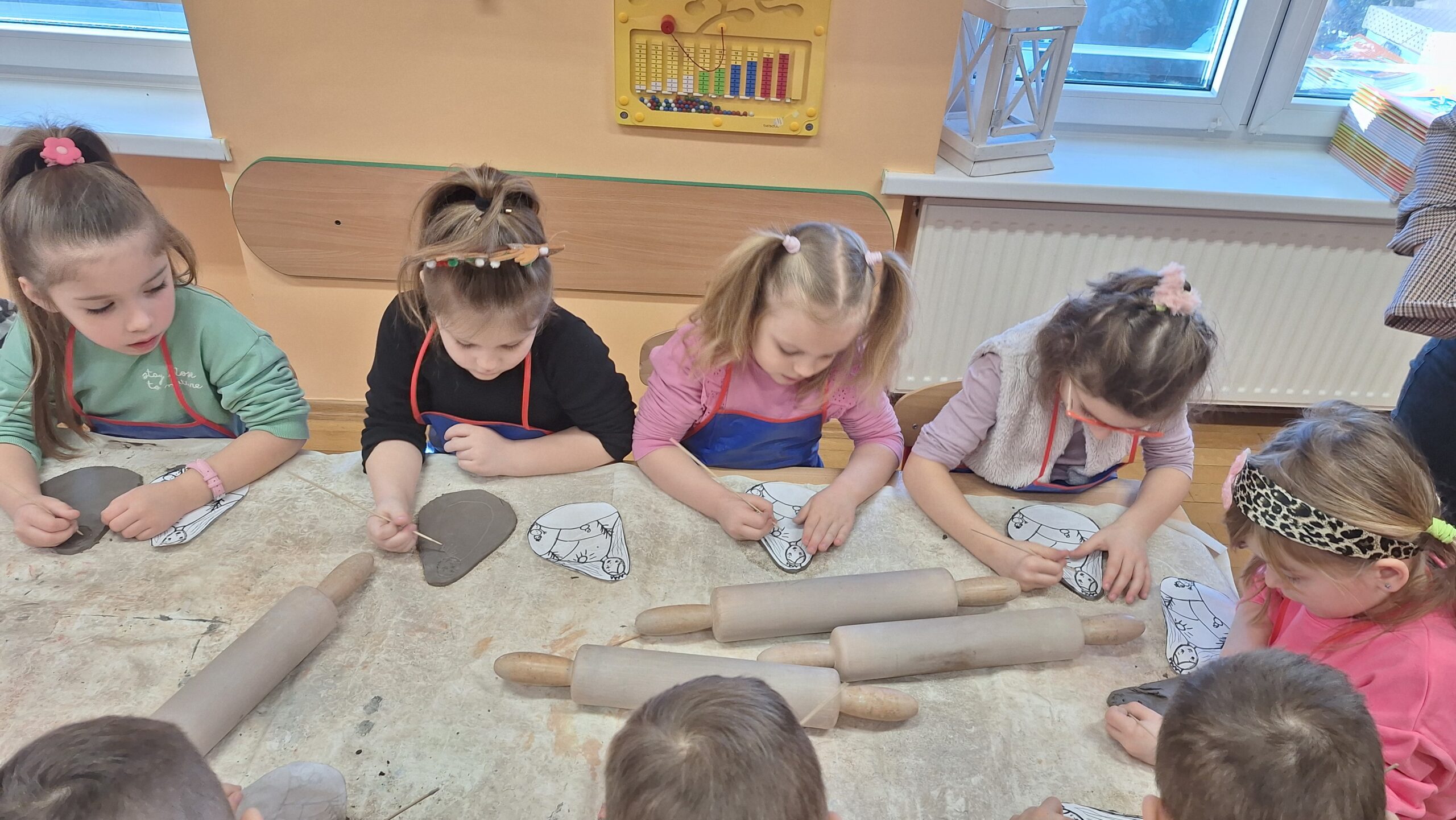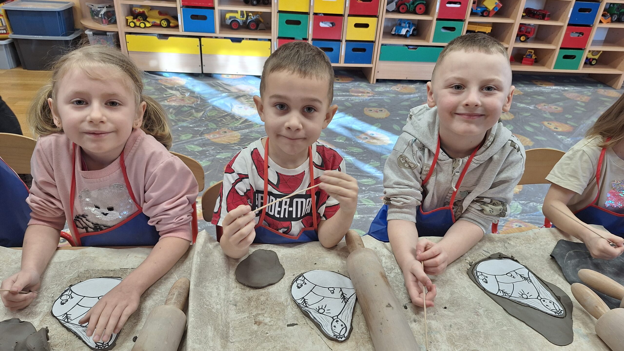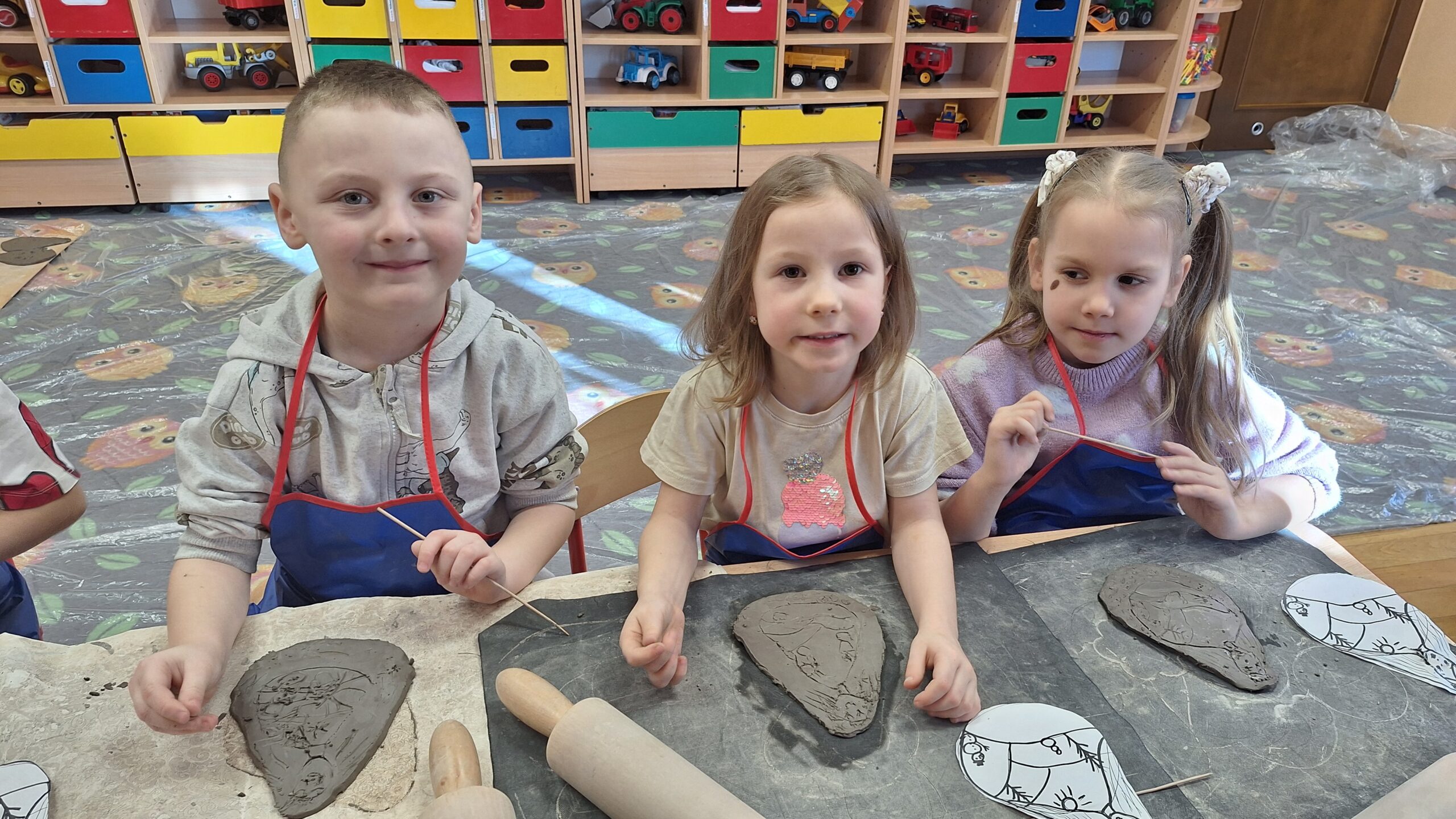 Dnia 19.02.2025 roku dzieci z oddziału „Biedronek” uczestniczyły, już po raz drugi w tym roku szkolnym, w warsztatach ceramicznych. Praca z gliną wpływa korzystnie na harmonijny rozwój dzieci. Ugniatanie, wałkowanie, formowanie i ozdabianie gliny to doskonałe wsparcie rozwoju motoryki małej. To cenne doświadczenie sensoryczne, które znakomicie stymuluje układ nerwowy. Ponadto praca z gliną wycisza, uczy cierpliwości, umożliwia doskonalenie umiejętności koncentracji. Podczas zajęć ceramicznych nie jest istotny efekt, lecz sam proces pracy z gliną, zabawa, i samodzielne doświadczanie. Zajęcia pełne twórczej aktywności dały dużo radości i satysfakcji dzieciom.