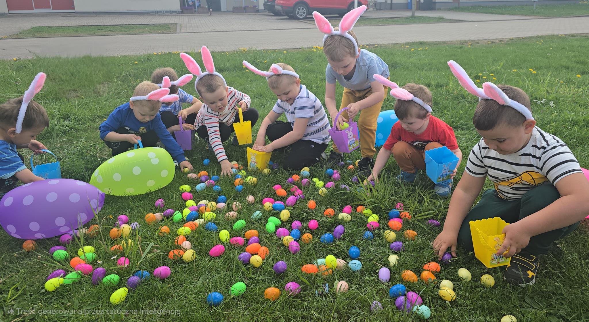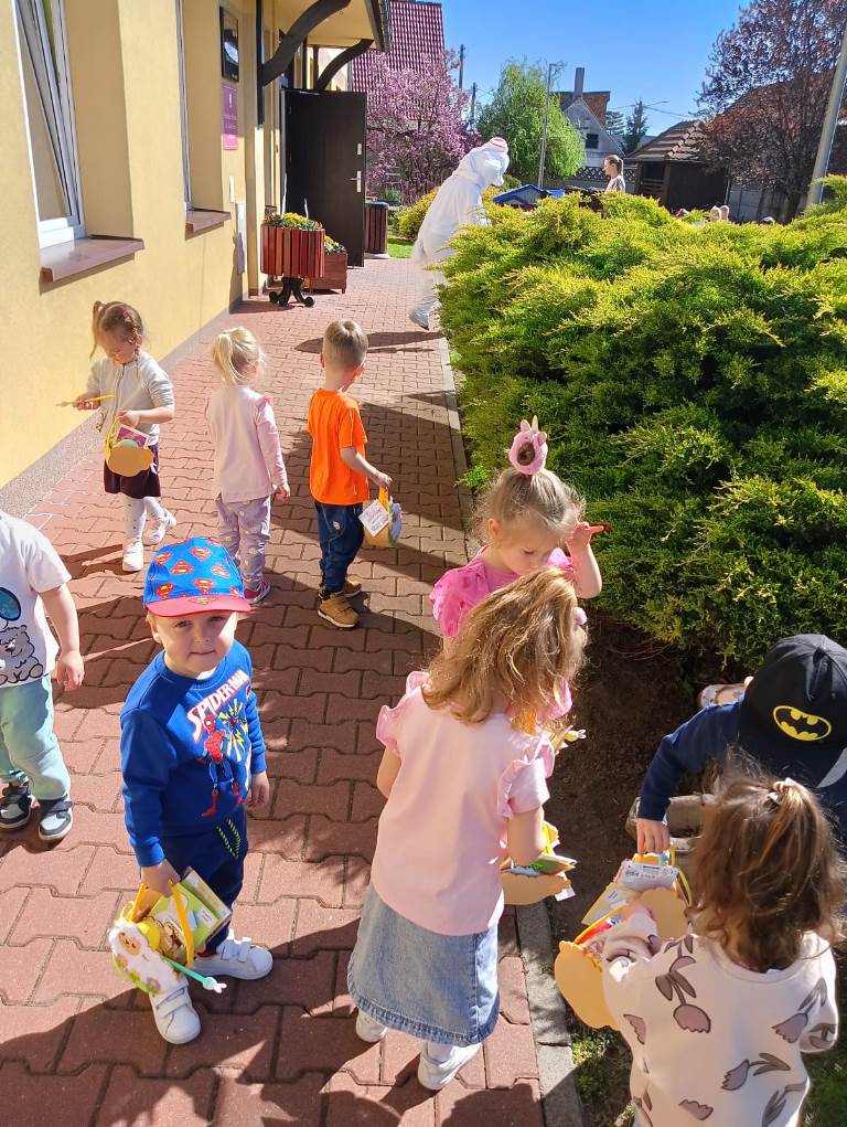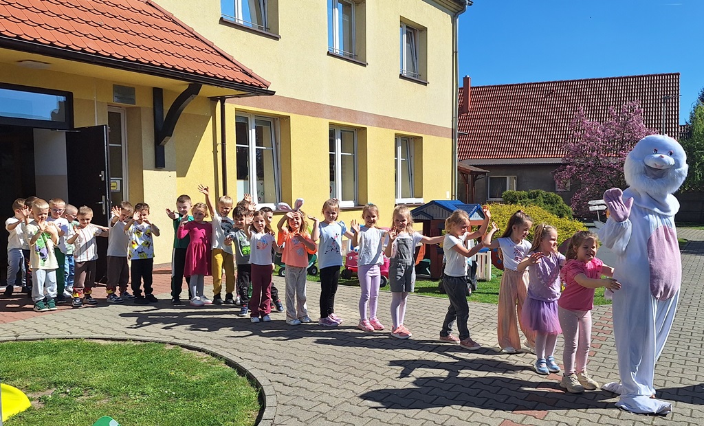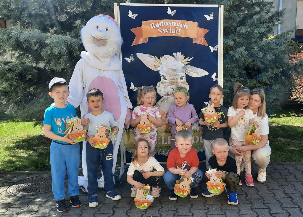 Jedną z najmilszych i najprzyjemniejszych dla dzieci tradycji wielkanocnych jest „zajączek”. Chodzi on z koszyczkiem wielkanocnym i zostawia prezenty, zazwyczaj słodkości i drobne upominki. Każdego roku, tuż przed świętami wielkanocnymi, nasze odziały przedszkolne odwiedza zajączek wielkanocny. Przychodzi, a raczej kica z prezentami dla dzieci. Już od rana przedszkolaki z niecierpliwością czekają na przyjście zajączka z prezentami.