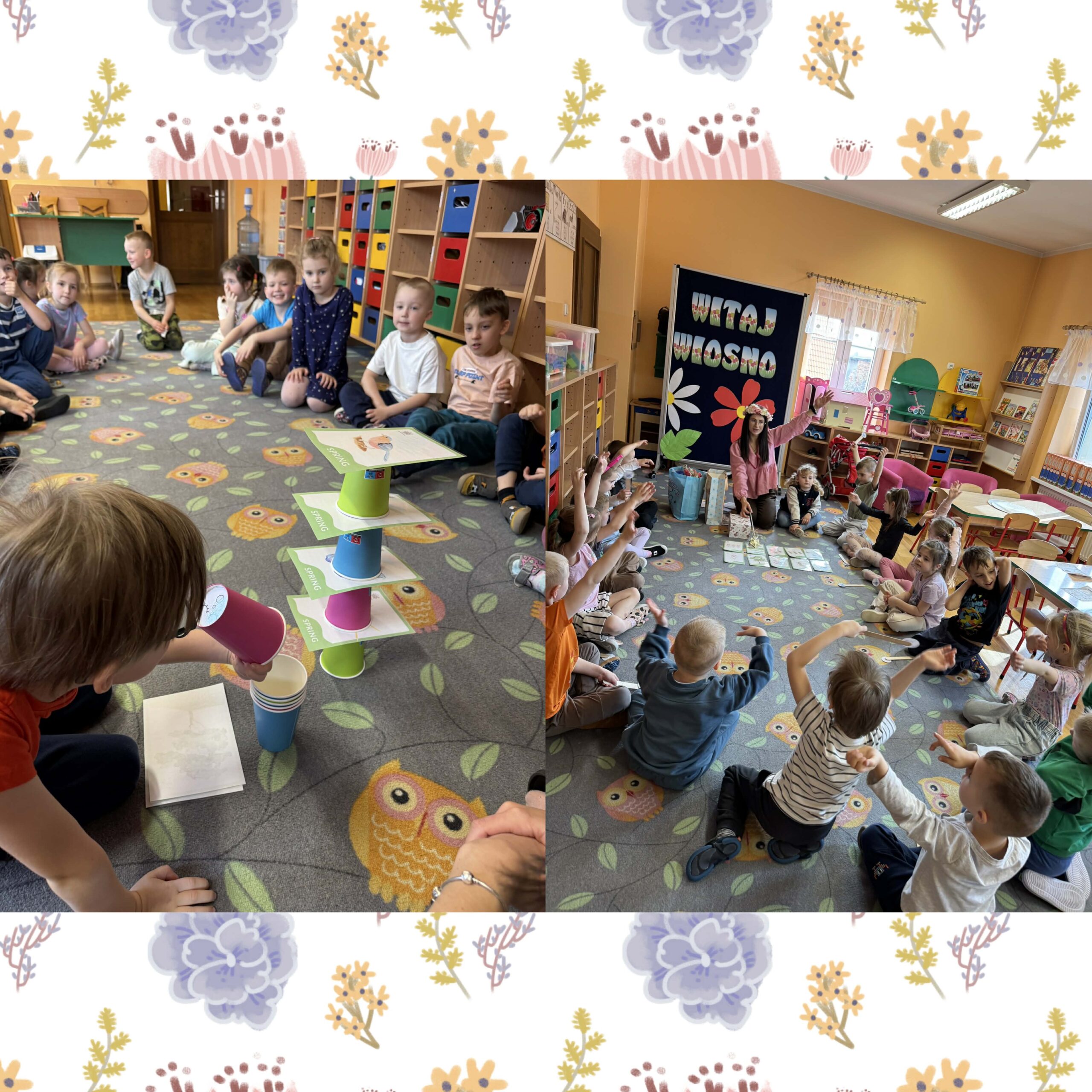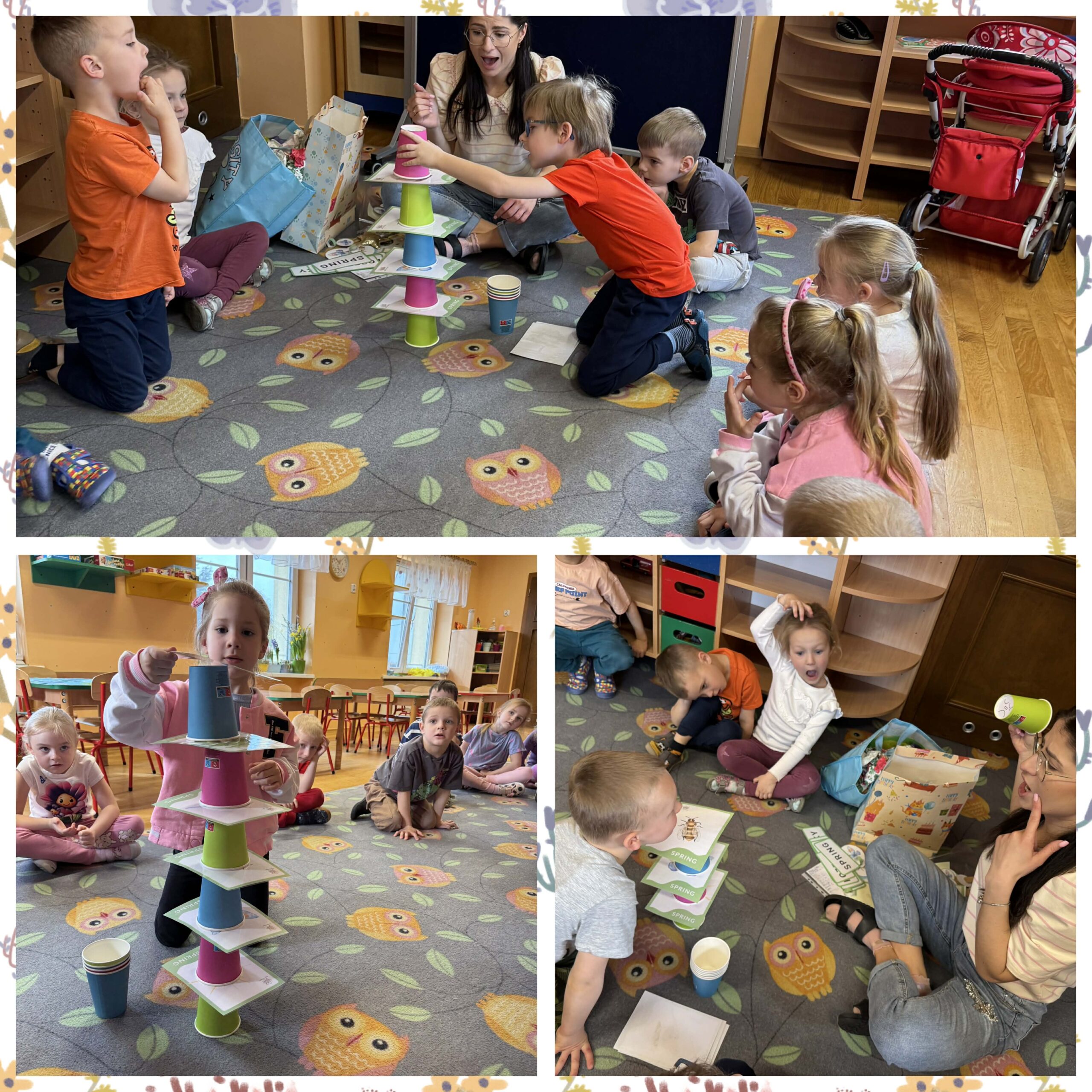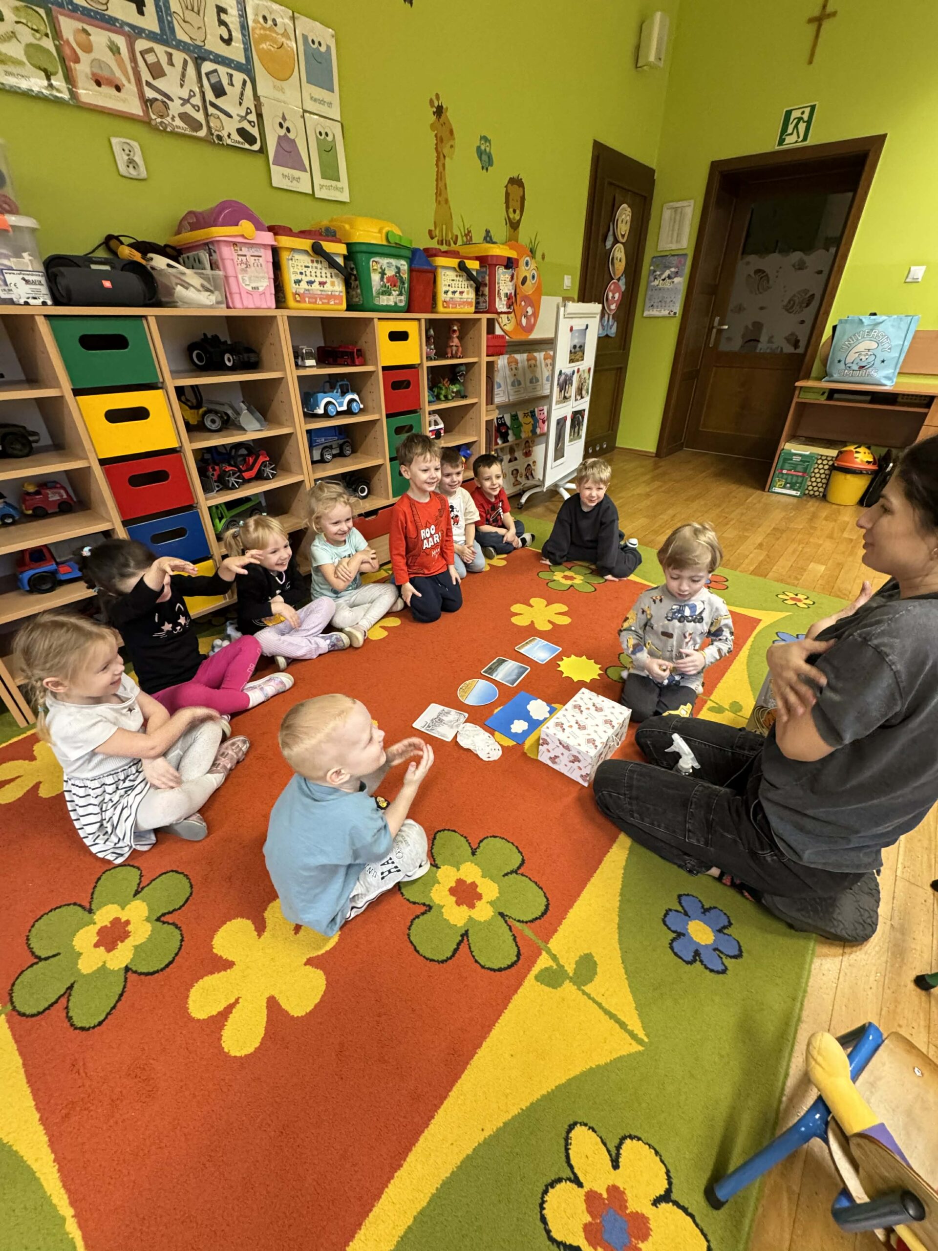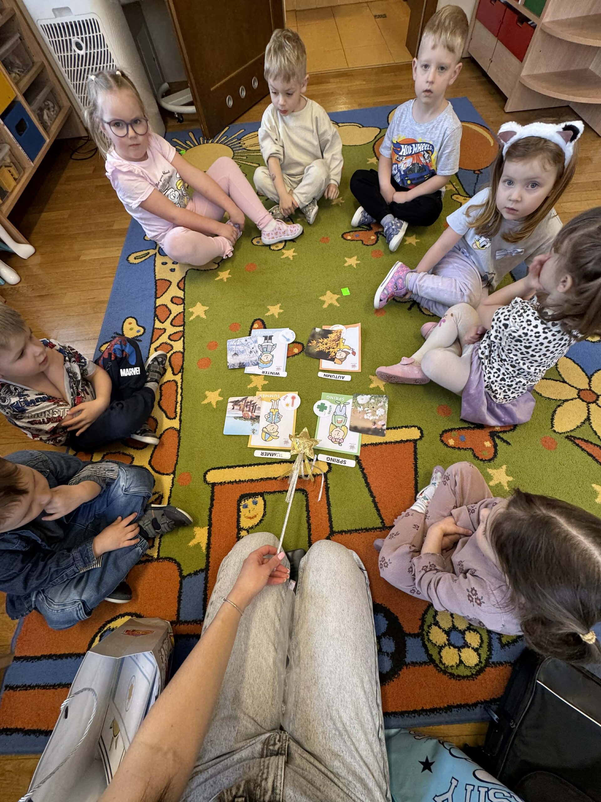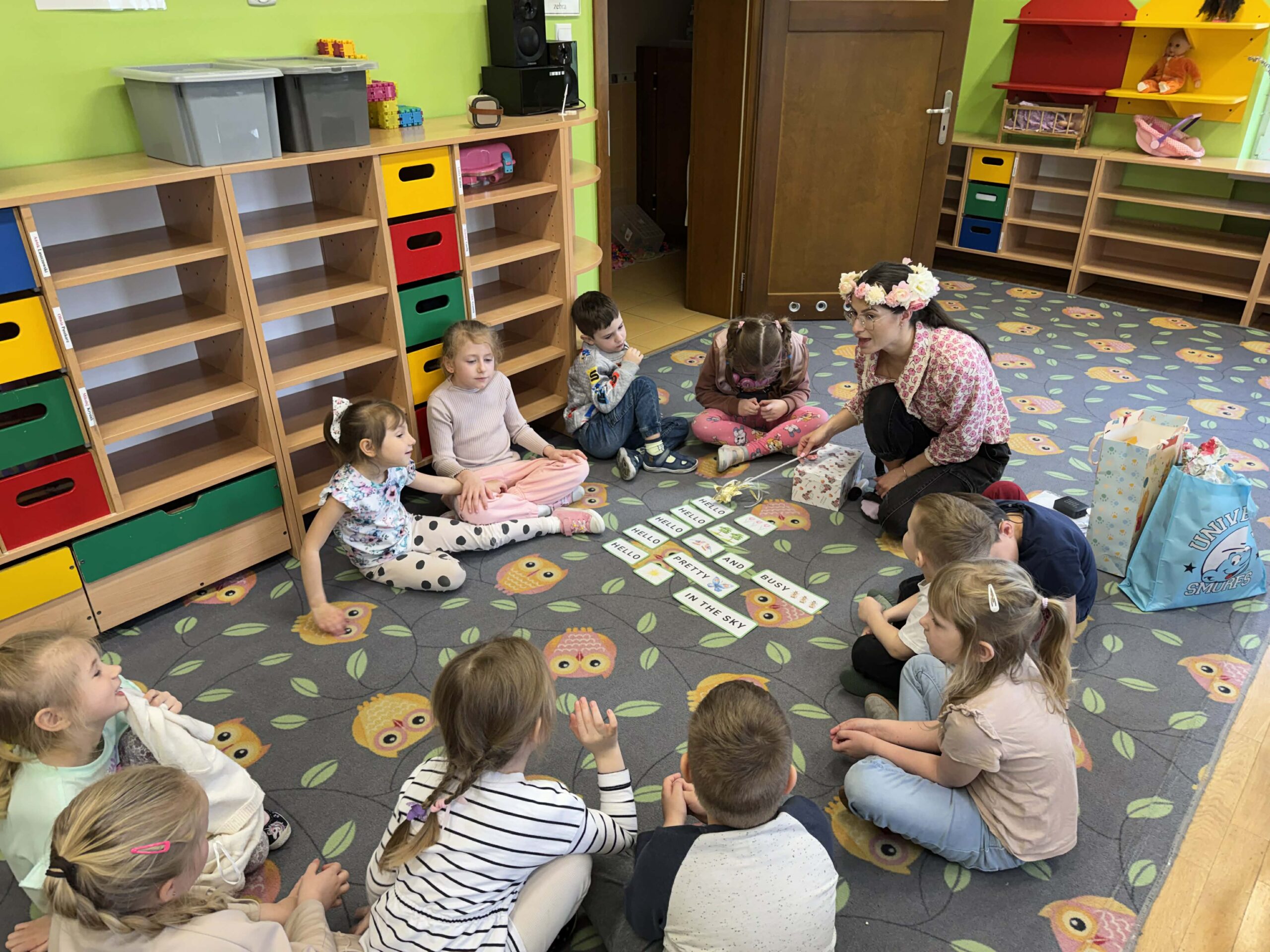 W okresie od grudnia do kwietnia w naszym przedszkolu odbywały się różnorodne zajęcia z języka angielskiego, dostosowane do wieku i możliwości dzieci z poszczególnych grup. Zajęcia miały na celu przede wszystkim naukę poprzez zabawę – łączyły elementy edukacyjne z radością odkrywania i aktywnym uczestnictwem dzieci. W trakcie spotkań wykorzystywaliśmy różnorodne formy pracy, w tym elementy sensoryczne, które uatrakcyjniały zajęcia i angażowały dzieci. Przedszkolaki miały okazję eksperymentować m.in. ze sztucznym śniegiem, kulkami hydrożelowymi, a także korzystać z latarek do prześwietlania różnych przedmiotów. Podczas zajęć nie zabrakło muzyki – dzieci chętnie uczyły się języka poprzez liczne piosenki oraz rymowanki tematyczne. Każde spotkanie było okazją do nauki, wspólnej zabawy oraz budowania pozytywnych relacji w grupie. Zajęcia z języka angielskiego odbywały się również na świeżym powietrzu. Wykorzystując pierwsze promienie słoneczne, przeprowadziliśmy zajęcia w tematyce pogody w naszym pięknym parku, co było dla dzieci dodatkową atrakcją i okazją do nauki w naturalnym otoczeniu.