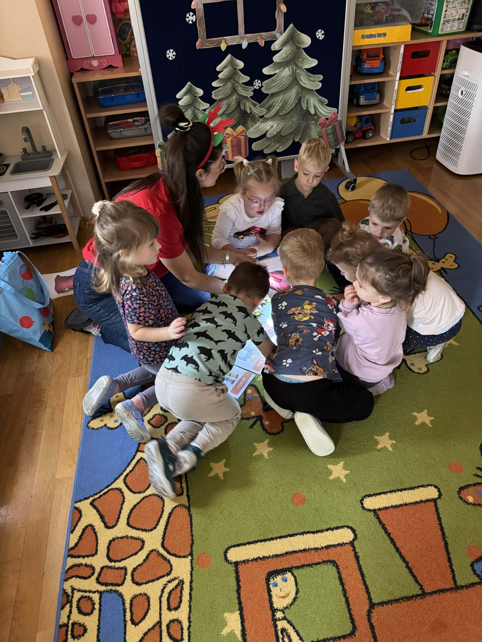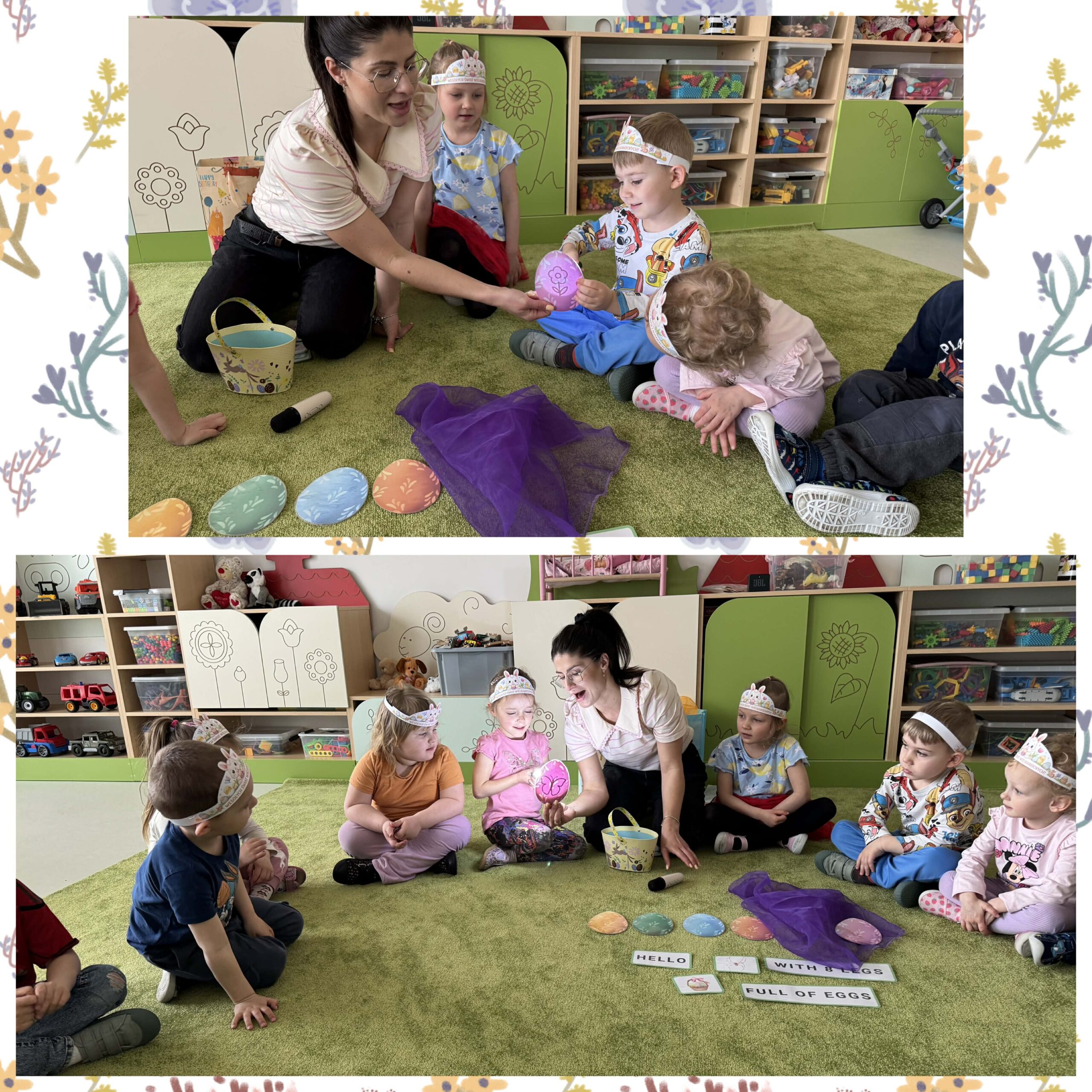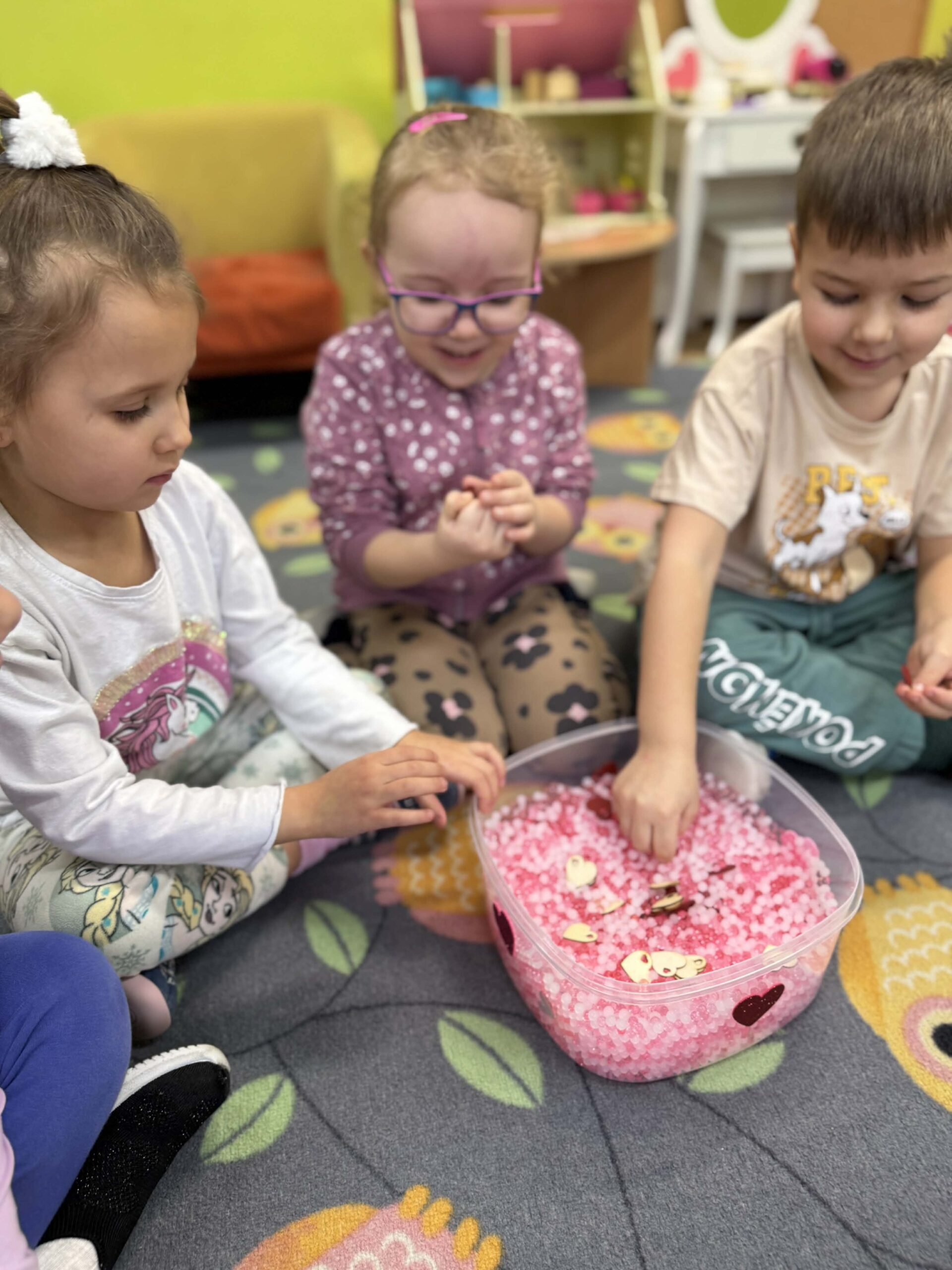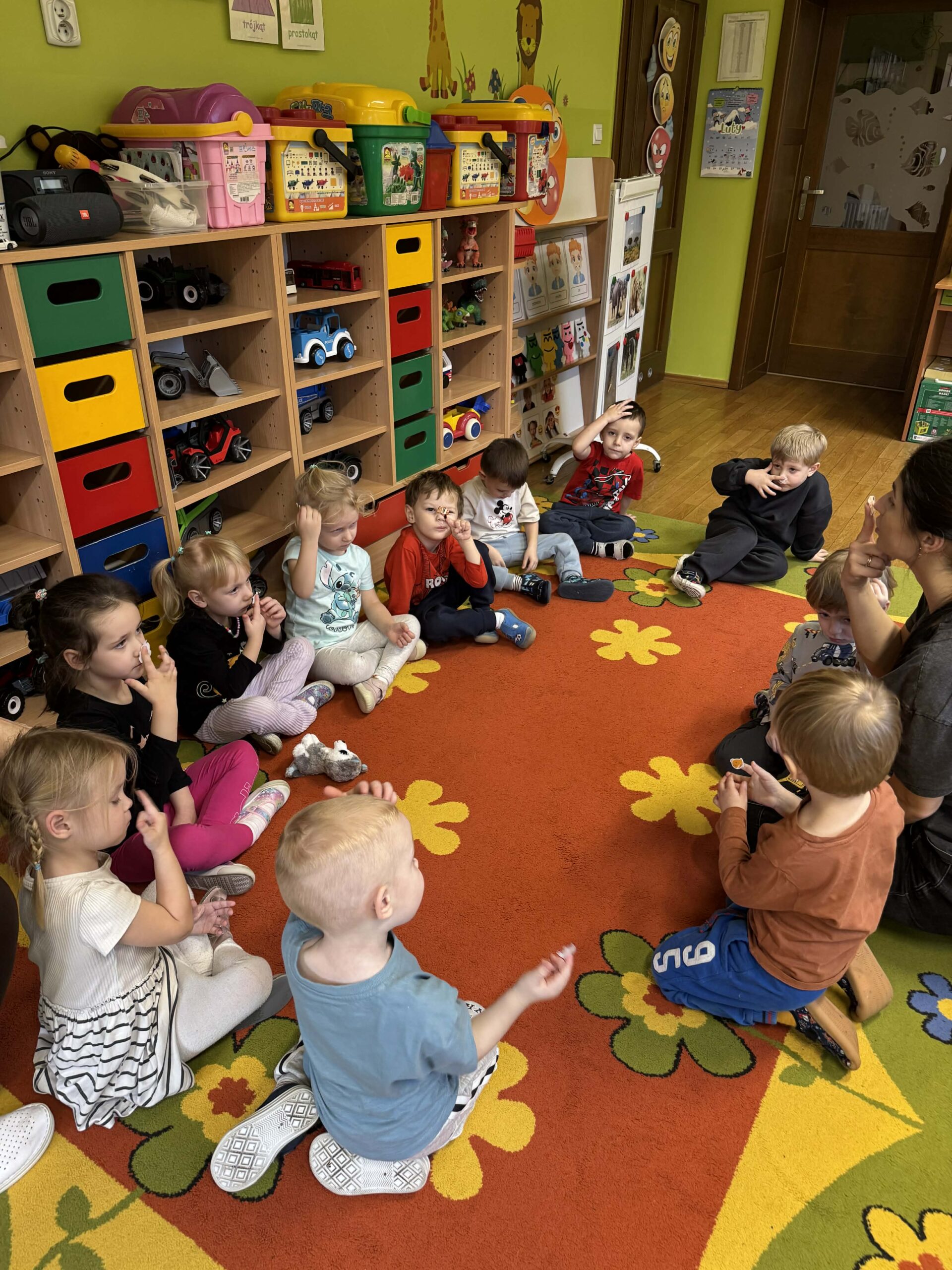 W okresie od grudnia do kwietnia w naszym przedszkolu odbywały się różnorodne zajęcia z języka angielskiego, dostosowane do wieku i możliwości dzieci z poszczególnych grup. Zajęcia miały na celu przede wszystkim naukę poprzez zabawę – łączyły elementy edukacyjne z radością odkrywania i aktywnym uczestnictwem dzieci. W trakcie spotkań wykorzystywaliśmy różnorodne formy pracy, w tym elementy sensoryczne, które uatrakcyjniały zajęcia i angażowały dzieci. Przedszkolaki miały okazję eksperymentować m.in. ze sztucznym śniegiem, kulkami hydrożelowymi, a także korzystać z latarek do prześwietlania różnych przedmiotów. Podczas zajęć nie zabrakło muzyki – dzieci chętnie uczyły się języka poprzez liczne piosenki oraz rymowanki tematyczne. Każde spotkanie było okazją do nauki, wspólnej zabawy oraz budowania pozytywnych relacji w grupie. Zajęcia z języka angielskiego odbywały się również na świeżym powietrzu. Wykorzystując pierwsze promienie słoneczne, przeprowadziliśmy zajęcia w tematyce pogody w naszym pięknym parku, co było dla dzieci dodatkową atrakcją i okazją do nauki w naturalnym otoczeniu.