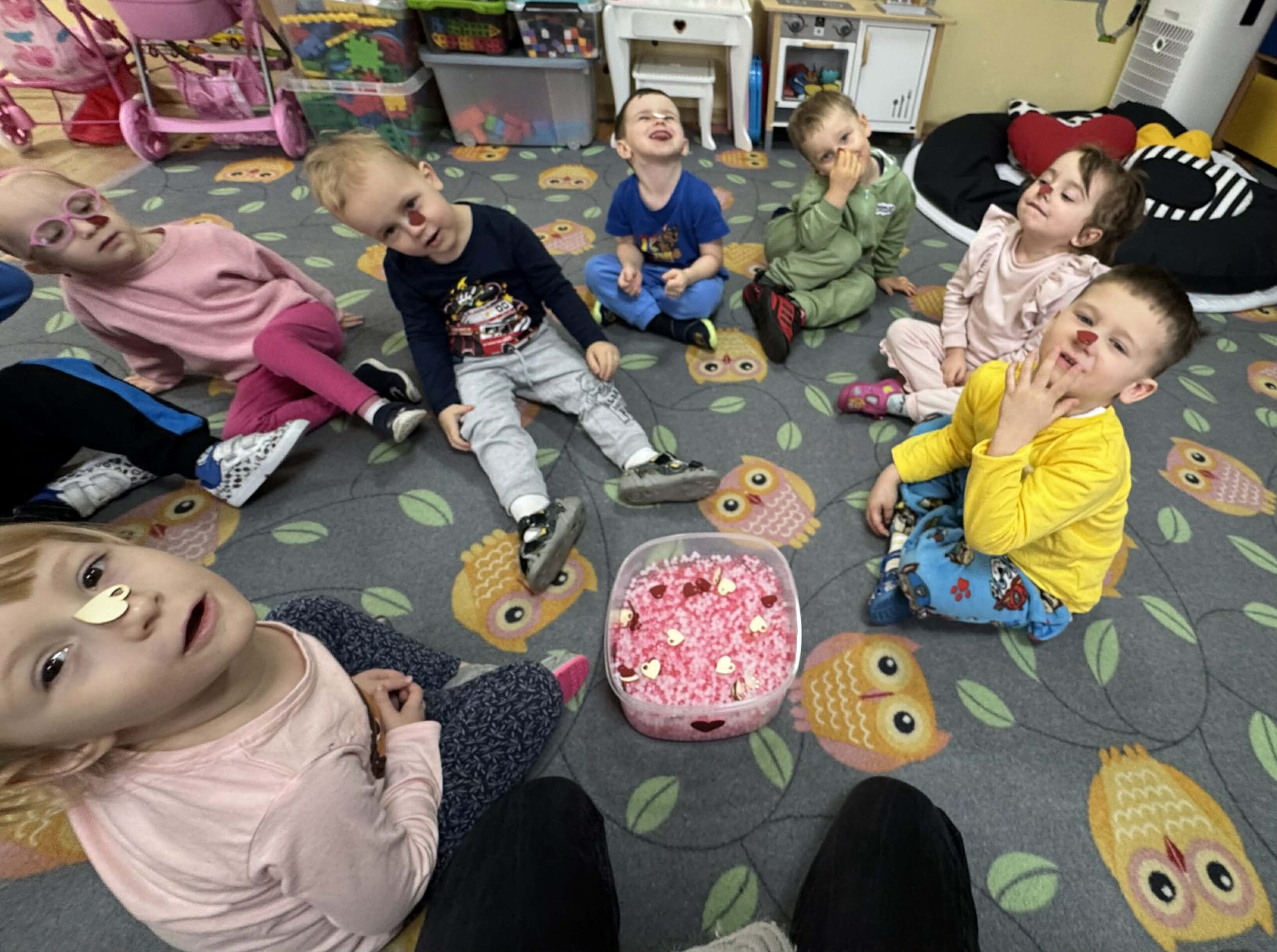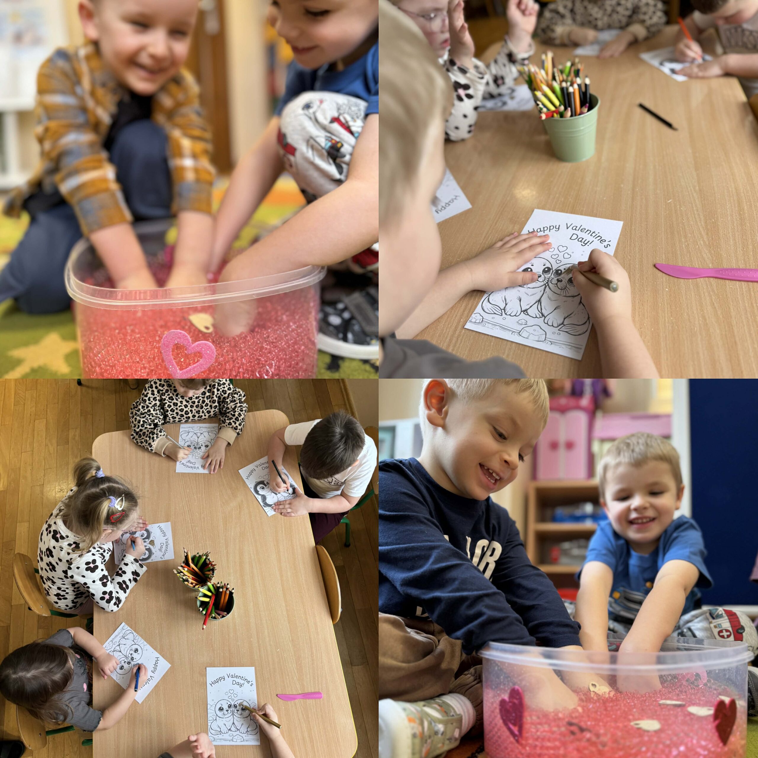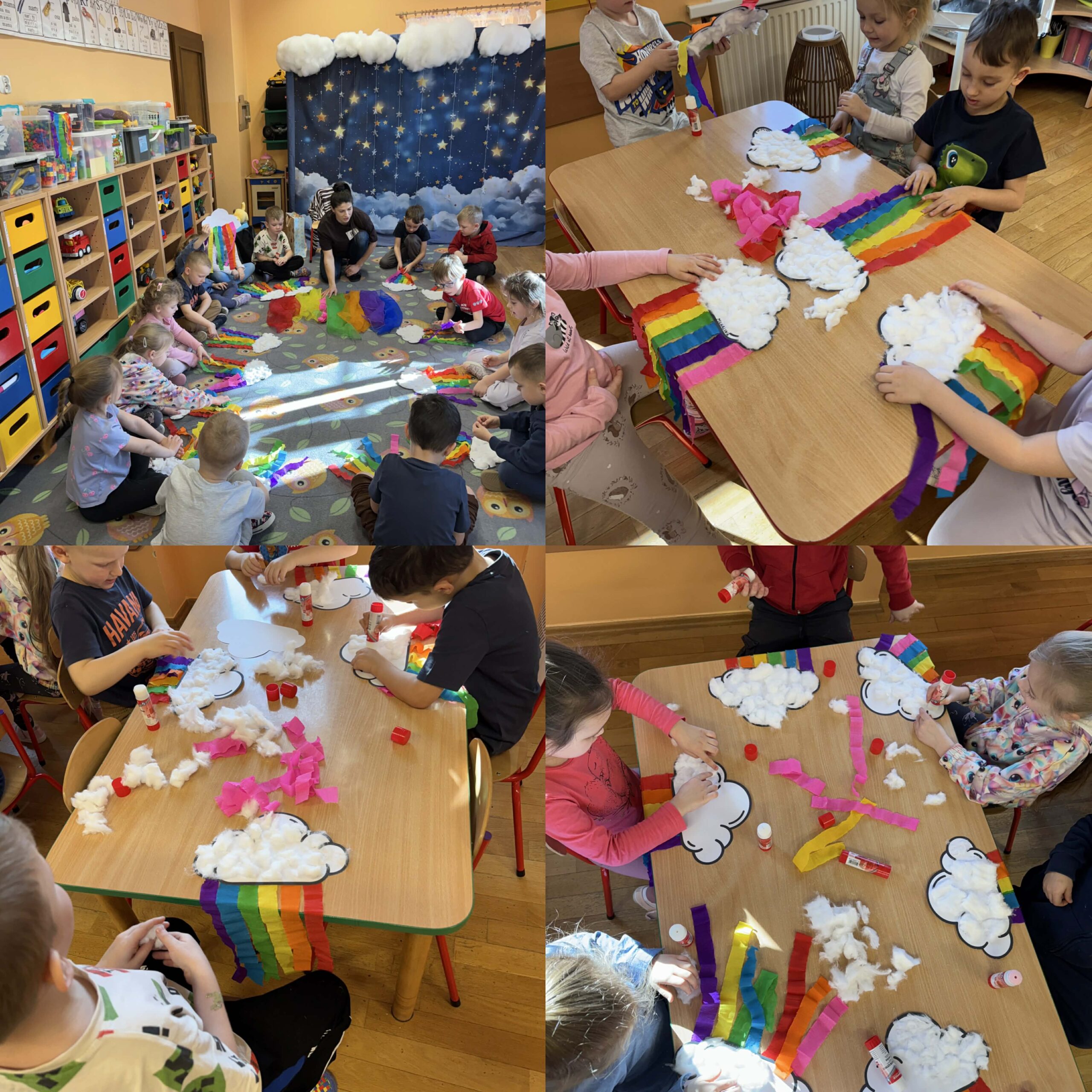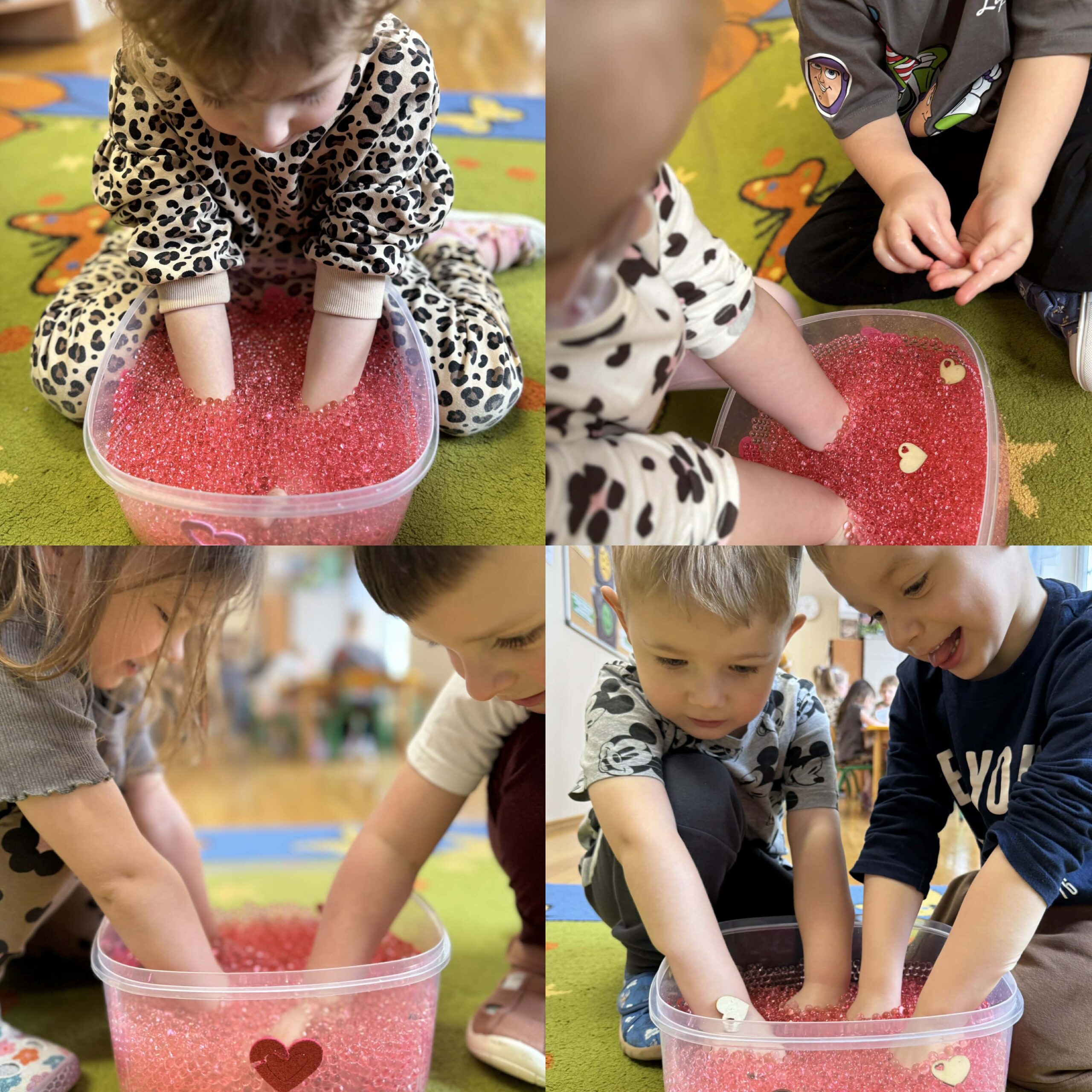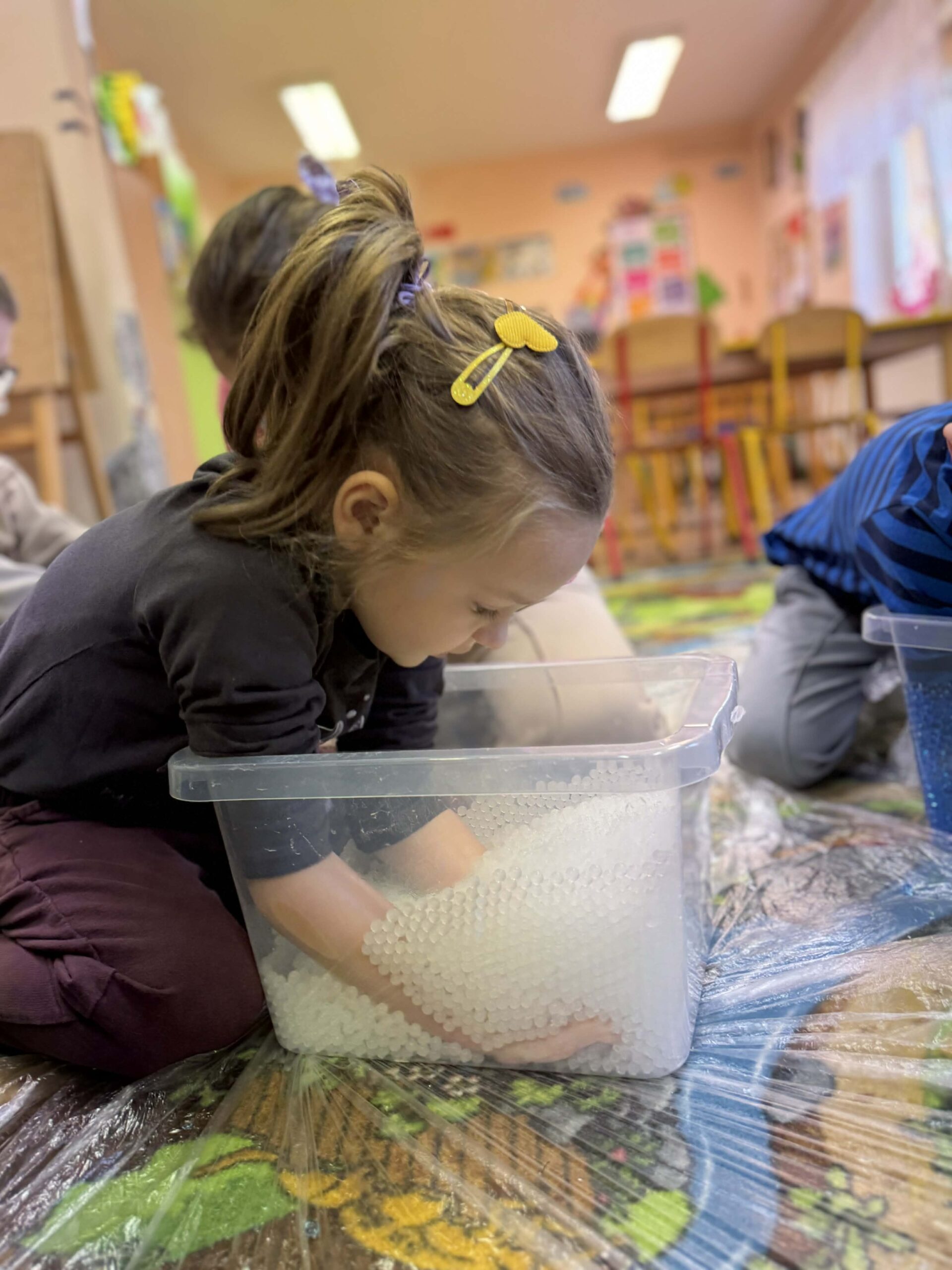 W okresie od grudnia do kwietnia w naszym przedszkolu odbywały się różnorodne zajęcia z języka angielskiego, dostosowane do wieku i możliwości dzieci z poszczególnych grup. Zajęcia miały na celu przede wszystkim naukę poprzez zabawę – łączyły elementy edukacyjne z radością odkrywania i aktywnym uczestnictwem dzieci. W trakcie spotkań wykorzystywaliśmy różnorodne formy pracy, w tym elementy sensoryczne, które uatrakcyjniały zajęcia i angażowały dzieci. Przedszkolaki miały okazję eksperymentować m.in. ze sztucznym śniegiem, kulkami hydrożelowymi, a także korzystać z latarek do prześwietlania różnych przedmiotów. Podczas zajęć nie zabrakło muzyki – dzieci chętnie uczyły się języka poprzez liczne piosenki oraz rymowanki tematyczne. Każde spotkanie było okazją do nauki, wspólnej zabawy oraz budowania pozytywnych relacji w grupie. Zajęcia z języka angielskiego odbywały się również na świeżym powietrzu. Wykorzystując pierwsze promienie słoneczne, przeprowadziliśmy zajęcia w tematyce pogody w naszym pięknym parku, co było dla dzieci dodatkową atrakcją i okazją do nauki w naturalnym otoczeniu.