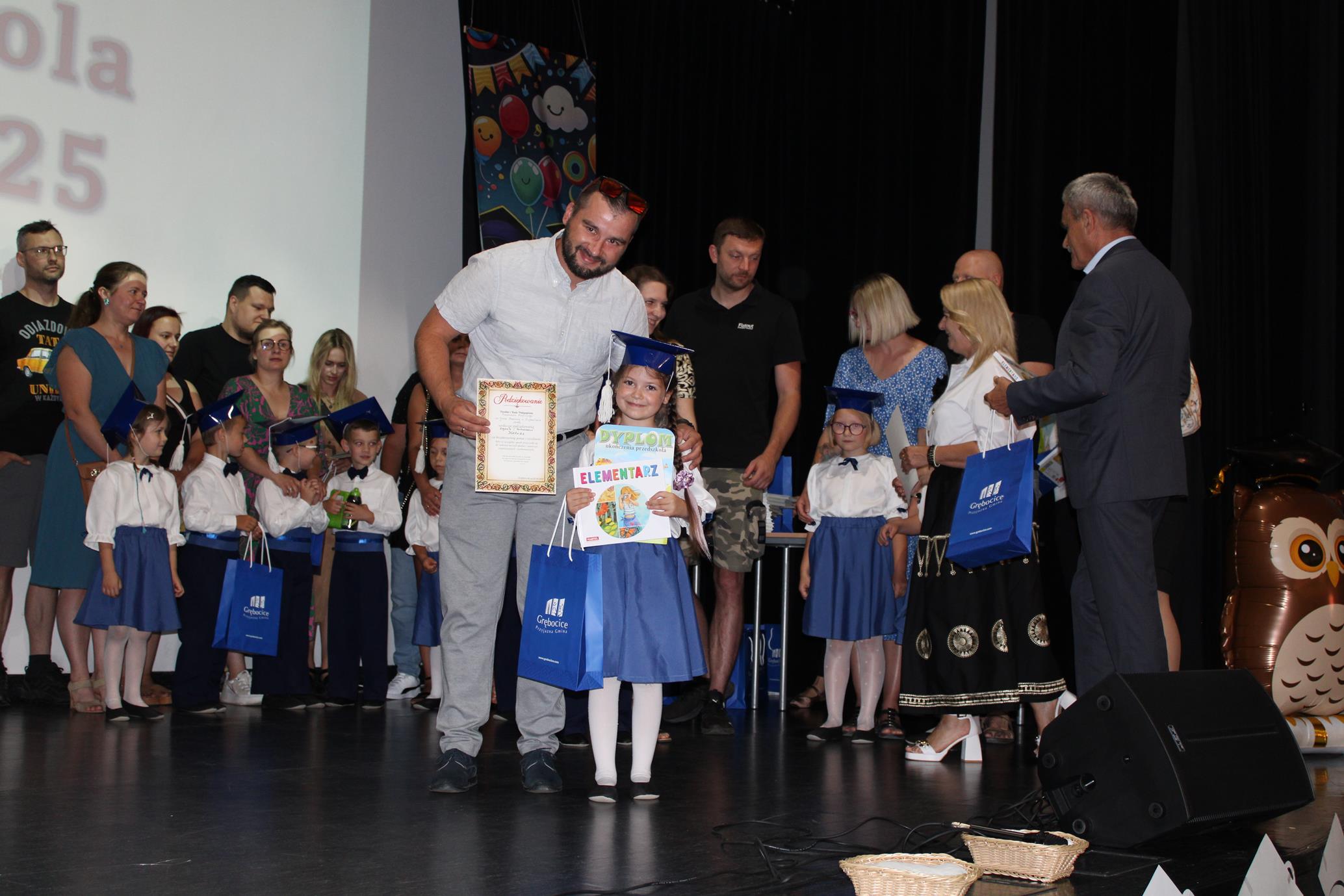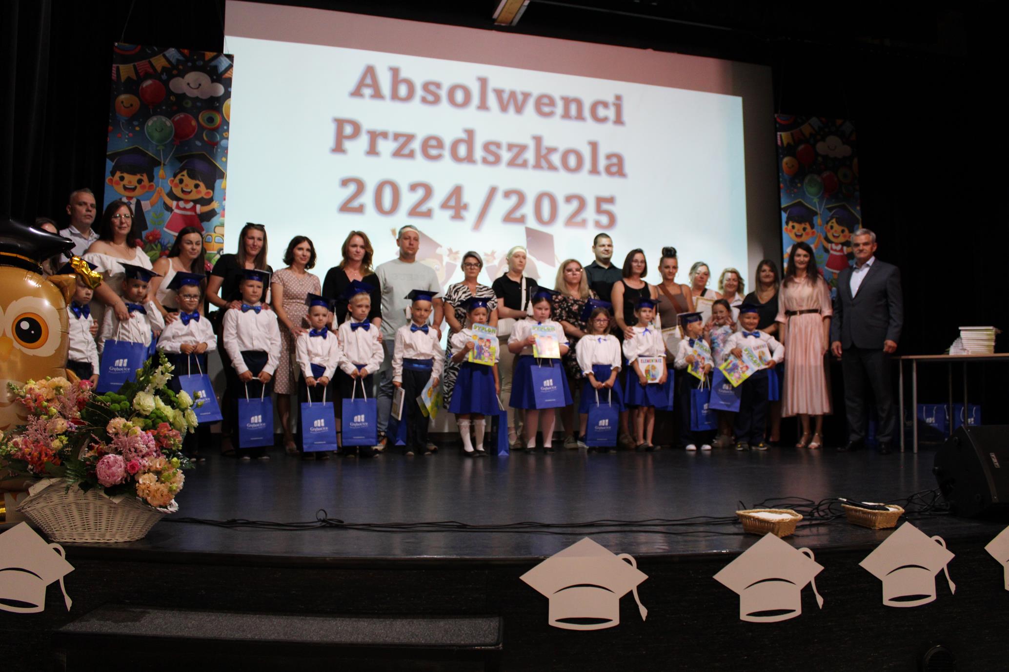 Czas edukacji przedszkolnej starszaków dobiegł końca i dnia 26 czerwca odbyło się uroczyste zakończenie roku szkolnego absolwentów przedszkola 2024/2025. Dzieci zaprezentowały krótki program artystyczny, otrzymały dyplomy ukończenia przedszkola, książki oraz upominki, a ich rodzice – podziękowania. Życzenia absolwentom złożył Wójt Gminy Grębocice pan Roman Jabłoński oraz Przewodniczący Rady Gminy pan Marek Pakiet. Rada Rodziców z Dyrektor Przedszkola panią Elżbietą Kaletą podziękowała za współpracę i wsparcie zaproszonym gościom i nauczycielom, życząc dalszych sukcesów w pracy zawodowej. Wszystkim przedszkolakom życzyła dobrego startu w szkole oraz słonecznych i bezpiecznych wakacji.