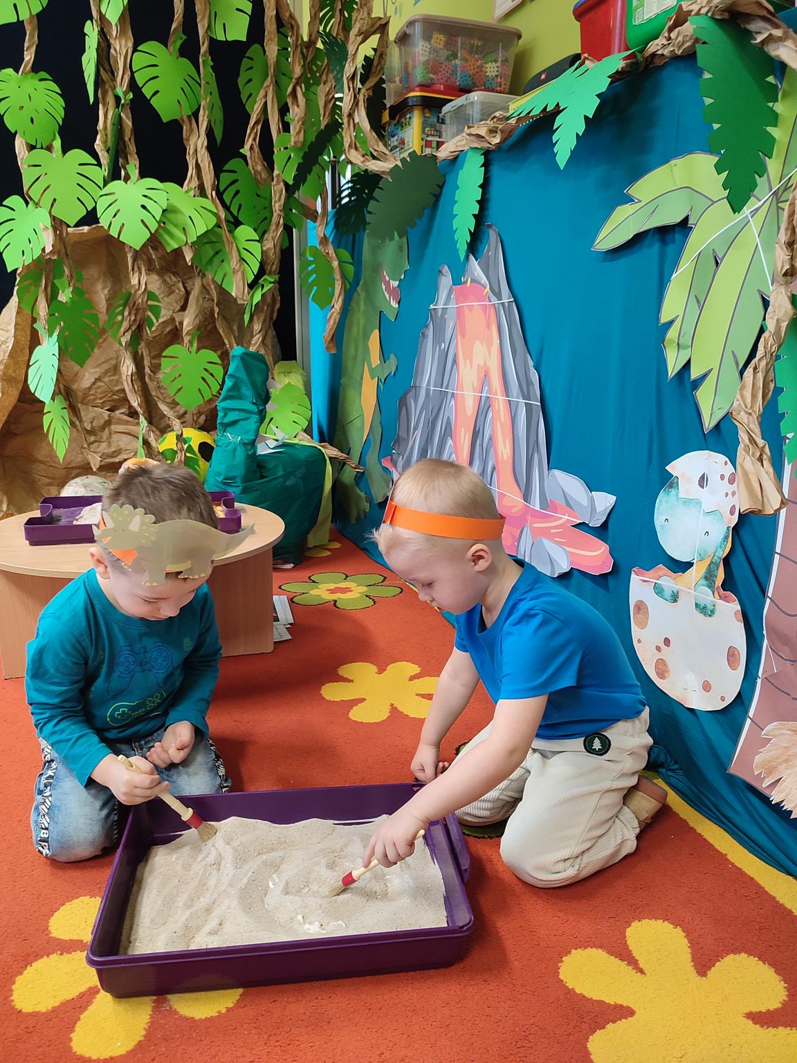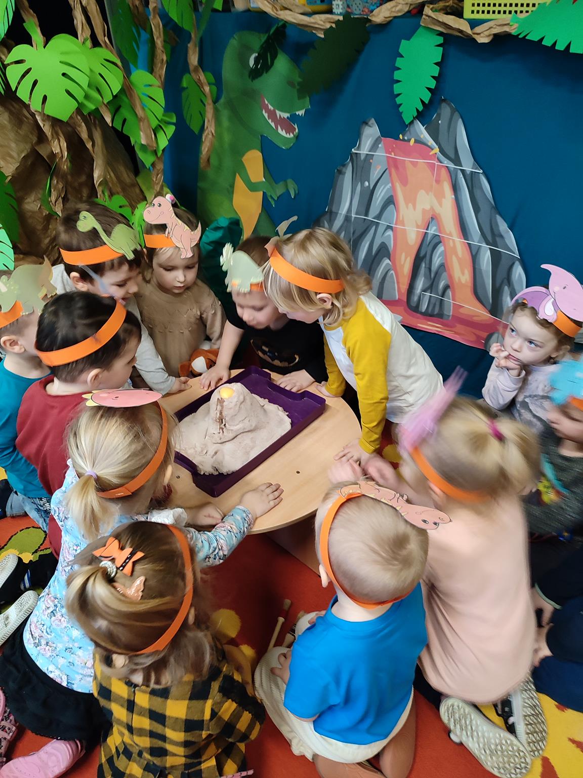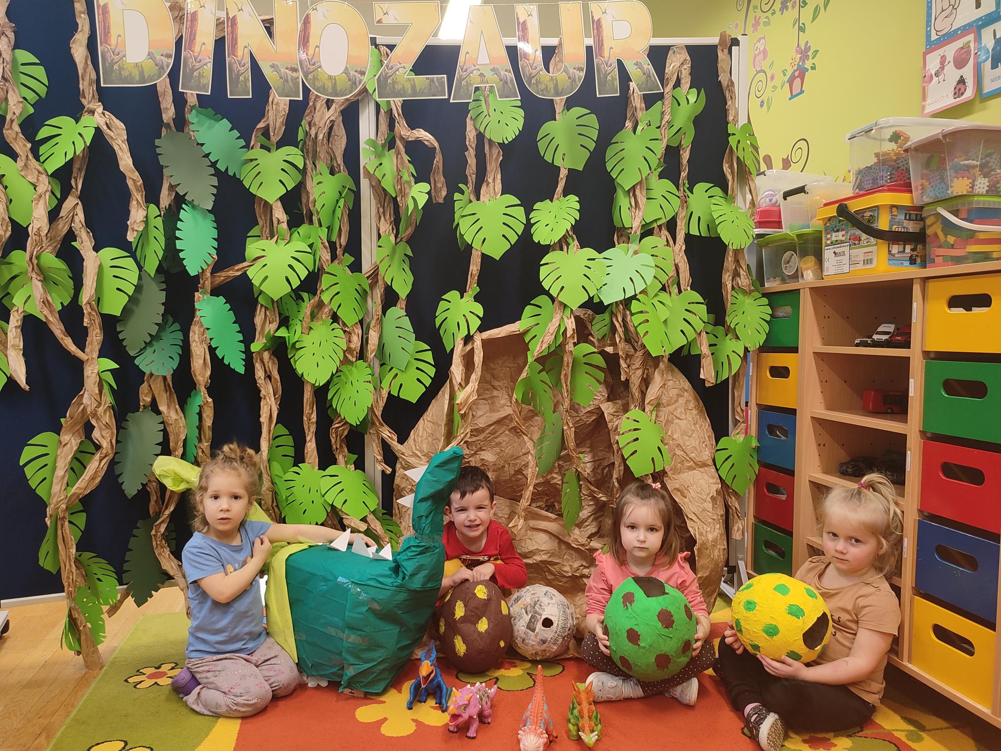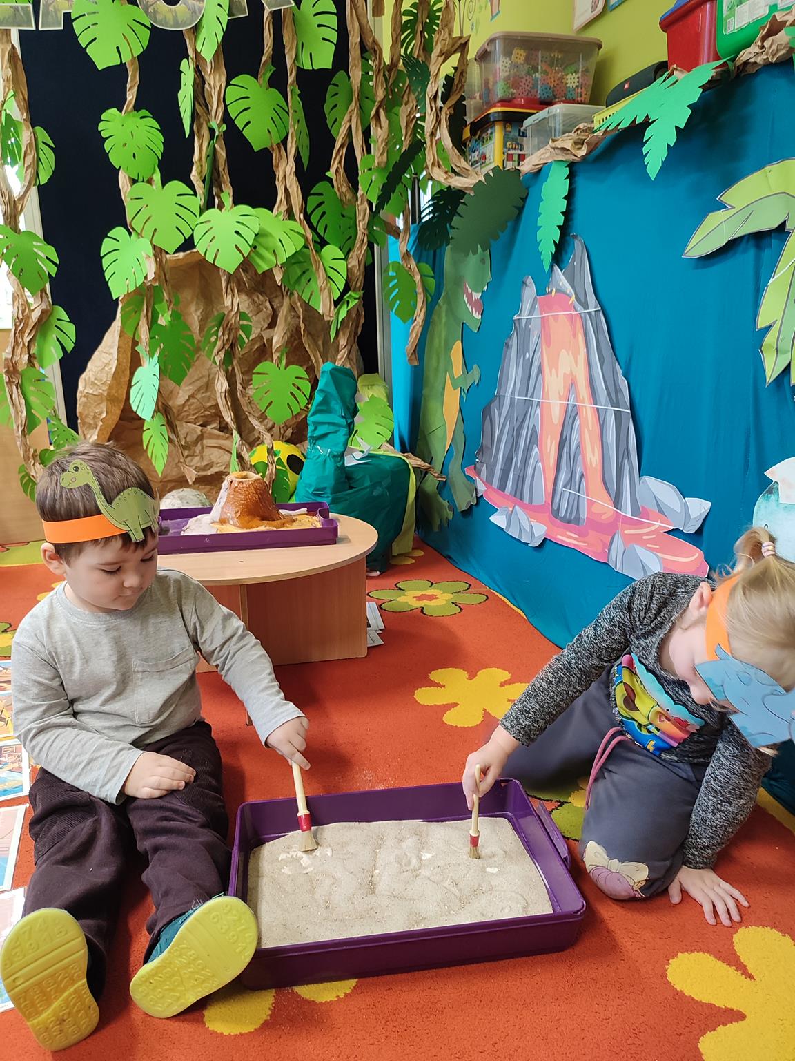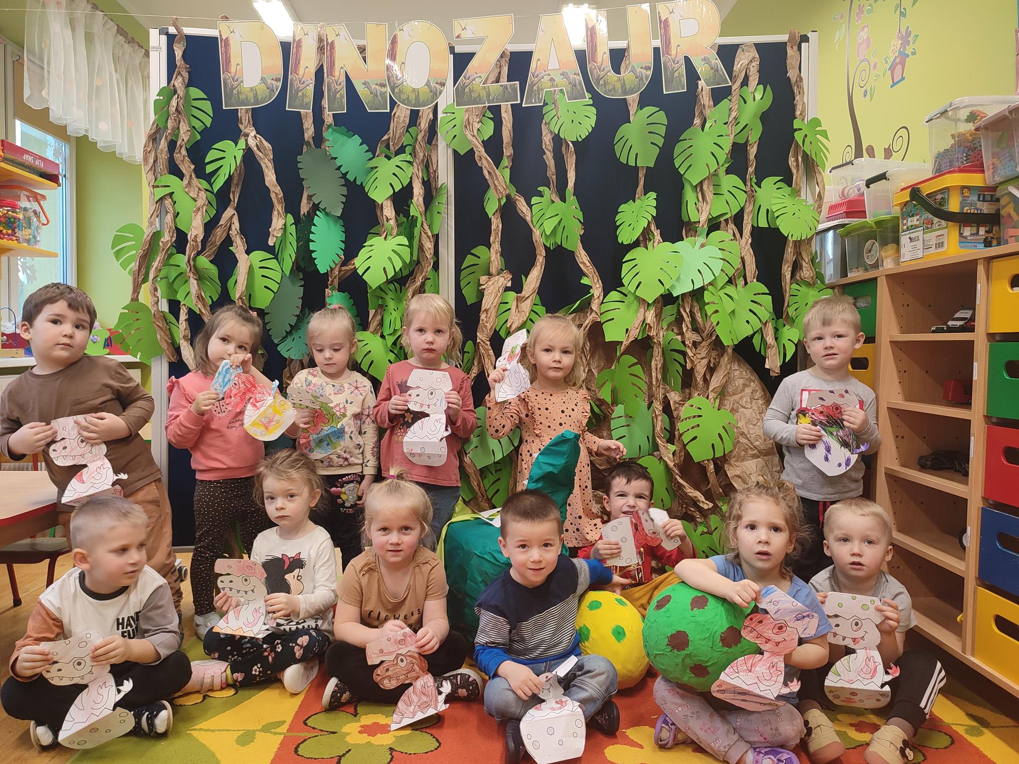 W tym tygodniu „Żuczki” rozpoczęły niezwykłą wędrówkę, poznając prehistoryczne zwierzęta. Sala „Żuczków” zmieniła się w niezwykły „jurajski park”. Przedszkolaki udały się w podróż do prehistorycznych czasów, a poprzez zabawę i zadania poznały życie dinozaurów. Wysłuchały historii o tym, jak wyglądały dinozaury, czym się zajmowały oraz jak wyginęły- wykonując przy tym doświadczenie „Wulkan”. Wielką niespodzianką było wcielenie się w rolę paleontologa, dokonując niesamowitego odkrycia – odkopywania z piasku zaginionego szkieletu dinozaura. Przeniosły się w świat epoki lodowcowej, oglądając zamarznięte dinozaury. Był to szczególny tydzień pełen radosnych wrażeń.
