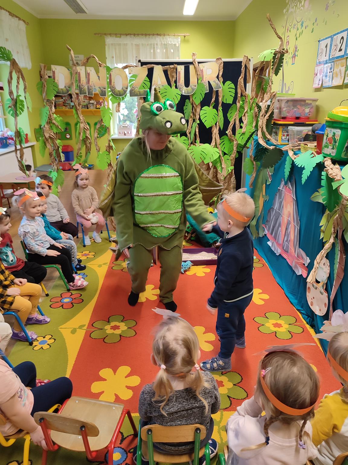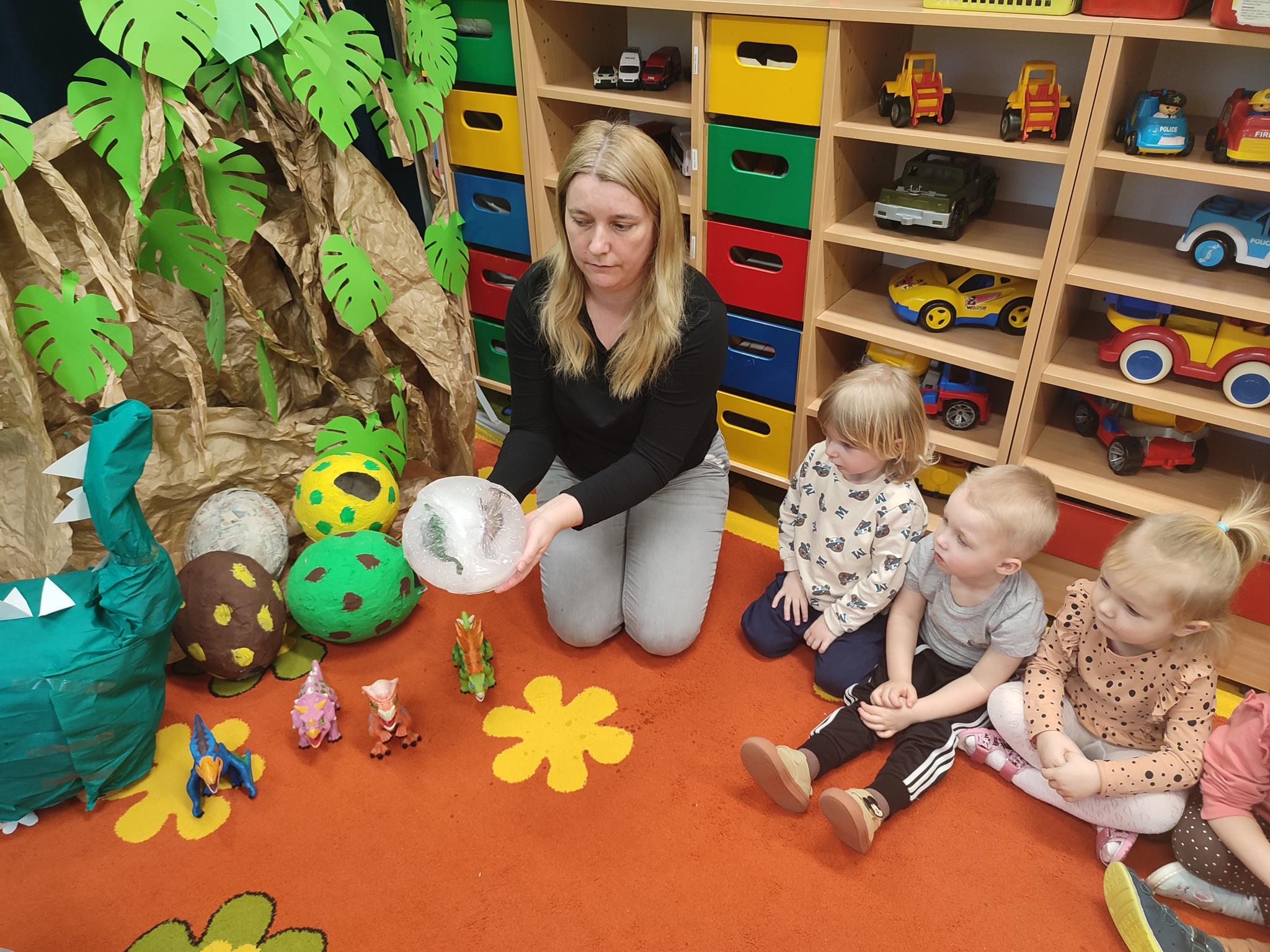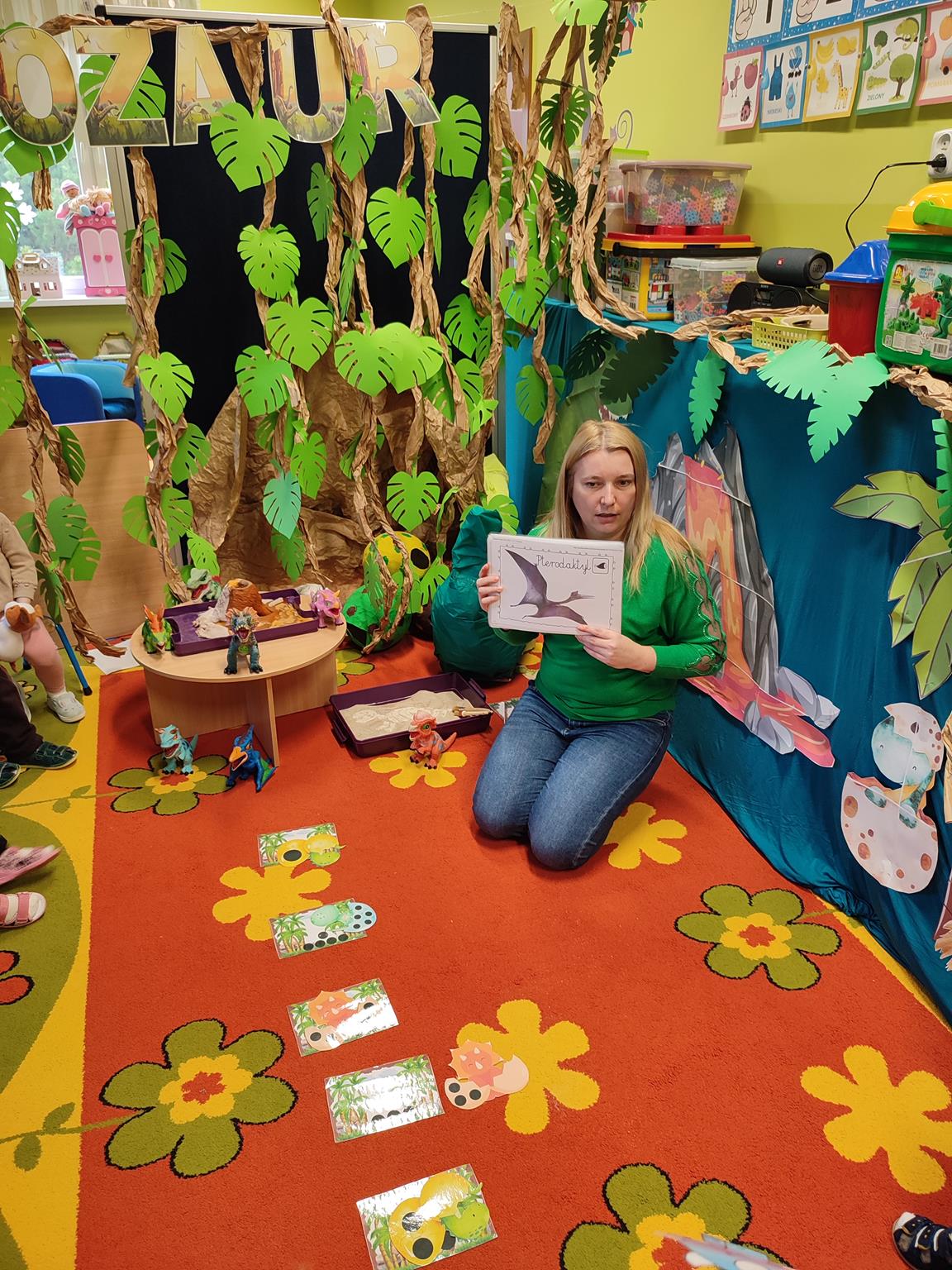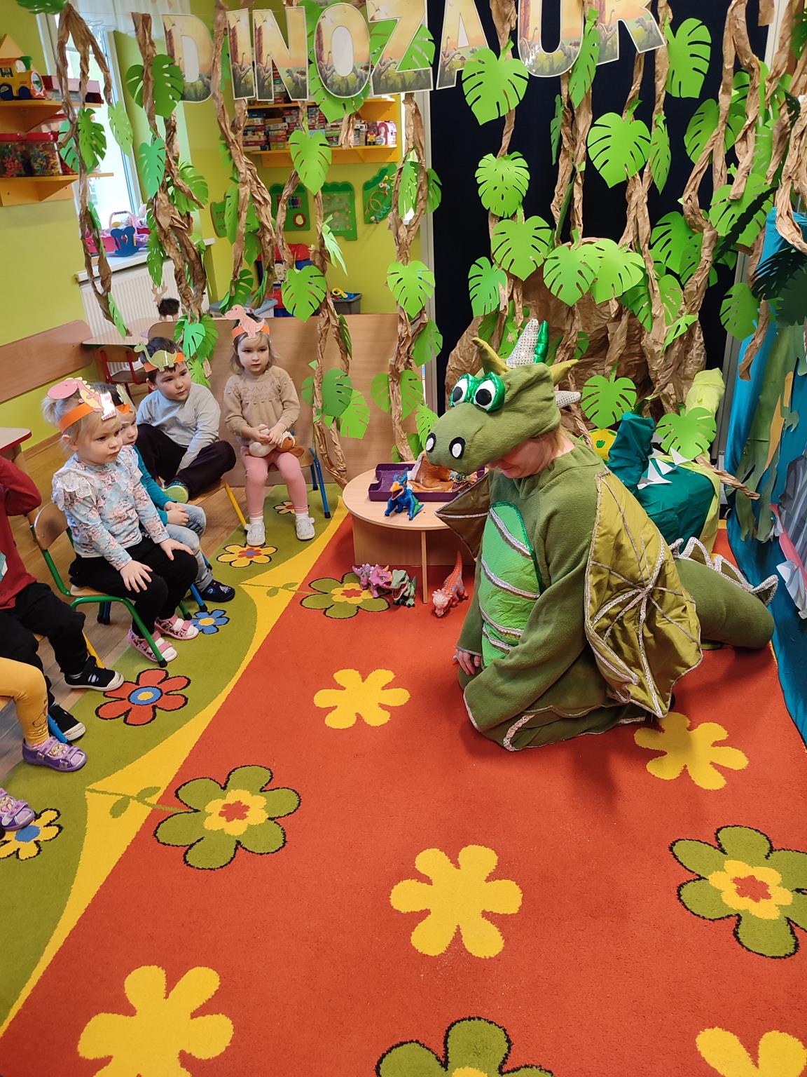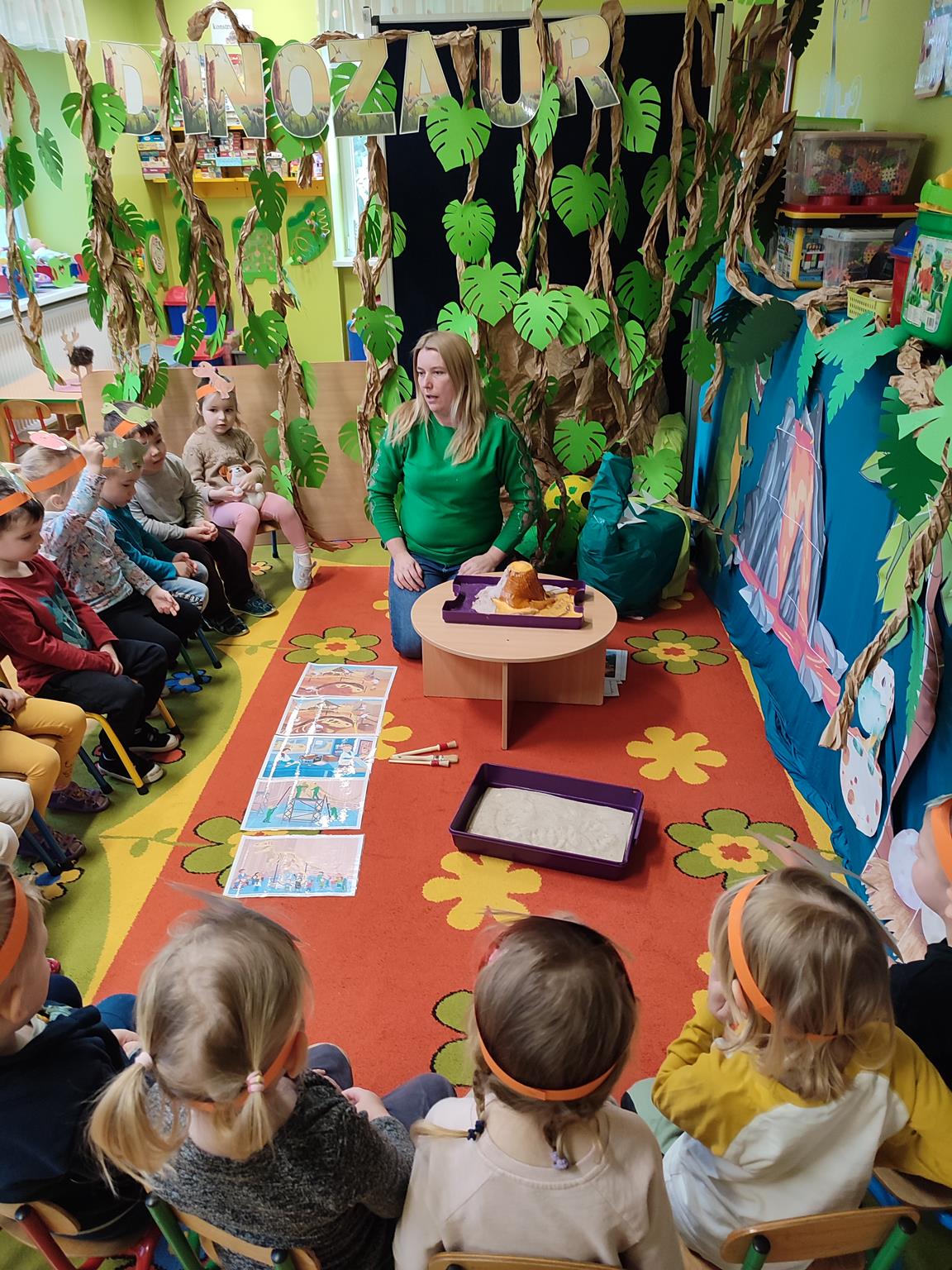 W tym tygodniu „Żuczki” rozpoczęły niezwykłą wędrówkę, poznając prehistoryczne zwierzęta. Sala „Żuczków” zmieniła się w niezwykły „jurajski park”. Przedszkolaki udały się w podróż do prehistorycznych czasów, a poprzez zabawę i zadania poznały życie dinozaurów. Wysłuchały historii o tym, jak wyglądały dinozaury, czym się zajmowały oraz jak wyginęły- wykonując przy tym doświadczenie „Wulkan”. Wielką niespodzianką było wcielenie się w rolę paleontologa, dokonując niesamowitego odkrycia – odkopywania z piasku zaginionego szkieletu dinozaura. Przeniosły się w świat epoki lodowcowej, oglądając zamarznięte dinozaury. Był to szczególny tydzień pełen radosnych wrażeń.