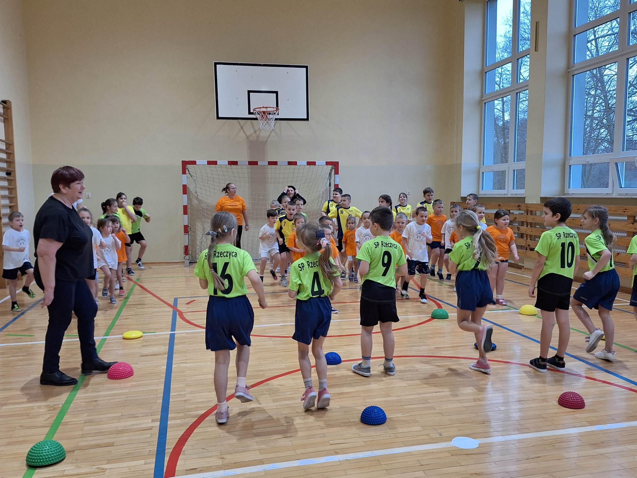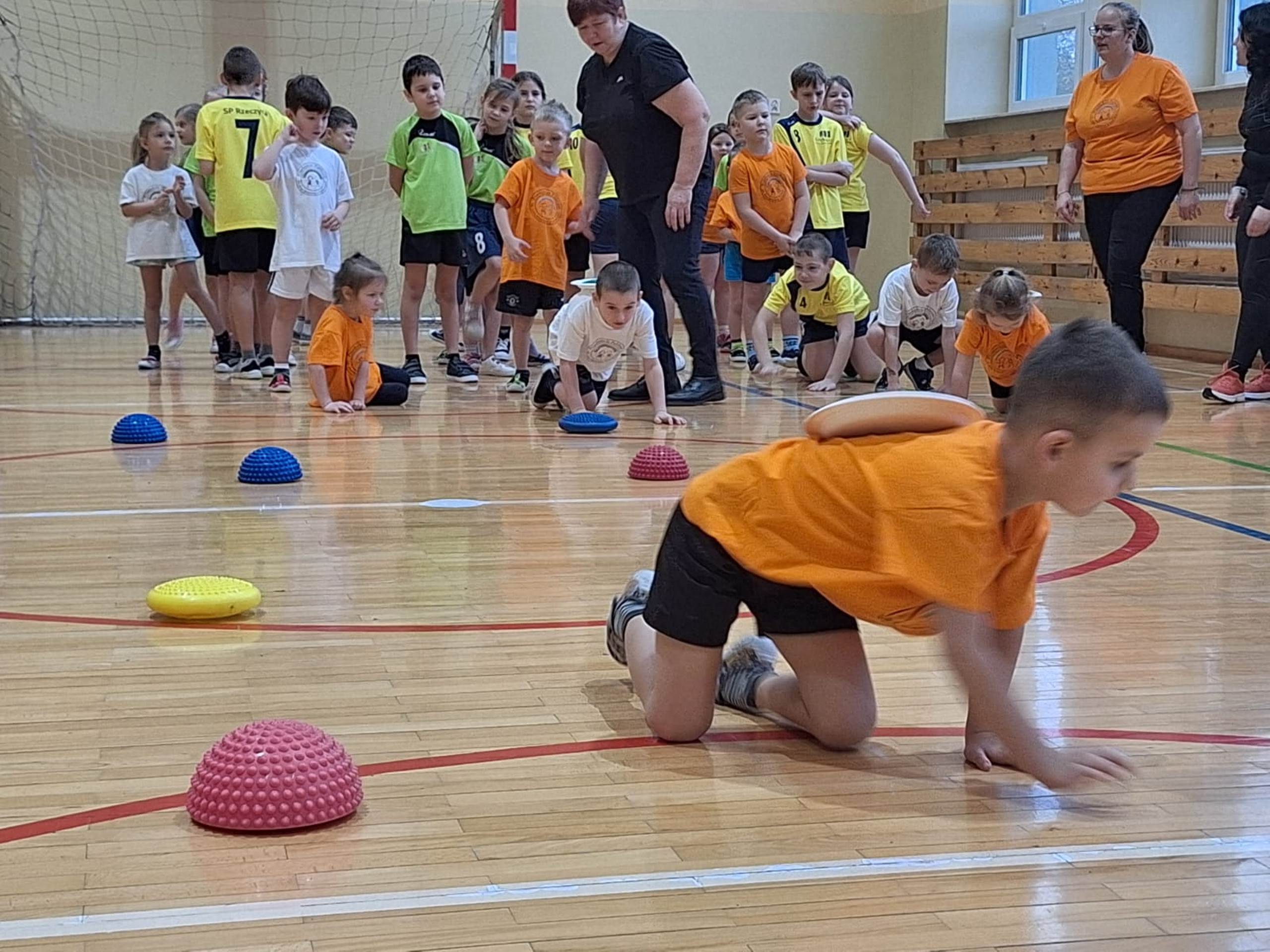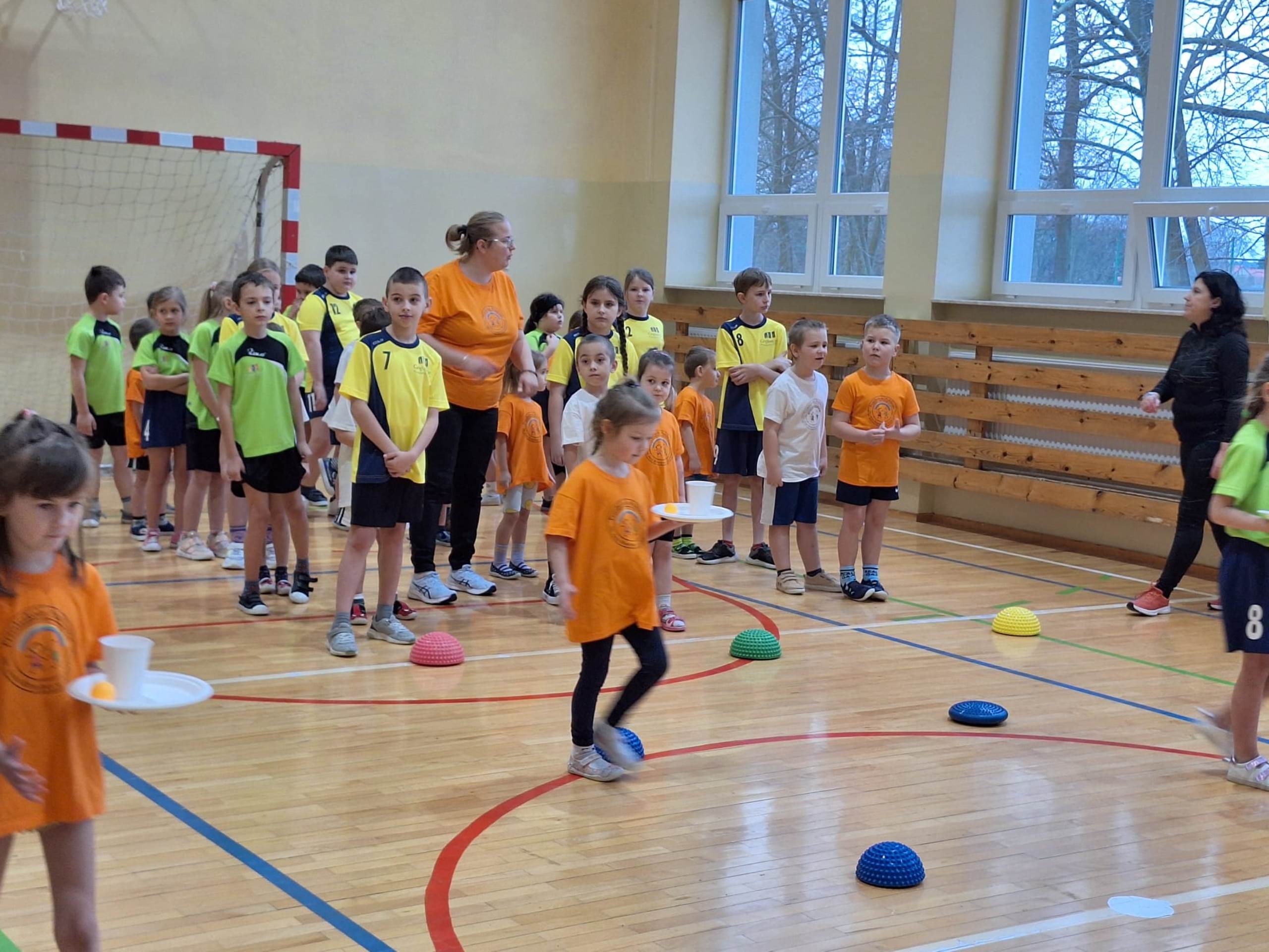 Dnia 13.02.2024r. dzieci z oddziałów Tulipanki i Stokrotki wybrały się do sali gimnastycznej w Szkole Podstawowej im. Kornela Makuszyńskiego w Rzeczycy na zajęcia z aktywności fizycznej. Zabawy sportowe rozpoczęły się od muzycznej gimnastyki. Przedszkolaki brały udział w różnorodnych konkurencjach. Zajęcia miały na celu propagowanie zdrowego stylu życia i rozwijanie sprawności ruchowej wśród dzieci. Koordynatorami zajęć była Zuzanna Bilska i Justyna Stankiewicz.
