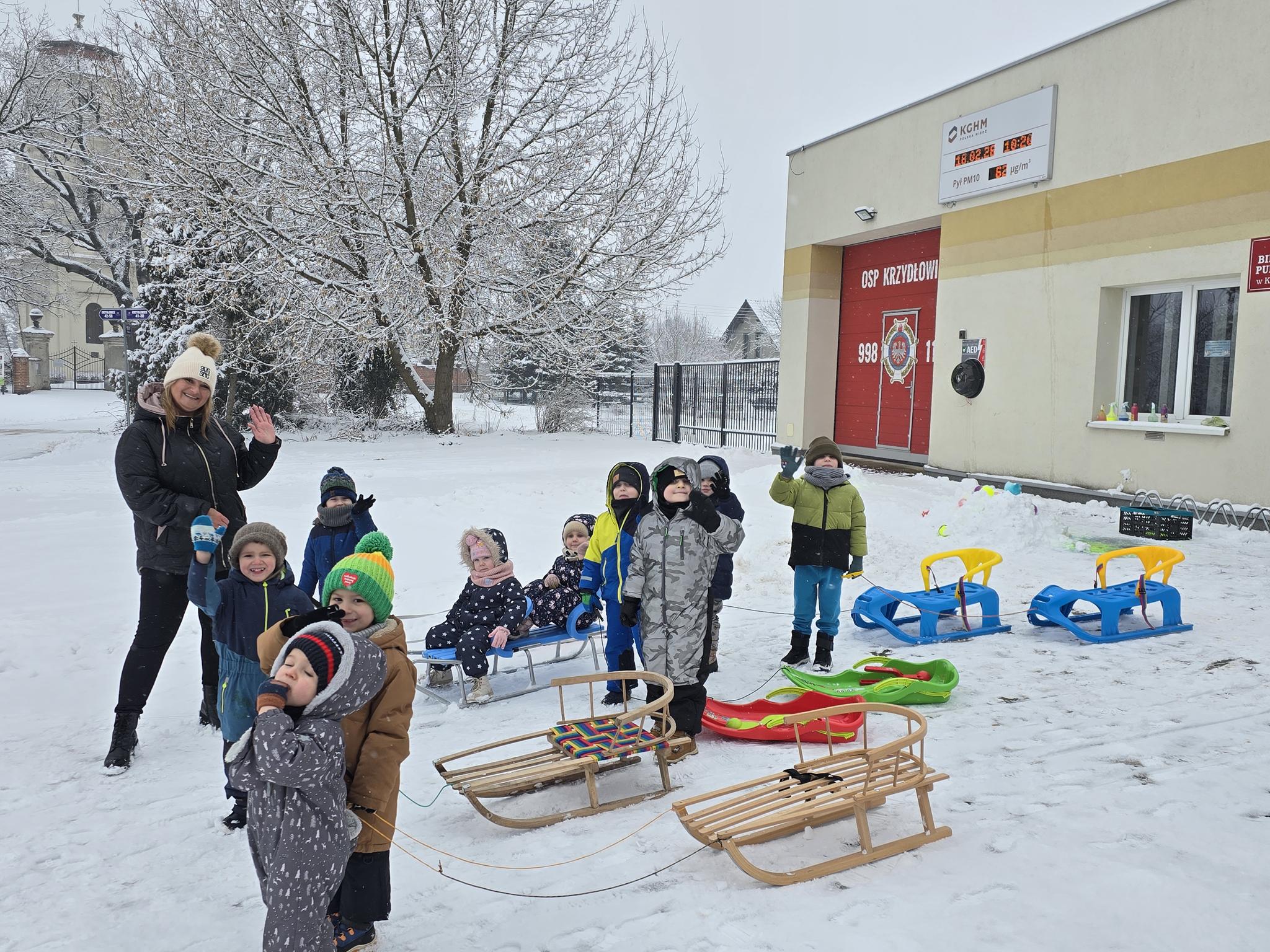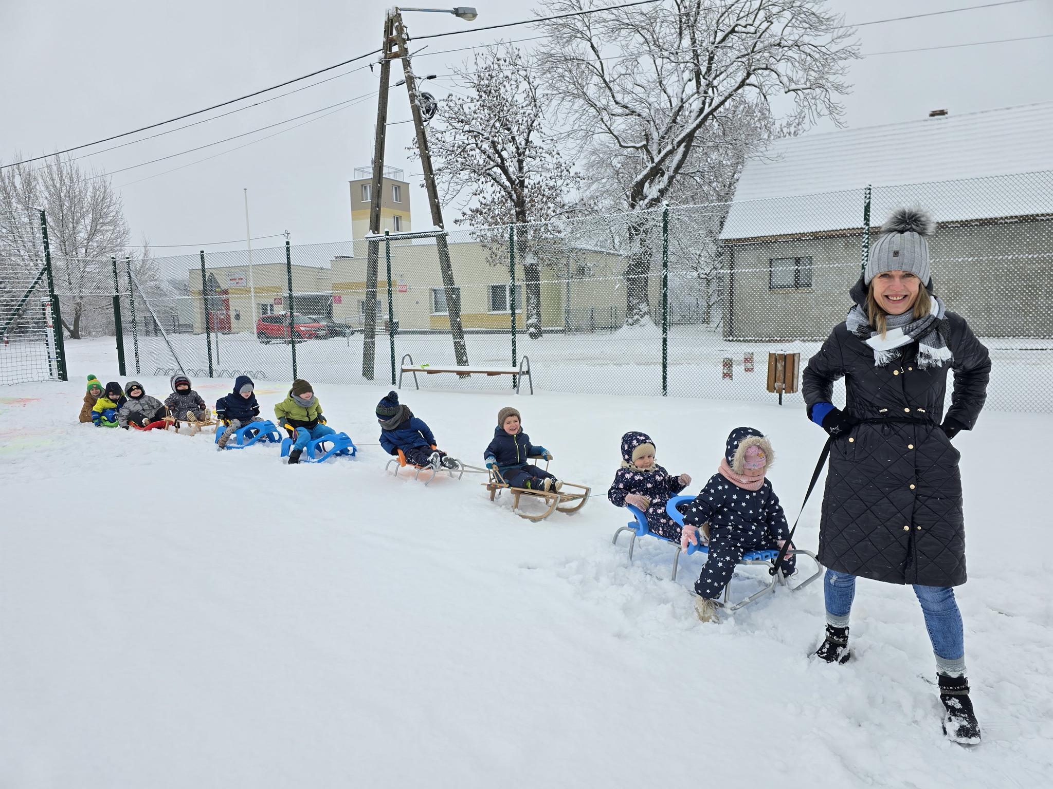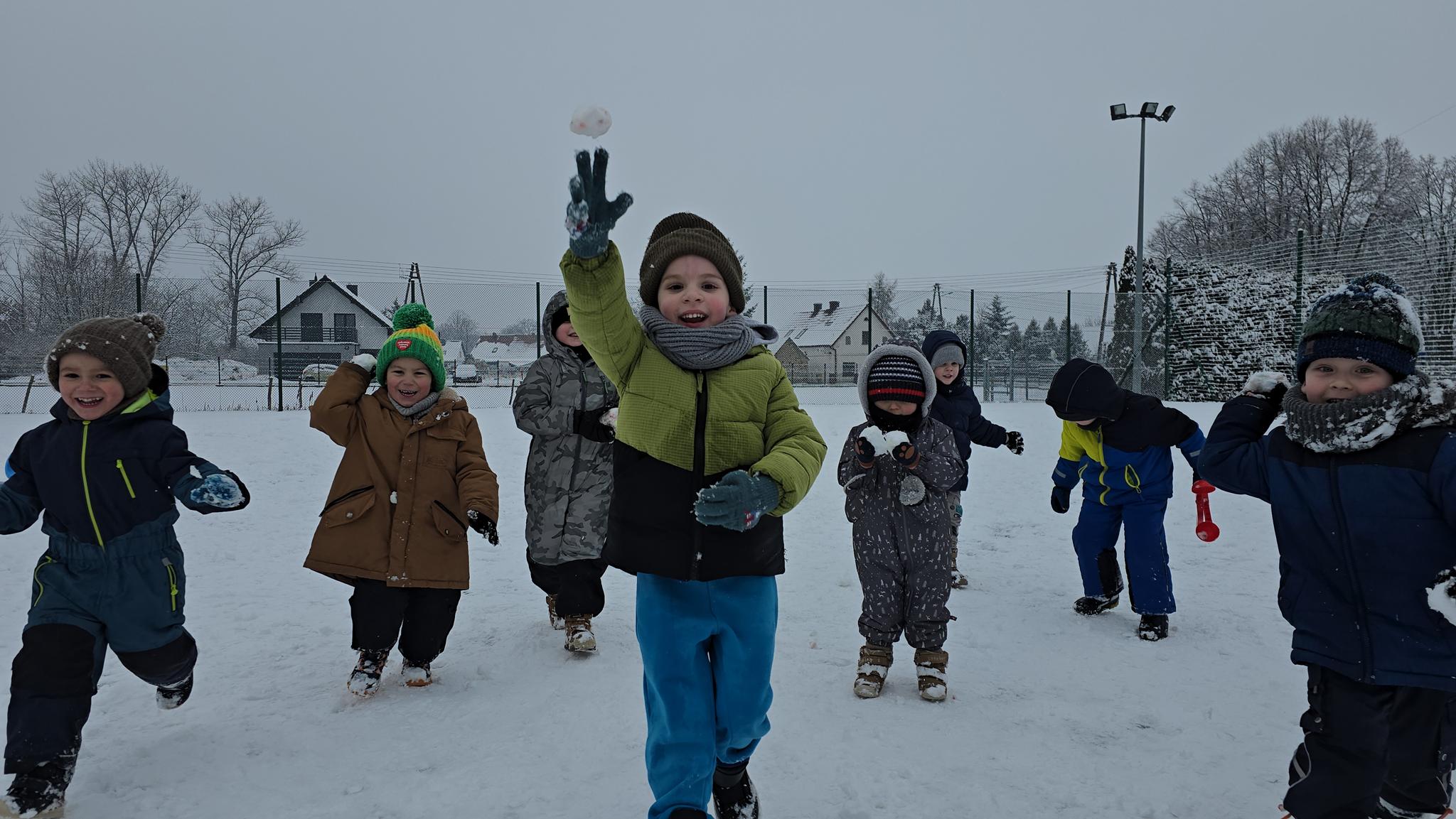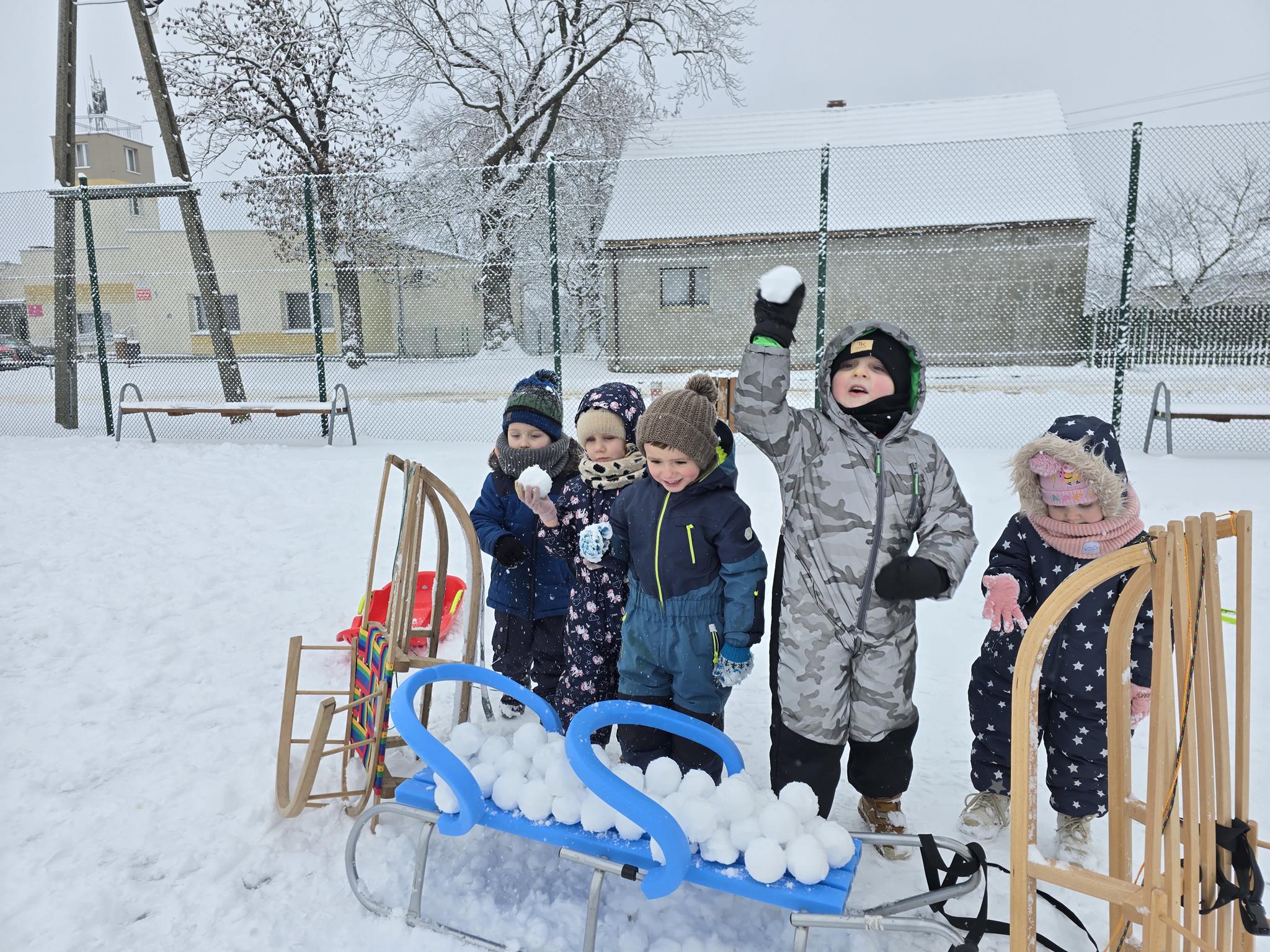 Zima w pełni, dlatego dzieci z oddziału „Krasnoludki” z radością wykorzystały śnieżną aurę do aktywnej zabawy na świeżym powietrzu. Białe otoczenie stało się dla naszych przedszkolaków prawdziwą zimową pracownią pełną radości, ruchu i odkrywania.