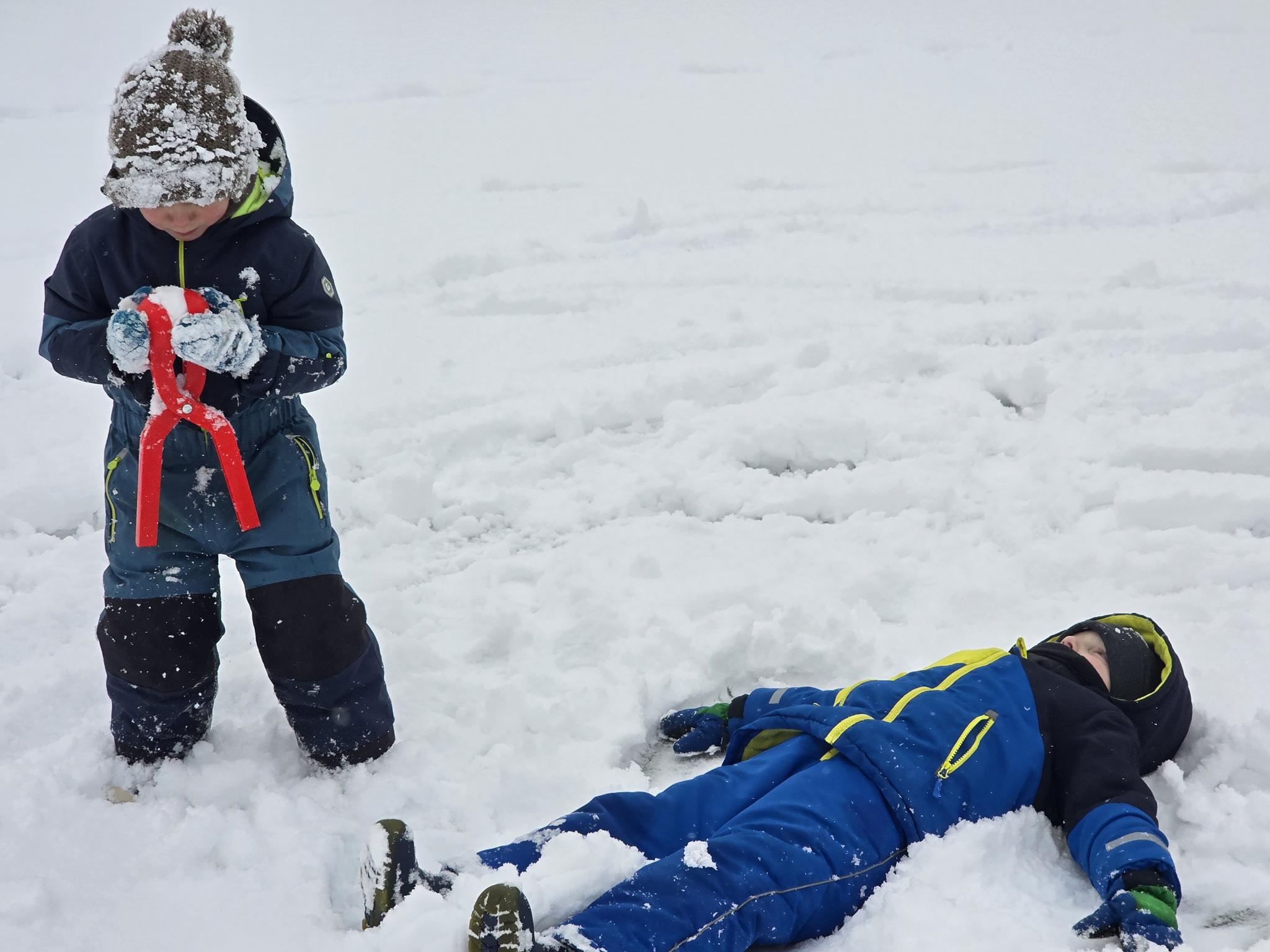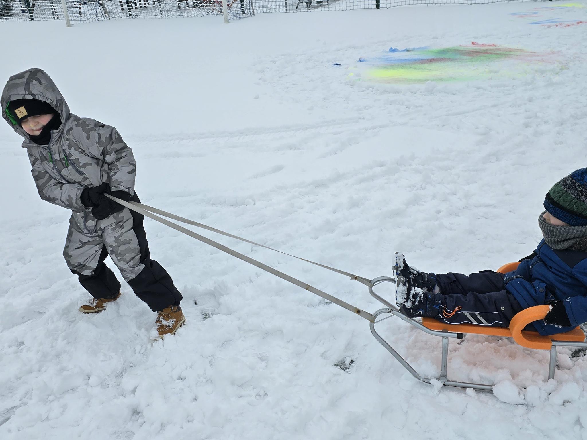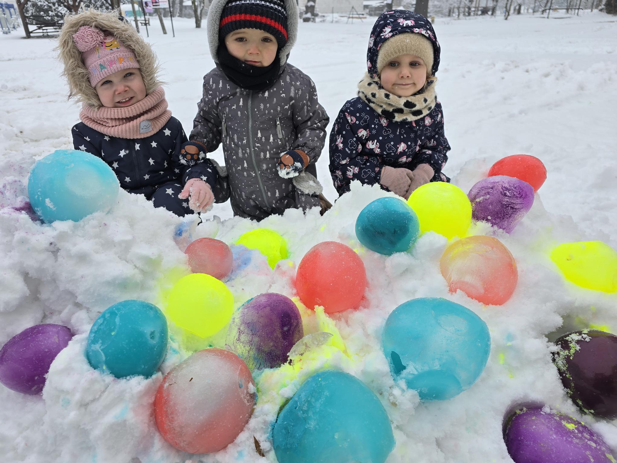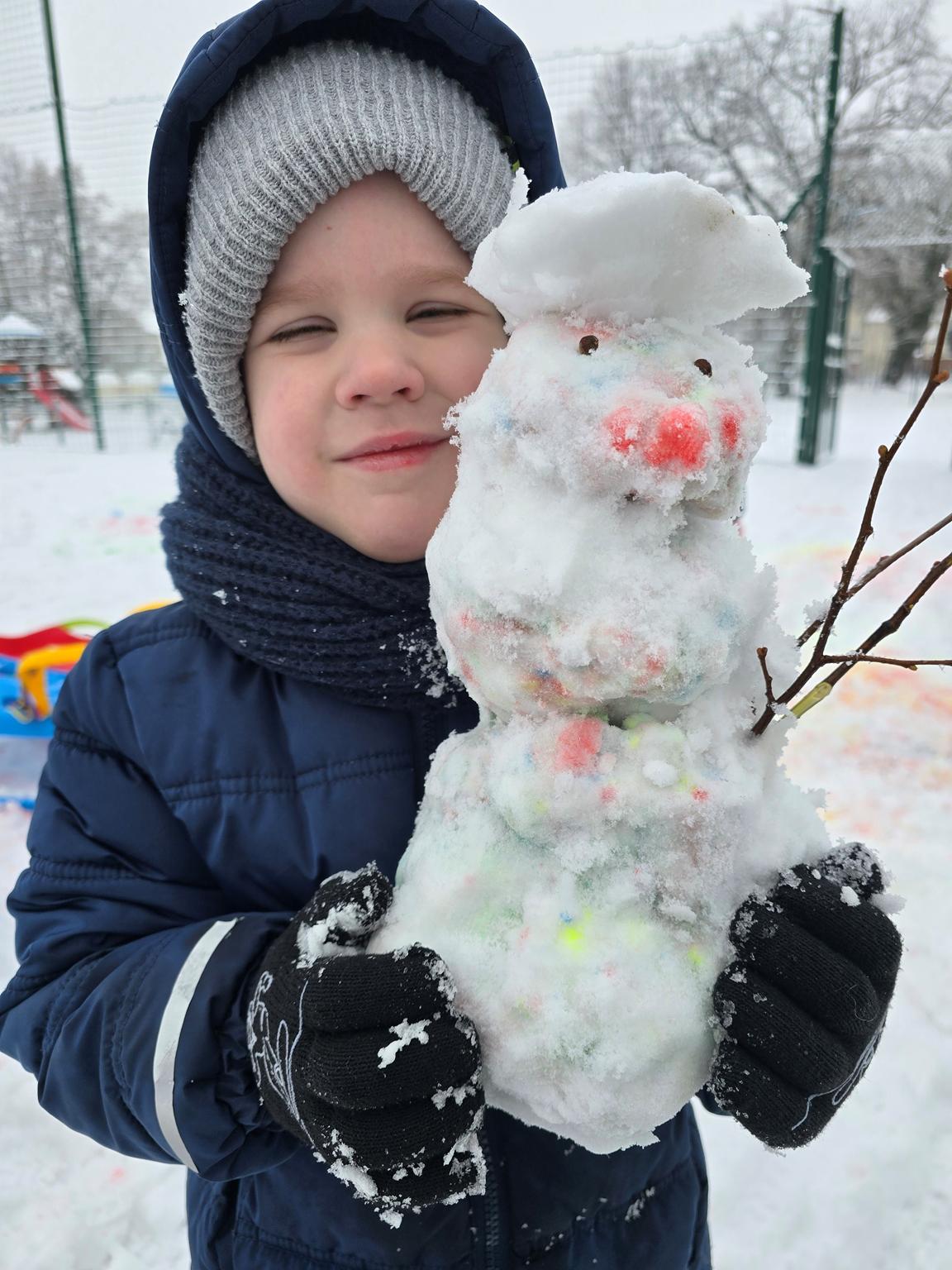 Podczas wspólnych zabaw dzieci lepiły śnieżne kule, tworzyły małe konstrukcje oraz zostawiały na śniegu swoje ślady. Najwięcej emocji wzbudziło malowanie śniegu kolorową wodą – przedszkolaki z ogromnym zaangażowaniem tworzyły barwne wzory i zimowe obrazy. Celem głównym było rozwijanie aktywności ruchowej oraz ciekawości poznawczej dzieci poprzez bezpośrednie doświadczanie zjawisk przyrodniczych i twórcze zabawy w naturalnym środowisku zimowym.