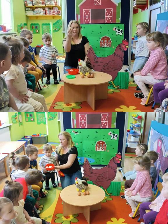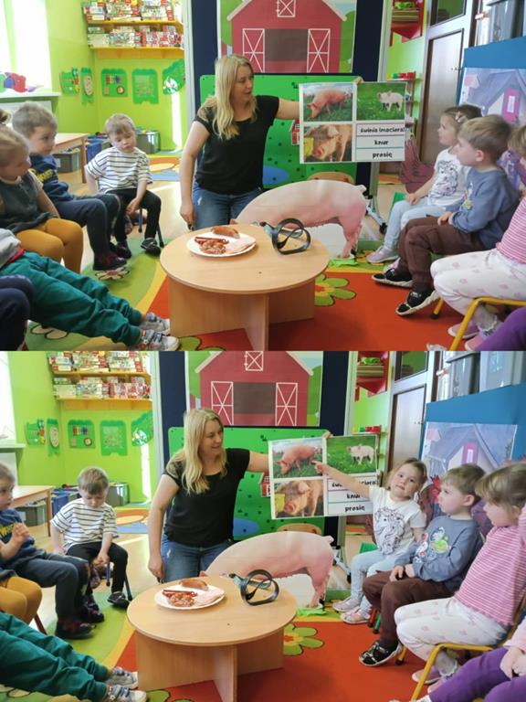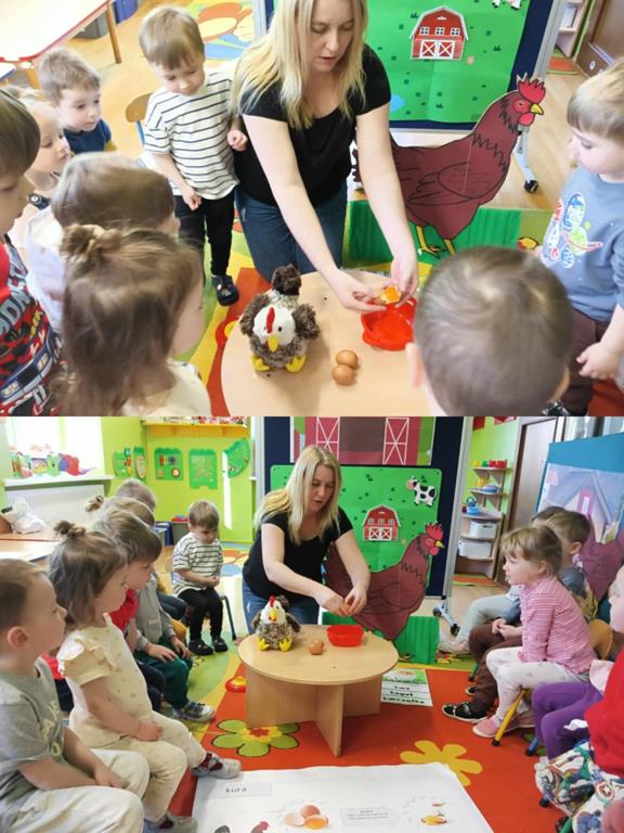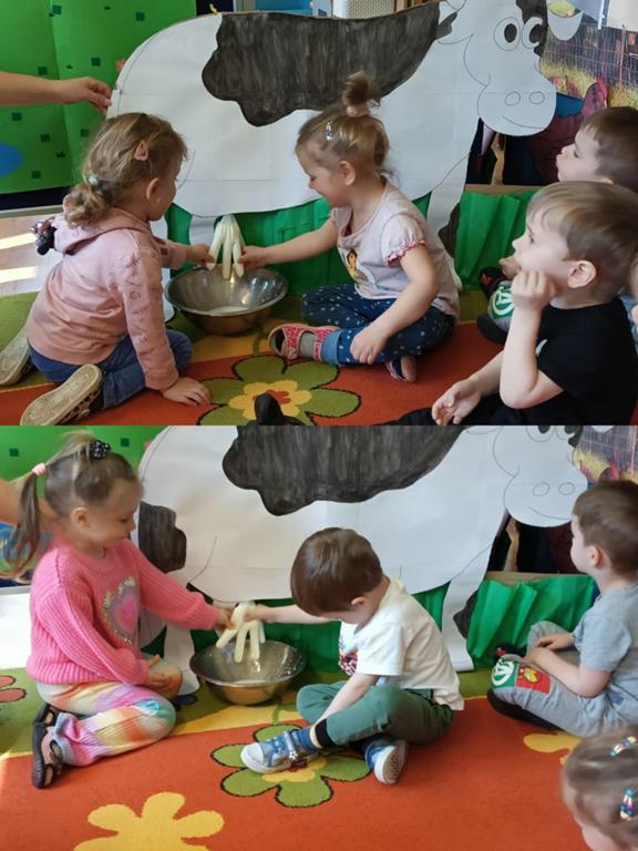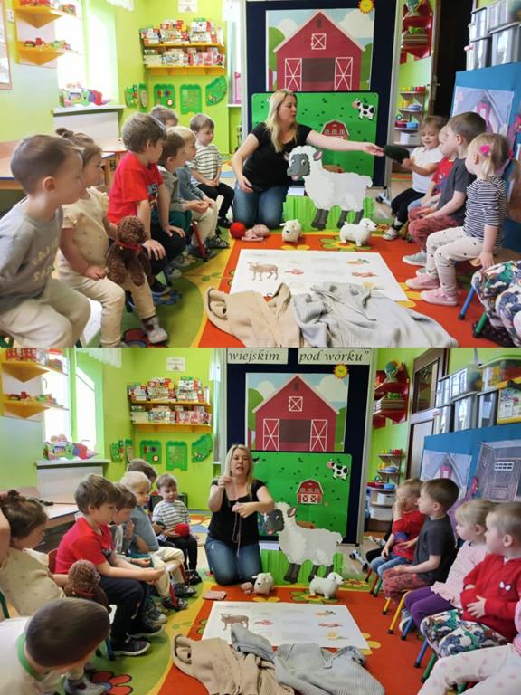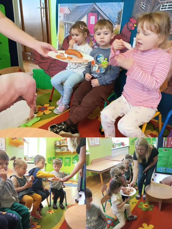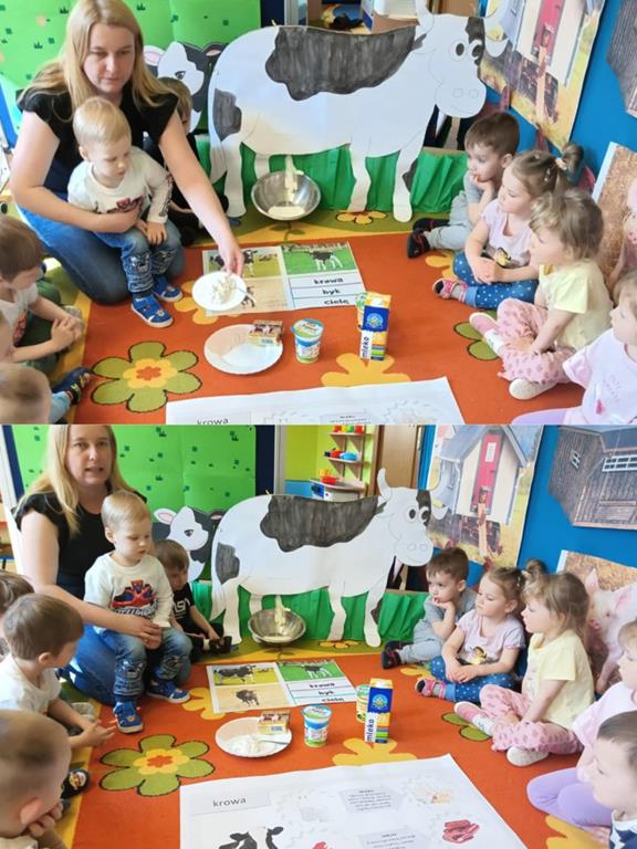 Przedszkolaki z grupy „Żuczki” przeniosły się na wiejskie podwórko, aby poznać bliżej jego mieszkańców i codzienne życie na wsi. Dzieci z zainteresowaniem uczyły się rozpoznawać zwierzęta gospodarskie tj. krowy, kury, świnie i owce. Podczas zajęć dowiedziały się, co dają nam zwierzęta, gdzie mieszkają i jak nazywa się ich rodzina. Miały okazję wydoić krówkę, obierać jajka oraz konsumować produkty tj. twarożek, wędlinkę, jajka. Zajęcia były doskonałą okazją do wzbogacania słownictwa, rozwijania wyobraźni oraz poznawania świata przyrody. Radości i śmiechu było co niemiara.